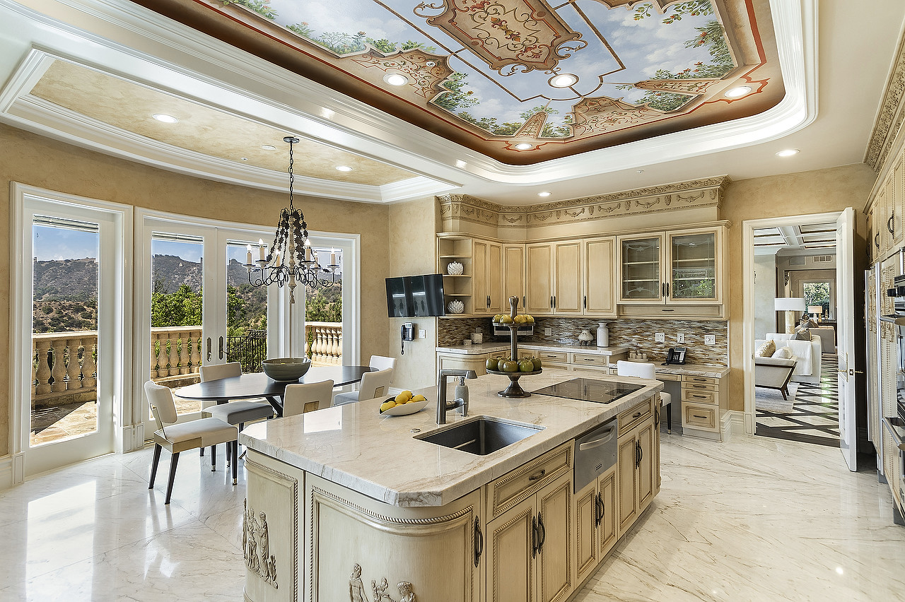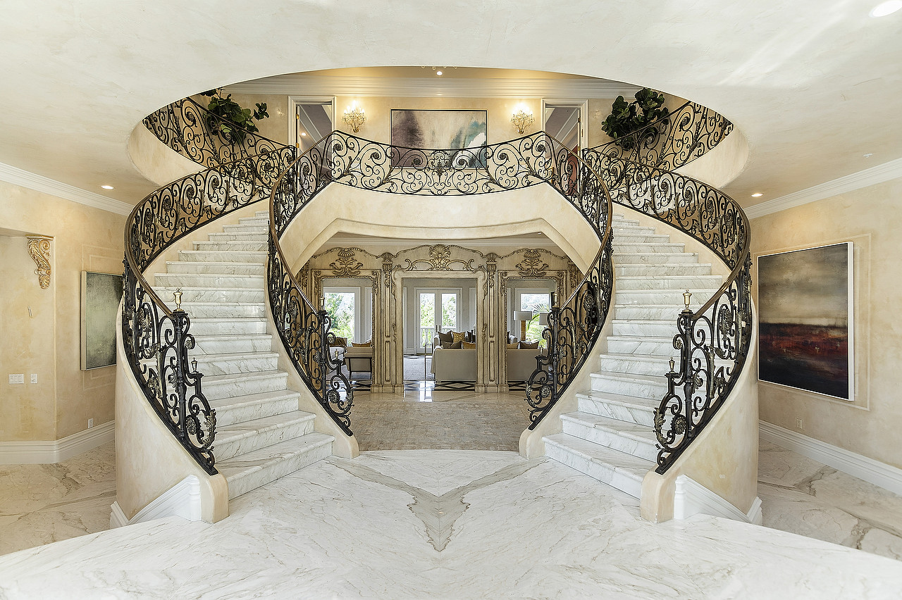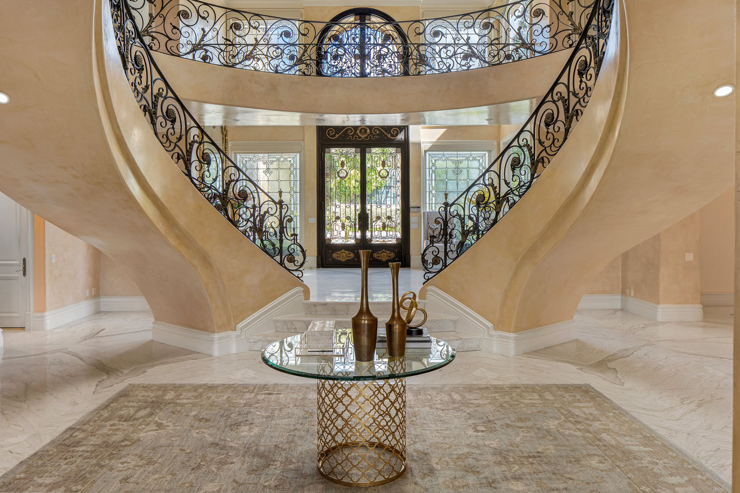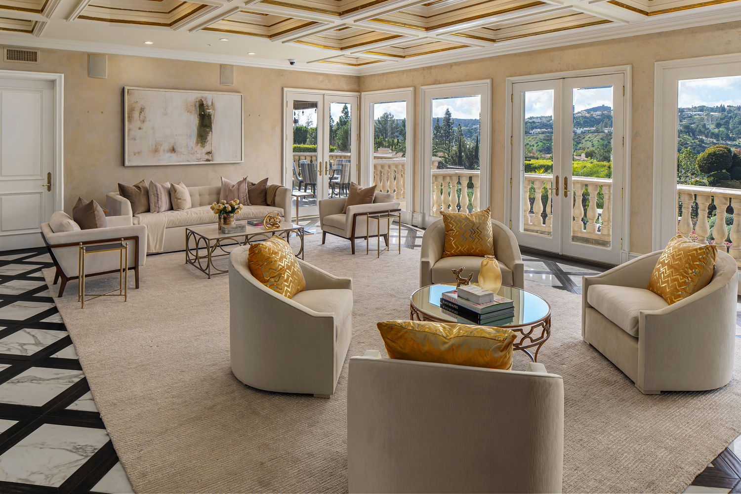Extraordinary 10,000+ sq. ft. Italian Villa with tennis court and beautiful canyon/city views is situated on a 26,000+ sq. ft. lot at the end of a private cul-de-sac in the prestigious guard-gated community of Bel Air Crest. Completely renovated, this estate exudes style & sophistication with gorgeous ornate detailing & walls of French doors that open to stunning terraces & overlook lush vistas. A 2-story beveled glass & iron wrought front door leads to the impressive formal foyer with dual sweeping staircases, marble floors, & hand-painted ceiling with domed skylight. Stunning living room with intricate Venetian plaster & coffered ceilings, formal dining room, & chef’s kitchen with oversized center island & gourmet appliances. Upstairs is a luxurious master suite with dual oversized baths & walk-in closets, sitting room/gym, sauna, & an additional 3 bedroom suites. Expansive lower-level entertaining space with games room & bar, abundant patio space, and private lagoon-style pool/spa.
