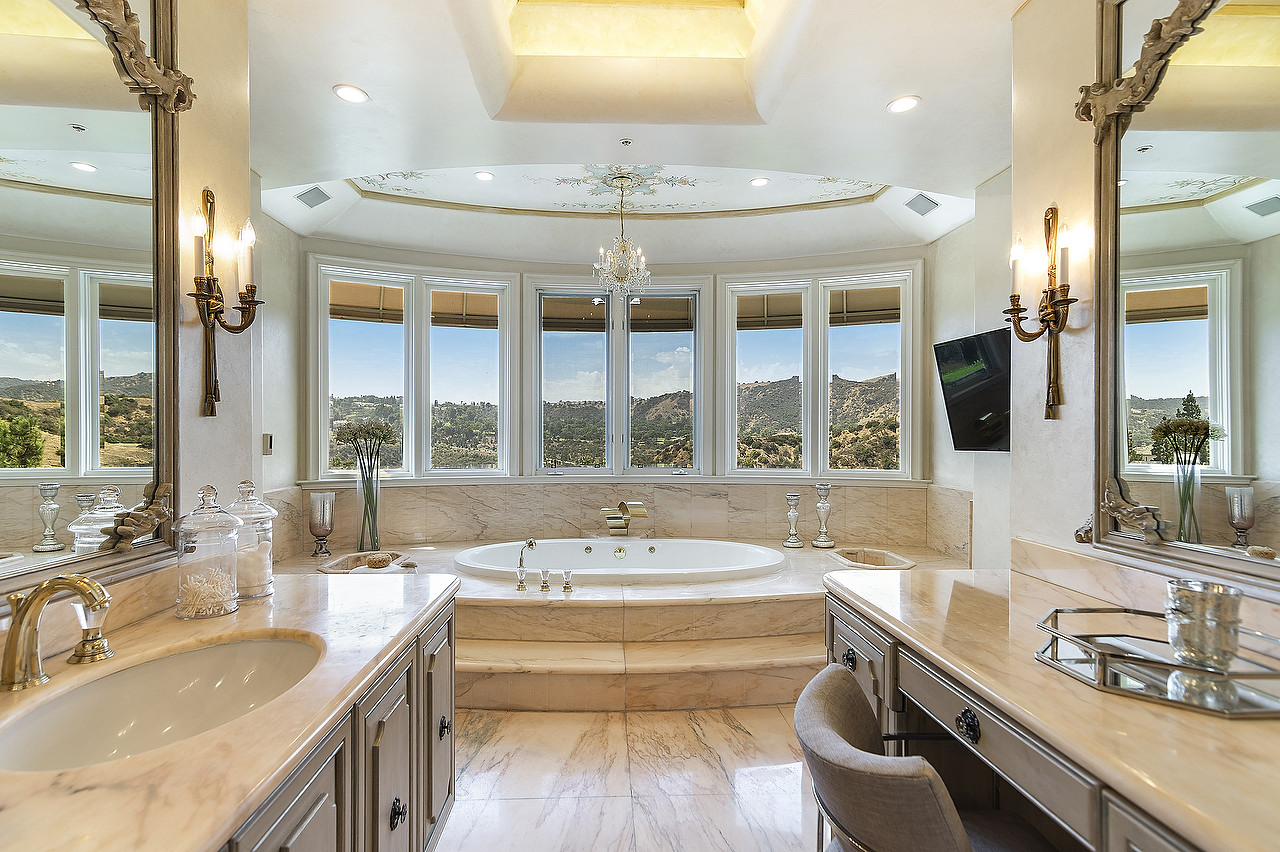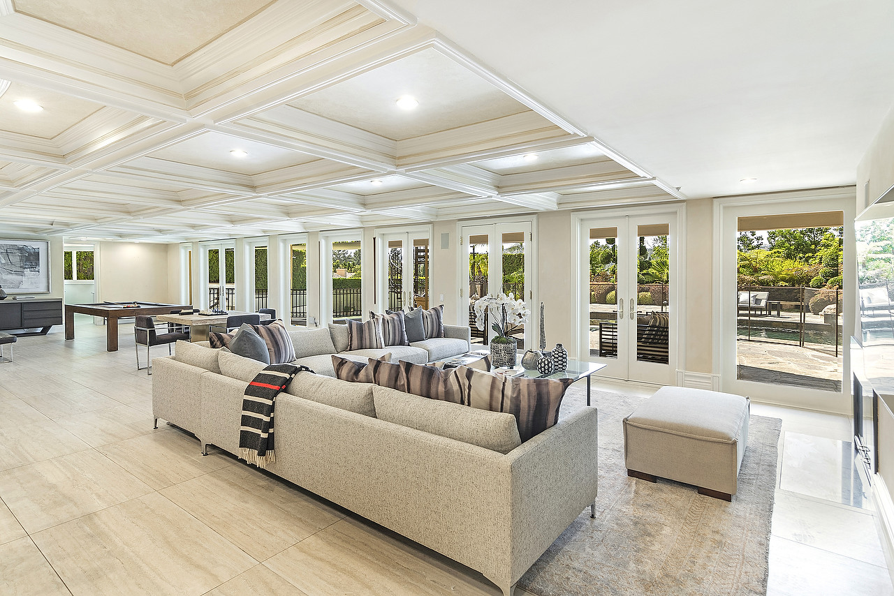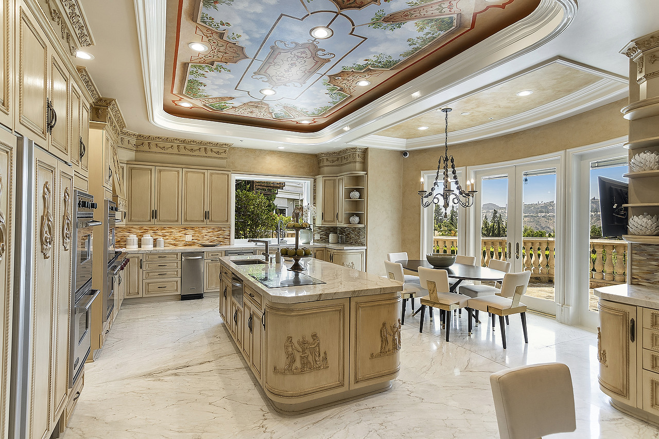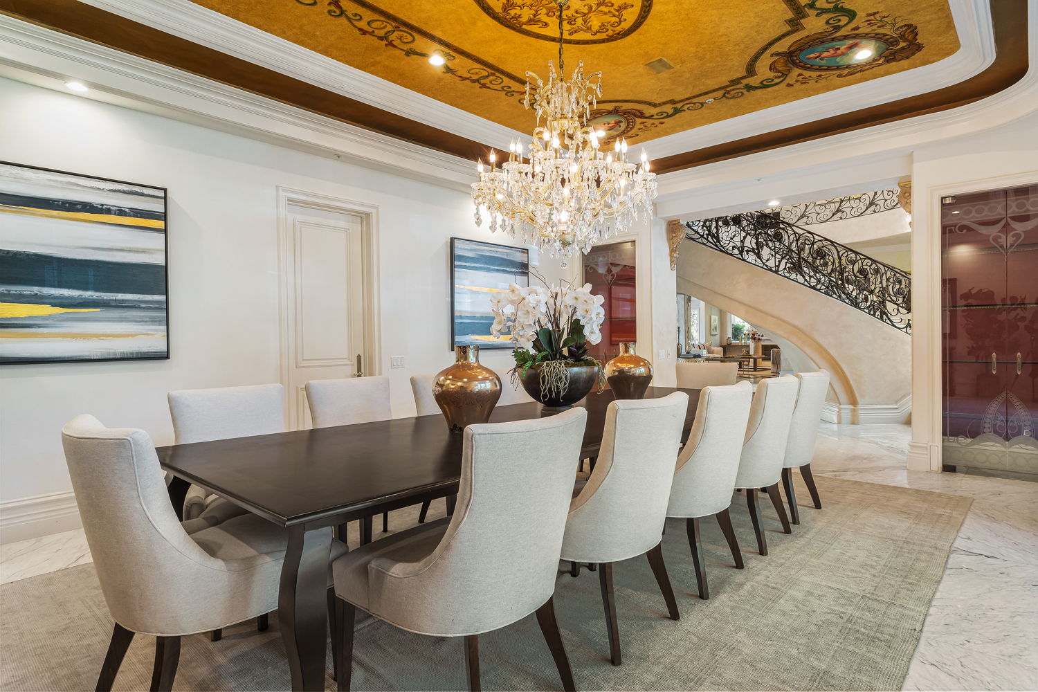 Extraordinary 10,000+ sq. ft. Italian Villa with tennis court and beautiful canyon/city views is situated on a 26,000+ sq. ft. lot at the end of a private cul-de-sac in the prestigious guard-gated community of Bel Air Crest. Completely renovated, this estate exudes style & sophistication with gorgeous ornate detailing & walls of French doors that open to stunning terraces & overlook lush vistas. A 2-story beveled glass & iron wrought front door leads to the impressive formal foyer with dual sweeping staircases, marble floors, & hand-painted ceiling with domed skylight. Stunning living room with intricate Venetian plaster & coffered ceilings, formal dining room, & chef’s kitchen with oversized center island & gourmet appliances. Upstairs is a luxurious master suite with dual oversized baths & walk-in closets, sitting room/gym, sauna, & an additional 3 bedroom suites. Expansive lower-level entertaining space with games room & bar, abundant patio space, and private lagoon-style pool/spa.