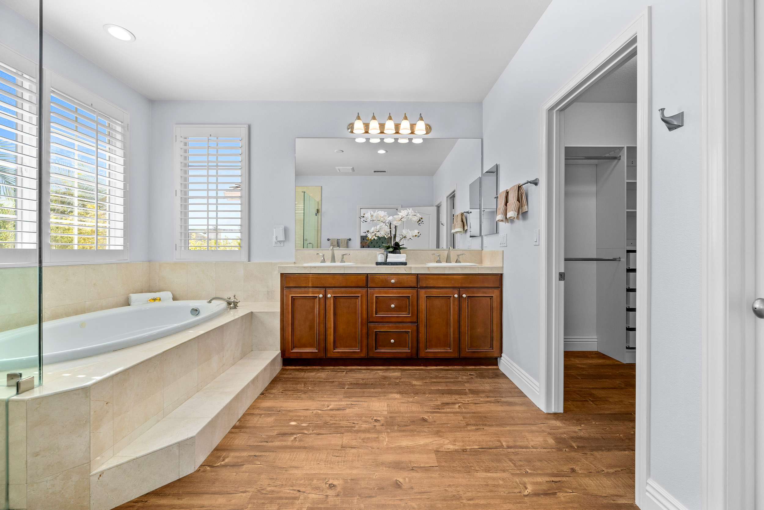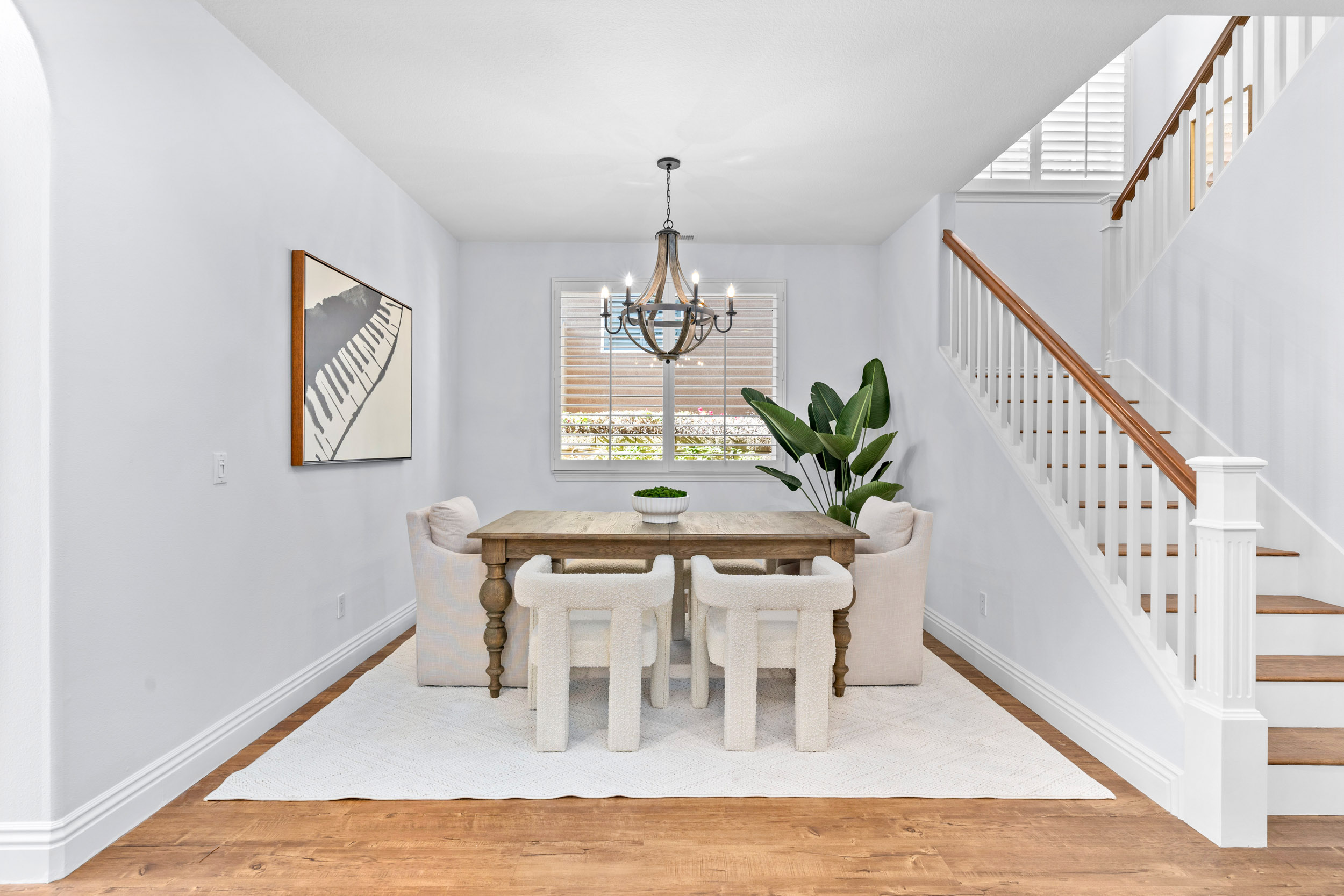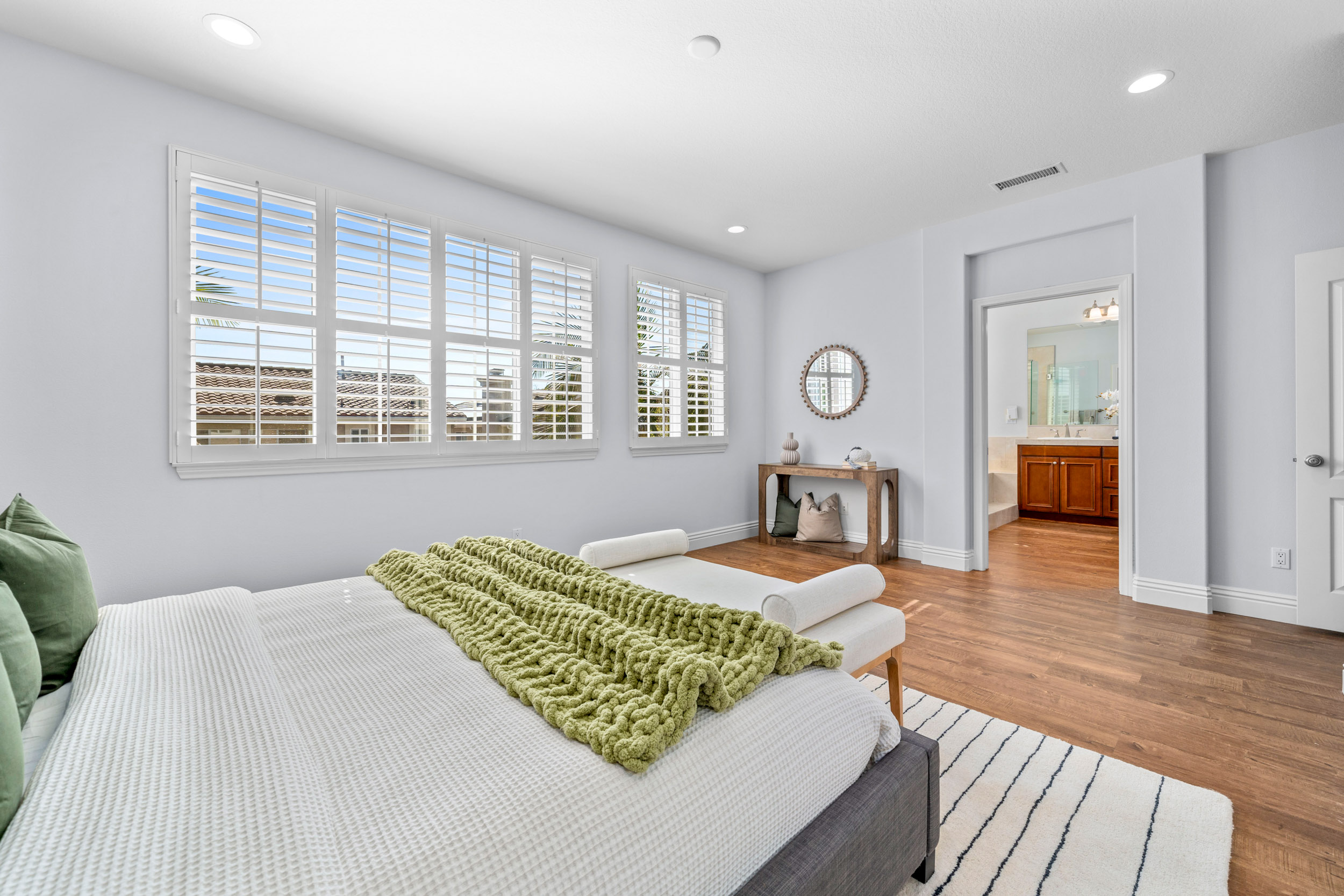 Discover this exquisite 4-bedroom, 3-bathroom residence that truly exemplifies pride of ownership. Featuring a convenient entry-level bedroom and full bath, this home impresses with its soaring two-story ceilings and an inviting open-concept living area. The gourmet kitchen is a chef’s dream, showcasing stunning quartz countertops, generous cabinet space, and a spacious walk-in pantry—ideal for both cooking and entertaining. Retreat to the expansive primary suite upstairs, complete with a luxurious en suite bathroom featuring dual sinks, a relaxing soaking tub, and a walk-in shower. This home is further enhanced by elegant hardwood flooring, plantation shutters, solar panels with battery backup, a comprehensive whole-house water filtration system, and an EV charger hookup. Step outside to the low-maintenance backyard, designed for relaxation, with two charming patio areas. Nestled in a premier gated community, residents enjoy resort-style amenities, including sparkling pools, a playground, and a basketball court. The location is unbeatable, with pristine beaches, exceptional shopping, award-winning golf courses, and top-rated schools all just minutes away. The San Joaquin Hills community offers an enviable lifestyle, featuring additional amenities such as a spa and a gated playground. Don’t miss this incredible opportunity to own a remarkable home in the exclusive San Joaquin Hills community—where luxury living meets convenience!