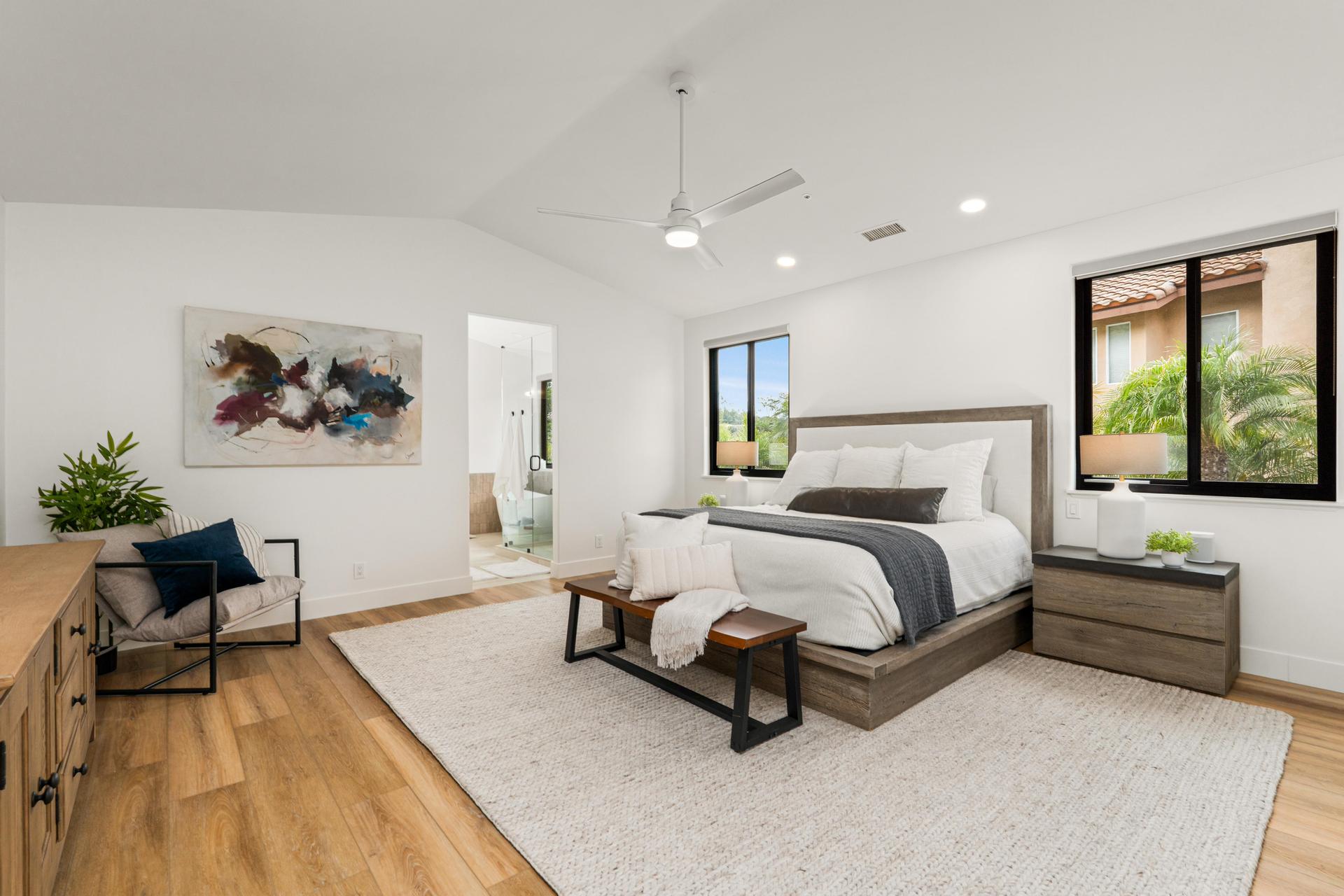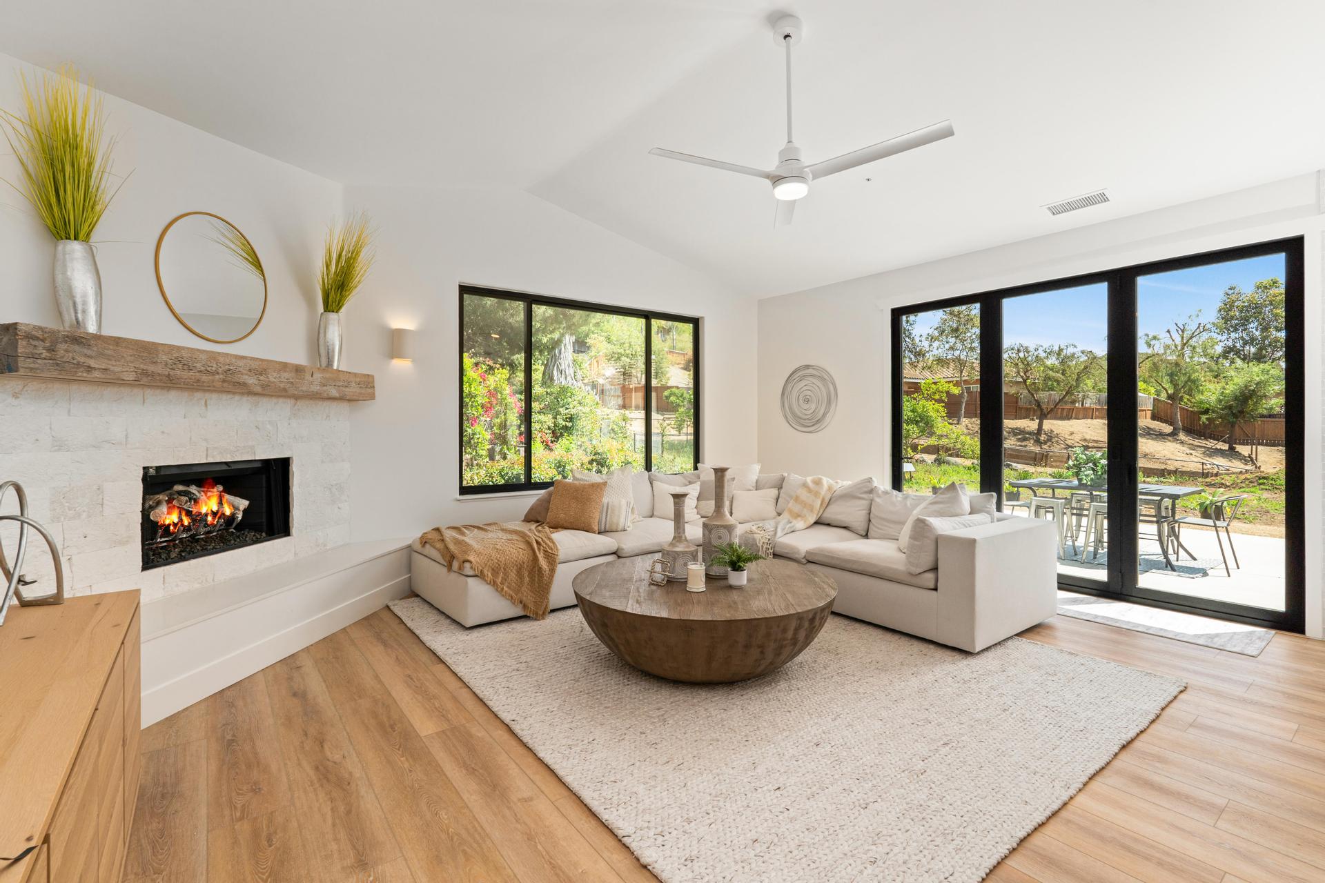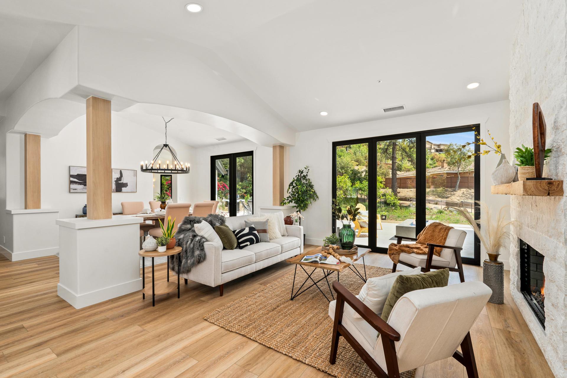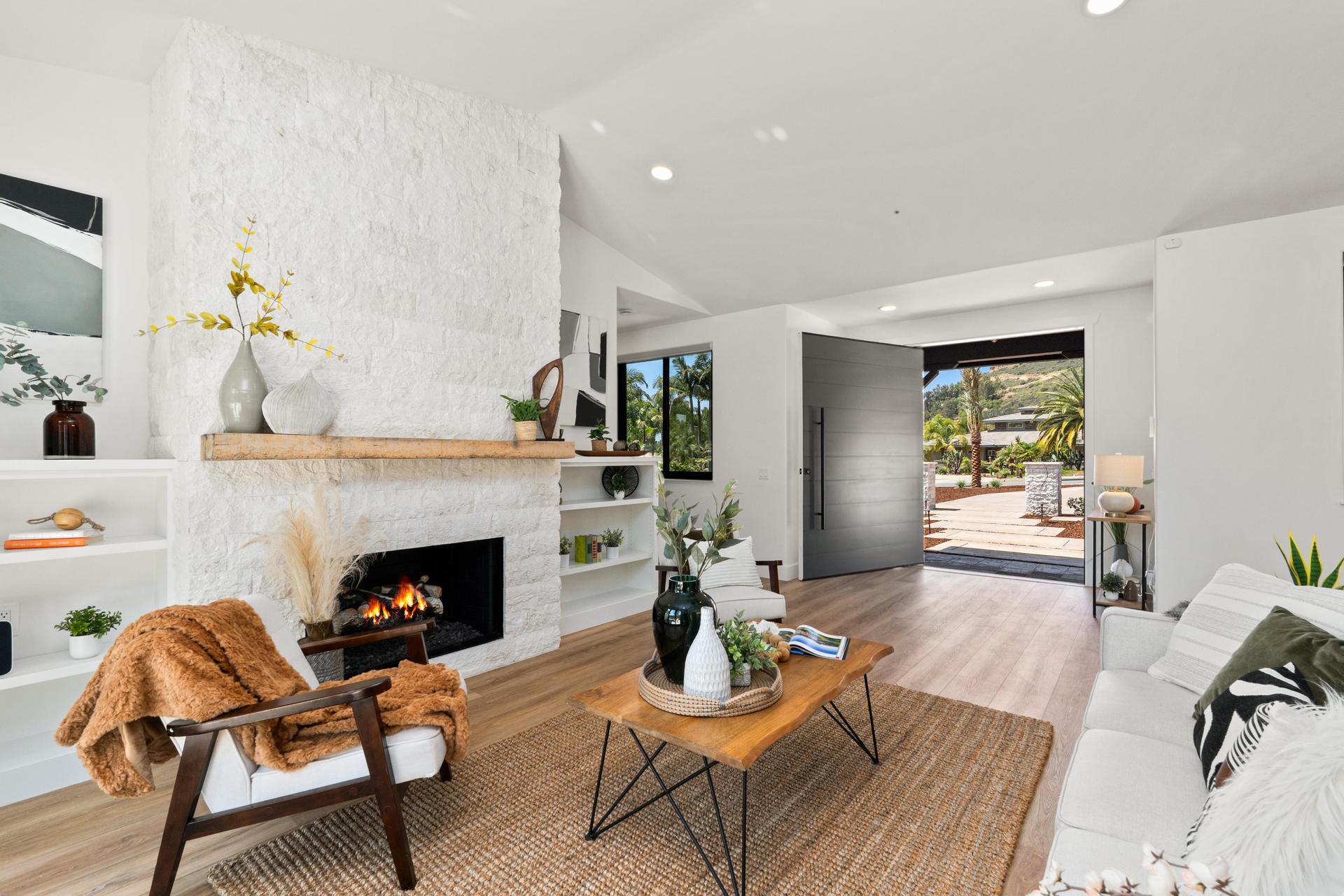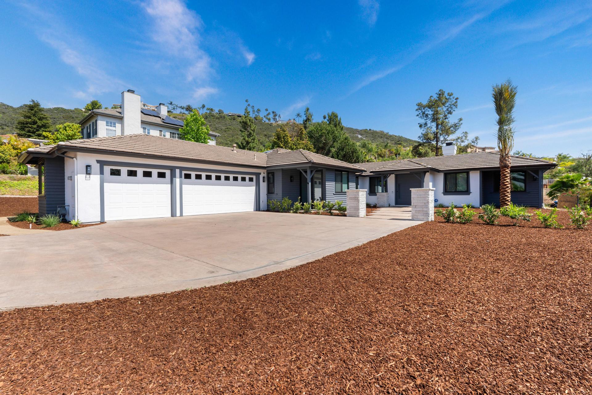 Welcome to 2511 San Clemente – a show-stopping, extensively remodeled ranch-style estate nestled in the desirable foothills of Vista. Set on a sprawling half-acre lot, this designer home seamlessly blends sophisticated finishes with modern functionality. The gourmet kitchen features all-new shaker cabinetry with soft-close hardware, stunning Serena & Lily pendant lighting, top-of-the-line KitchenAid appliances—including a 48” built-in refrigerator, double ovens, 6-burner gas stove, and wine fridge—plus a custom white oak island with quartz countertops and seating for six. Additional highlights include a 36” farmhouse sink, LED under-cabinet lighting, dimmable ceiling lights, and a stylish tile backsplash that ties it all together. The living and family rooms are equally impressive, anchored by brand new stone fireplaces with 80-year-old reclaimed wood mantels, refinished built-ins, updated lighting, and cozy touches that make the home feel warm and welcoming. Retreat to the primary suite, complete with a spa-like bathroom featuring a large soaking tub, glass-enclosed walk-in shower with custom tile, new vanities with quartz counters, dual sinks, designer mirrors, lighting, and more. All additional bathrooms have been fully remodeled with custom finishes, tile work, and high-end fixtures throughout. No expenses were spared for this fully customized home. This is a rare opportunity to own a turnkey estate in one of North County’s most coveted neighborhoods—where refined style meets California ranch living.