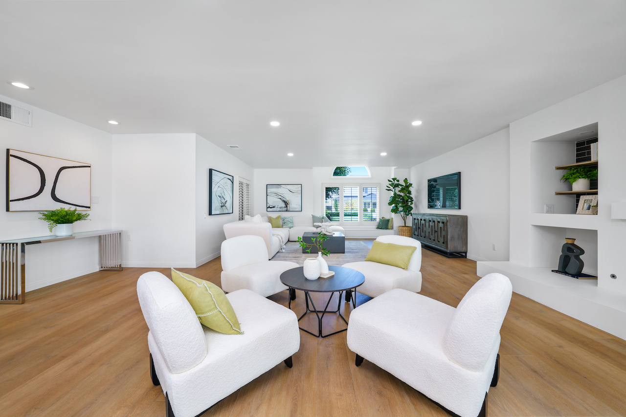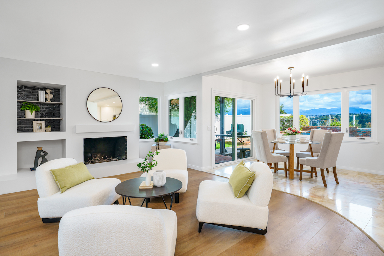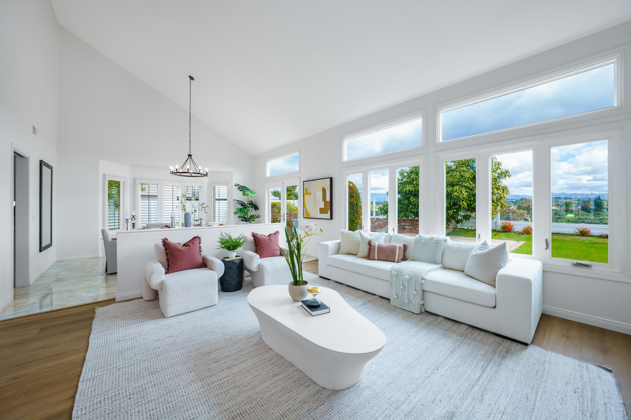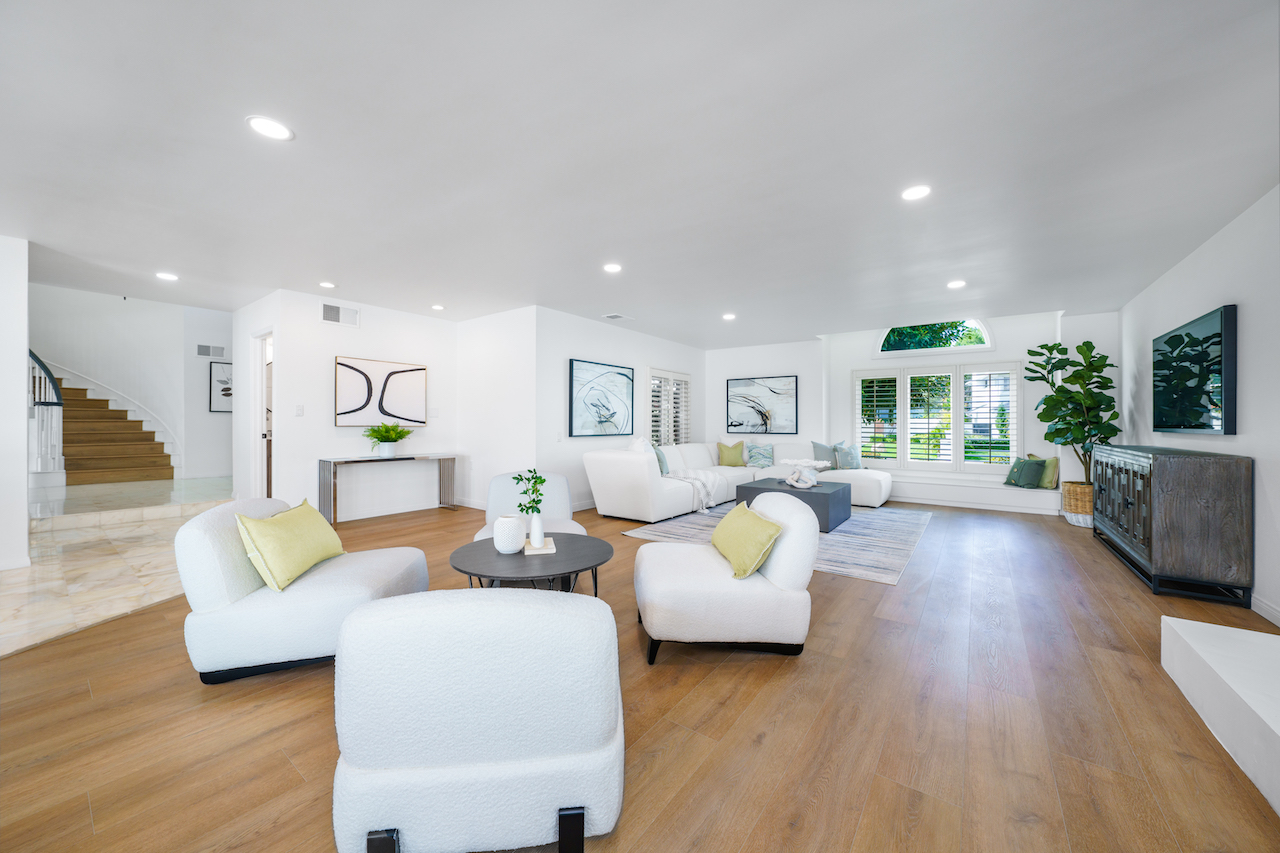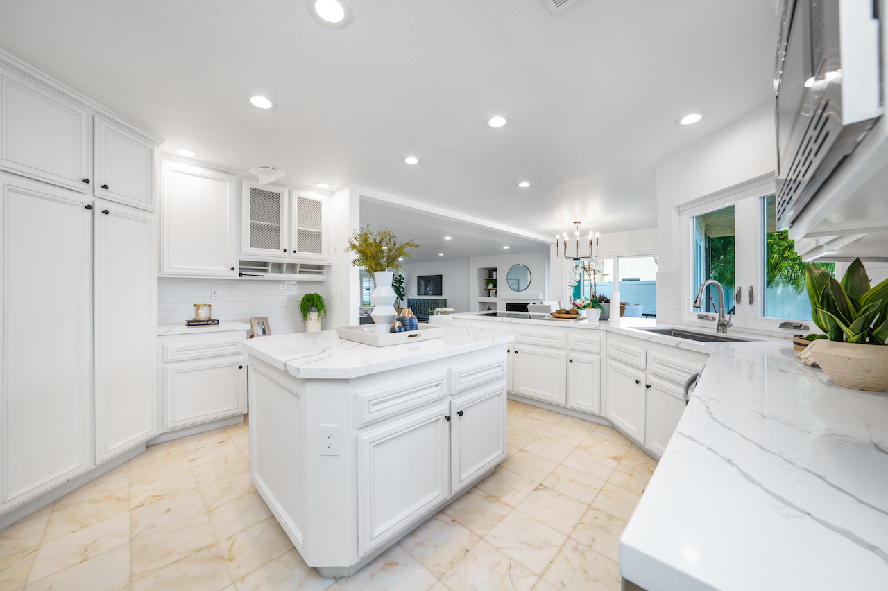Immerse yourself in luxury at this exquisite residence in the esteemed Nellie Gail Ranch community of Laguna Hills. Meticulously updated, this home seamlessly blends elegance with contemporary comforts. Upon entry through a marble-tiled foyer, revel in the light-filled, open floor plan adorned with low-E, double-paned, tempered glass windows and doors. The state-of-the-art chef's kitchen boasts sleek quartz countertops, a central island, modern white cabinets with chic hardware, and brand-new stainless steel appliances. Flowing effortlessly into the dining and family room areas, the kitchen creates a welcoming living space anchored by a newly revamped fireplace. The ground level encompasses expansive living and dining rooms with soaring two-story ceilings, a convenient downstairs bedroom with an en-suite bathroom, and a dedicated home office. Upstairs, the sunlit primary suite features a spacious walk-in closet and a fully renovated bathroom with brushed marble floors, a custom frameless glass shower, a standalone soaking tub, and new vanities with Carrara marble countertops. Additional living areas include a generous bonus room, a junior suite with a private bathroom, and two bedrooms sharing a full bathroom. Outdoor entertainment is a delight with a newly replastered pool and spa, lush greenery, concrete decking, in-ground irrigation, and captivating views. Thoughtfully updated for comfort and tranquility, this home boasts a new roof, copper piping, elegant lighting fixtures, luxury vinyl flooring, recessed lights, custom cabinetry, smart home features, and fresh paint throughout. Experience the epitome of luxury living in a peaceful setting.