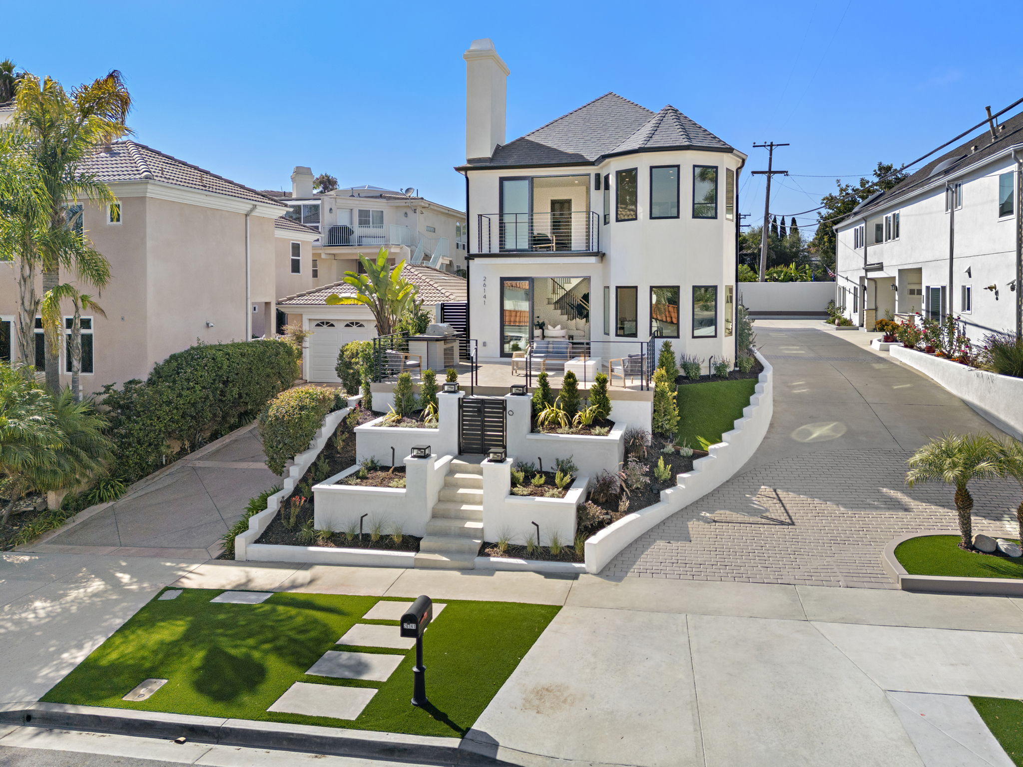 A uniquely reimagined residence, 26141 Via California offers the flexibility of a multi-generational home or duplex, delivering a variety of luxury coastal living options in the heart of Capistrano Beach. Completed in 2025, this fully remodeled property blends modern design, coastal charm, and versatile functionality—perfect for an owner-user, extended family, or a smart investment opportunity. Unit A – 3 Bedrooms | 3 Bathrooms:The primary residence welcomes you with an open living area anchored by a cozy fireplace and framed by ocean views. The chef’s kitchen features quartz countertops, stainless steel appliances, a pot filler, abundant cabinetry, and a walk-in pantry with wine cooler. A full bath and laundry room with sink complete the main level. Upstairs, the primary suite is a private retreat with a balcony capturing coastal breezes, plus a spa-like bath with soaking tub, frameless glass shower, and dual vanity. Two additional bedrooms with mirrored closets share a full bath, providing flexible space for family, guests, or a home office. Unit B – 2 Bedrooms | 2.5 Bathrooms: Thoughtfully designed, the second unit offers a bright, open living and dining space, a powder bath, and a kitchen finished with quartz counters and stainless appliances. Sliding doors open to a private patio with direct access to the detached two-car garage. Upstairs, the primary suite includes a walk-in closet, balcony office nook, and spa-inspired bath with soaking tub and separate shower. A second ensuite bedroom is perfect for guests or a roommate setup, while a stackable washer/dryer in the hall adds everyday convenience. Just minutes from Dana Point Harbor, pristine beaches, coastal trails, restaurants, and boutique shopping, this modern duplex combines a prime location with stylish upgrades and flexible living. 26141 Via California is a rare opportunity to own a fully reimagined property in one of Southern California’s most desirable coastal neighborhoods.