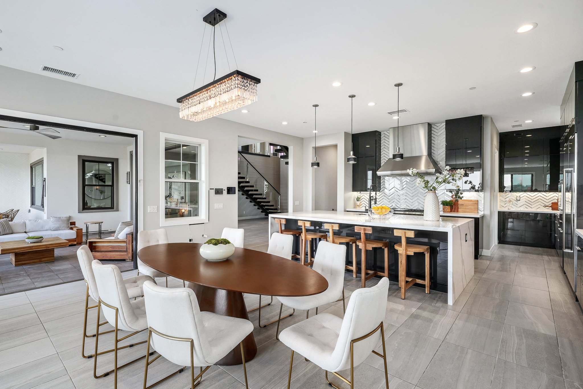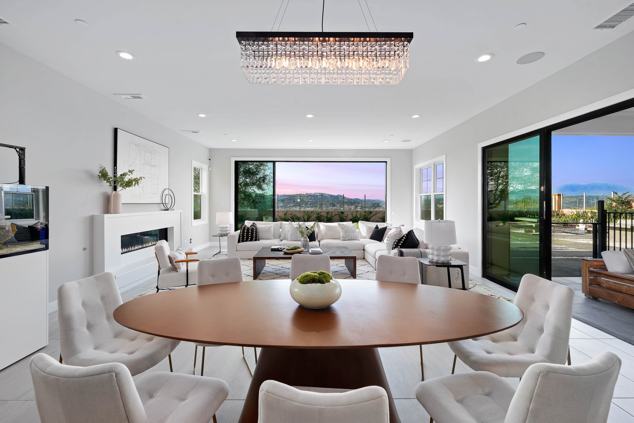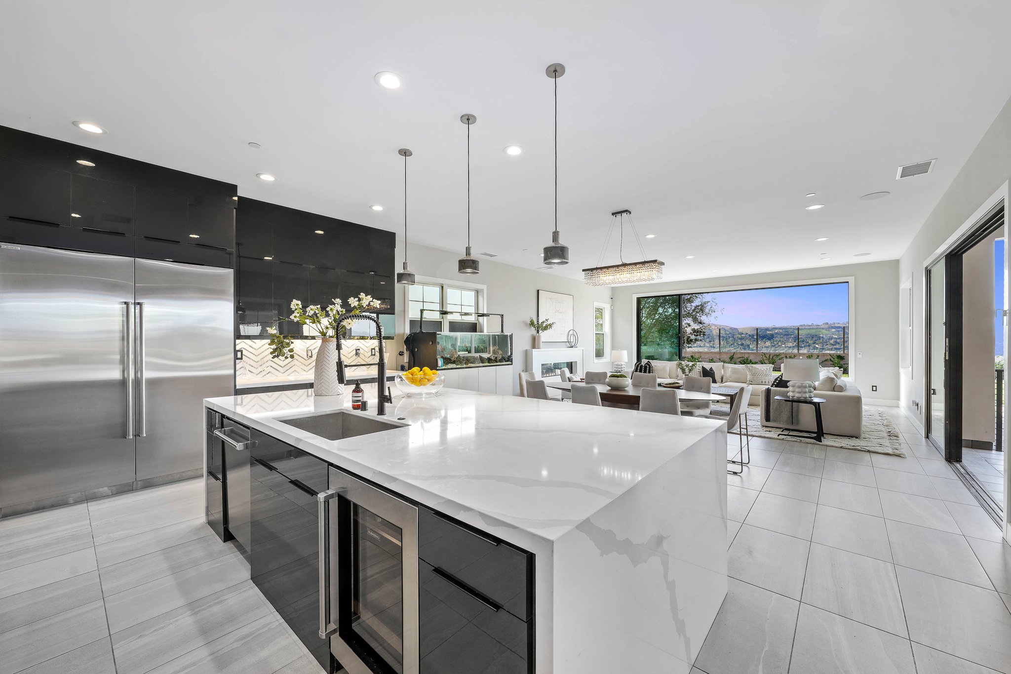 Situated in Tradewins, one of San Juan Capistrano's most prestigious covenant neighborhoods, this newly constructed masterpiece offers the pinnacle of contemporary luxury living. With 5 bedrooms, 5.5 bathrooms, and spanning approximately 5,873 square feet on a spacious 0.31-acre lot, this home is one of only 23 residences in this exclusive gated community. Upon entering, you are immediately captivated by the immense views that surround the property, providing a serene backdrop to everyday life. The open-concept floor plan seamlessly blends indoor and outdoor living, with expansive windows that flood the home with natural light. The gourmet kitchen is a chef's delight, featuring Wolf and Sub-Zero appliances, sleek custom cabinetry, and a large center island, perfect for entertaining. The luxurious primary suite is a private retreat, boasting a spa-like bathroom and a spacious walk-in closet. Additional features include a 2-car garage, high ceilings, a gaming room, and a theater, providing ample space for entertainment and relaxation. The home is also equipped with solar panels, ensuring energy efficiency and cost savings. Outside, the expansive backyard is an entertainer's paradise, with a full outdoor barbeque area, pristine landscaping, and plenty of space for outdoor dining and relaxation. With its contemporary design and luxurious amenities, this home offers a truly unparalleled living experience. Located just minutes from world-class dining, shopping, and entertainment, this is a rare opportunity to own a piece of paradise in one of San Juan Capistrano's most exclusive neighborhoods. Don't miss out on the chance to make this extraordinary home your own!