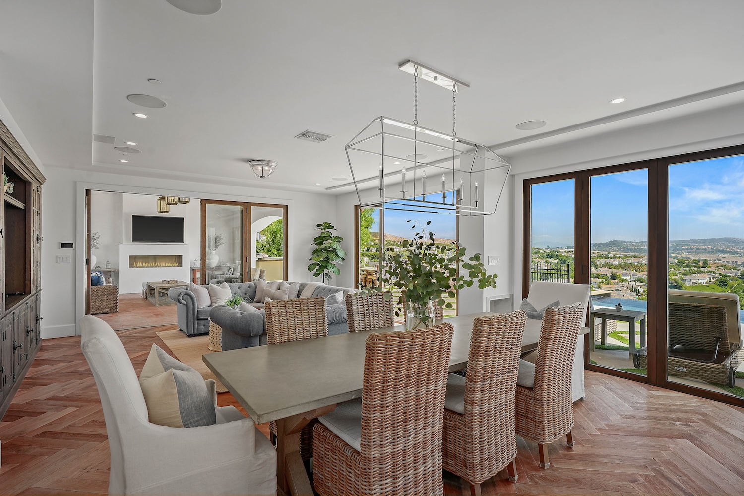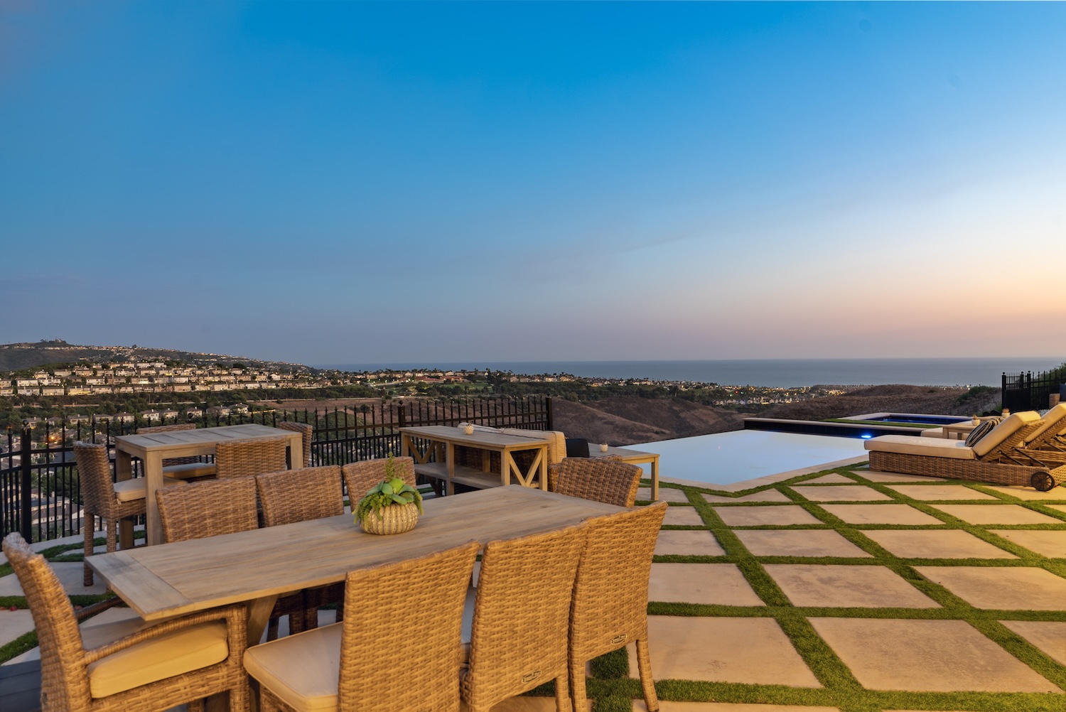 Experience unparalleled luxury with this stunning coastal retreat with jetliner mountain and ocean views in the heart of San Clemente. This custom-built masterpiece features four bedrooms, and six bathrooms offering unparalleled elegance and sophistication. This residence seamlessly blends seaside charm with contemporary design, enhanced by cutting-edge appliances, advanced systems, and opulent finishes. Upon arrival, you’ll be greeted by an inviting entryway leading to a light-filled office space, complete with an adjoining half bath and a private entrance to the courtyard. This versatile area can easily be transformed into guest quarters, providing privacy and convenience. Step further into the home and be captivated by a custom-designed rounded staircase with rich hardwood walnut treads and intricate wrought iron details, setting the stage for refined luxury. The interior boasts custom lighting that enhances the elegant ambiance, while integrated smart home technology ensures modern convenience and sophistication. The backyard is a testament to luxury outdoor living, featuring an exquisite infinity pool and a lavish jacuzzi, all framed by panoramic ocean and canyon views. The expansive covered patio serves as an entertainer's haven, offering plush seating arrangements, a sophisticated fireplace, and a state-of-the-art TV. This exceptional space is perfect for hosting memorable gatherings or enjoying serene moments in a breathtaking setting. Homes of this extraordinary beauty and meticulous design are a rare find, making this a unique opportunity not to be missed.