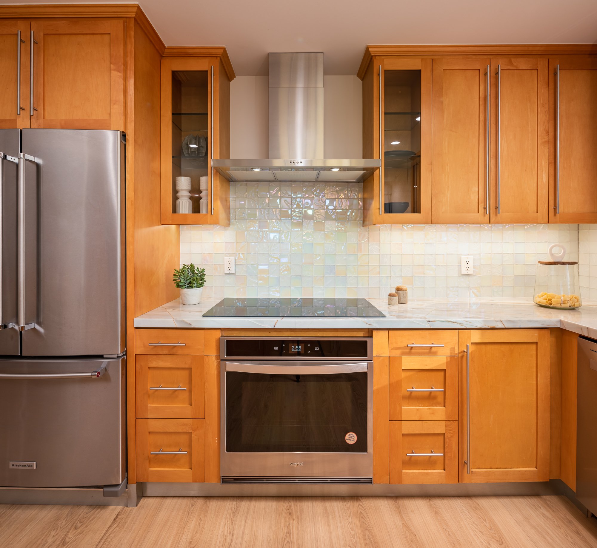 The gourmet kitchen is a culinary haven, featuring all-new, modern appliances, sleek finishes, and an elegant backsplash that evokes a sea ambiance. Meanwhile, the downstairs garage has been transformed into a versatile in-home gym or office, complete with padded flooring, a monitor to watch videos while exercising or working, and an up-to-date air filtration system that provides added comfort and convenience.