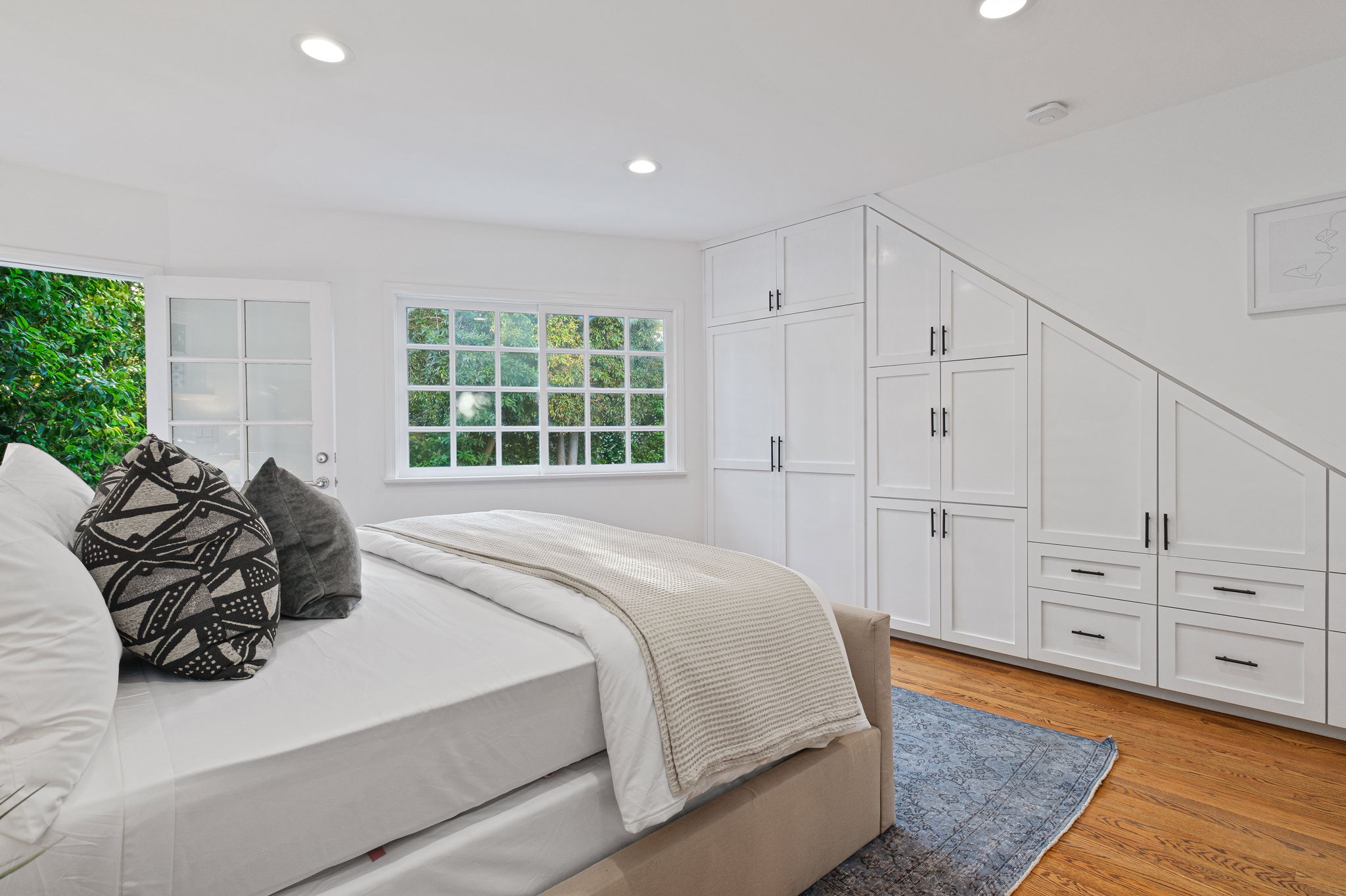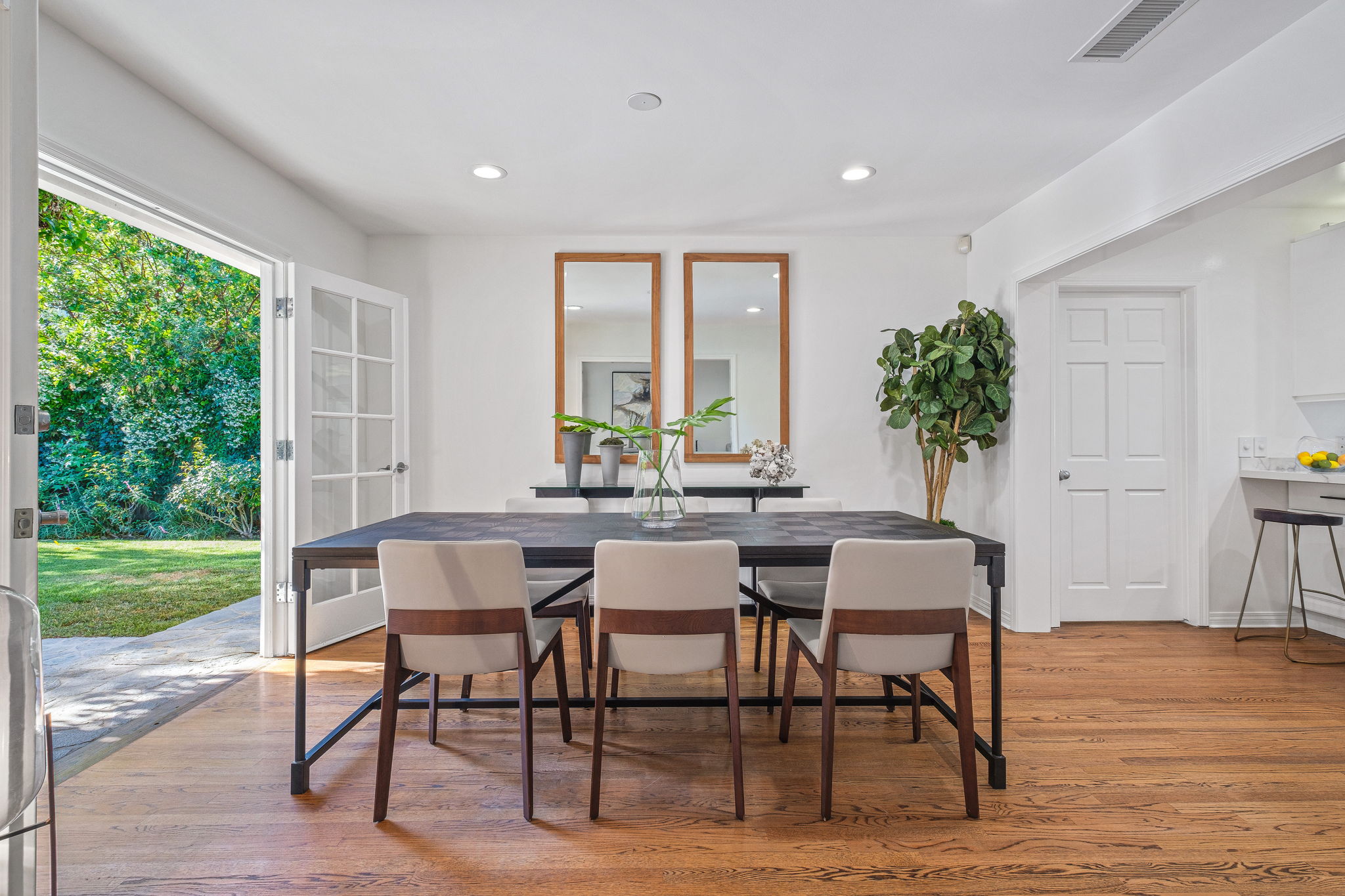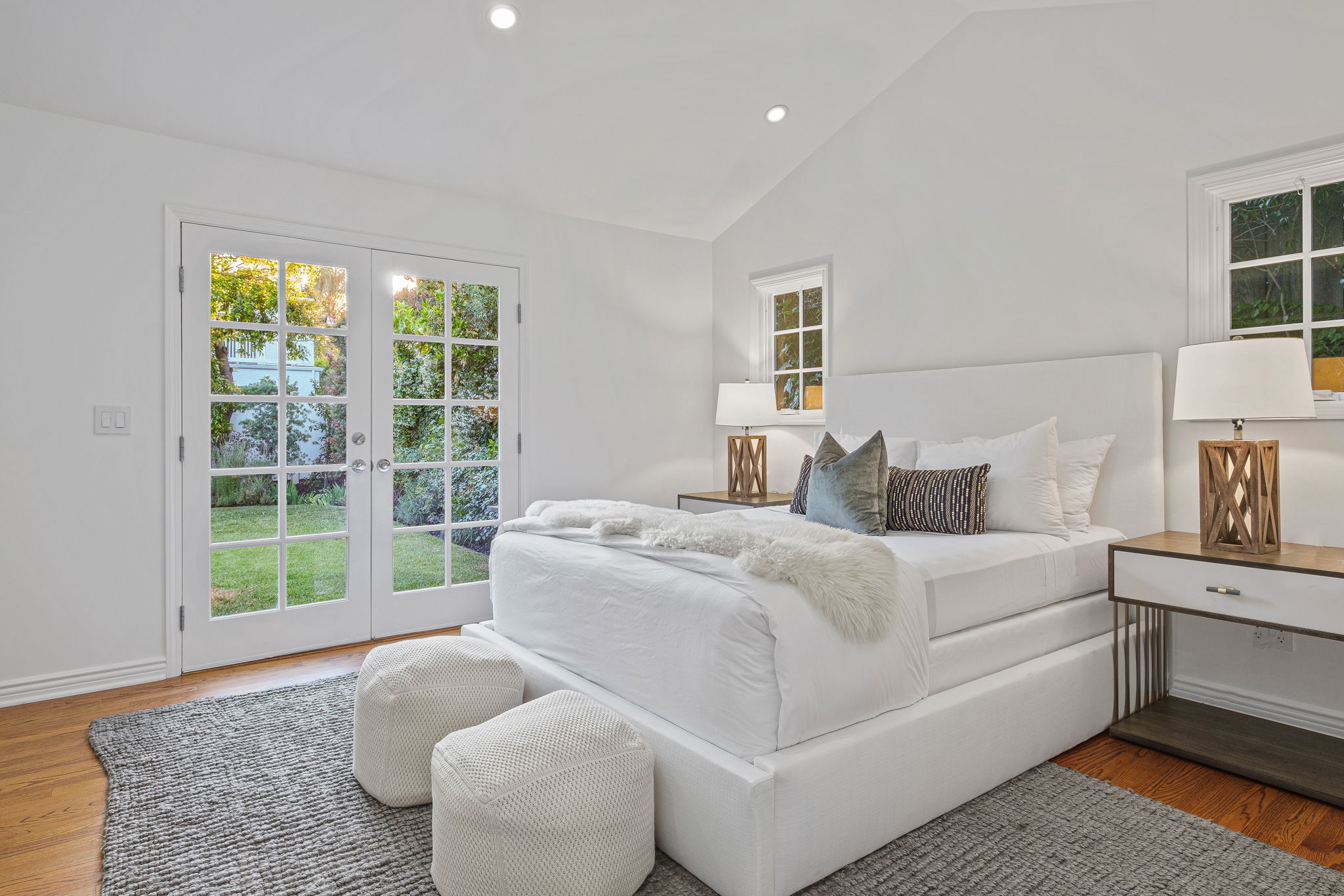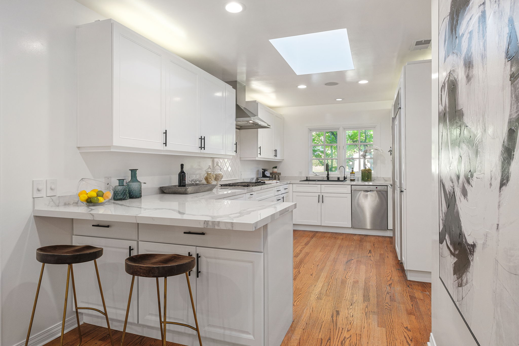 This charming remodeled traditional home in the heart of Brentwood offers a wonderful floor plan and light-filled living spaces. The living room boasts a Travertine fireplace and French doors opening to a lush and private landscaped yard with sun-drenched pool, fire pit, pergola, and entertaining areas. The chef kitchen comes replete with marbled porcelain countertops and top-of-the-line appliances. The owner's suite offers vaulted ceilings, an abundance of natural light, beautiful built-in cabinetry, and a luxurious bathroom and soaking tub. Hardwood floors throughout. A spacious upstairs living area serves as a separate living room, playroom, or fifth bedroom. 2-car garage.