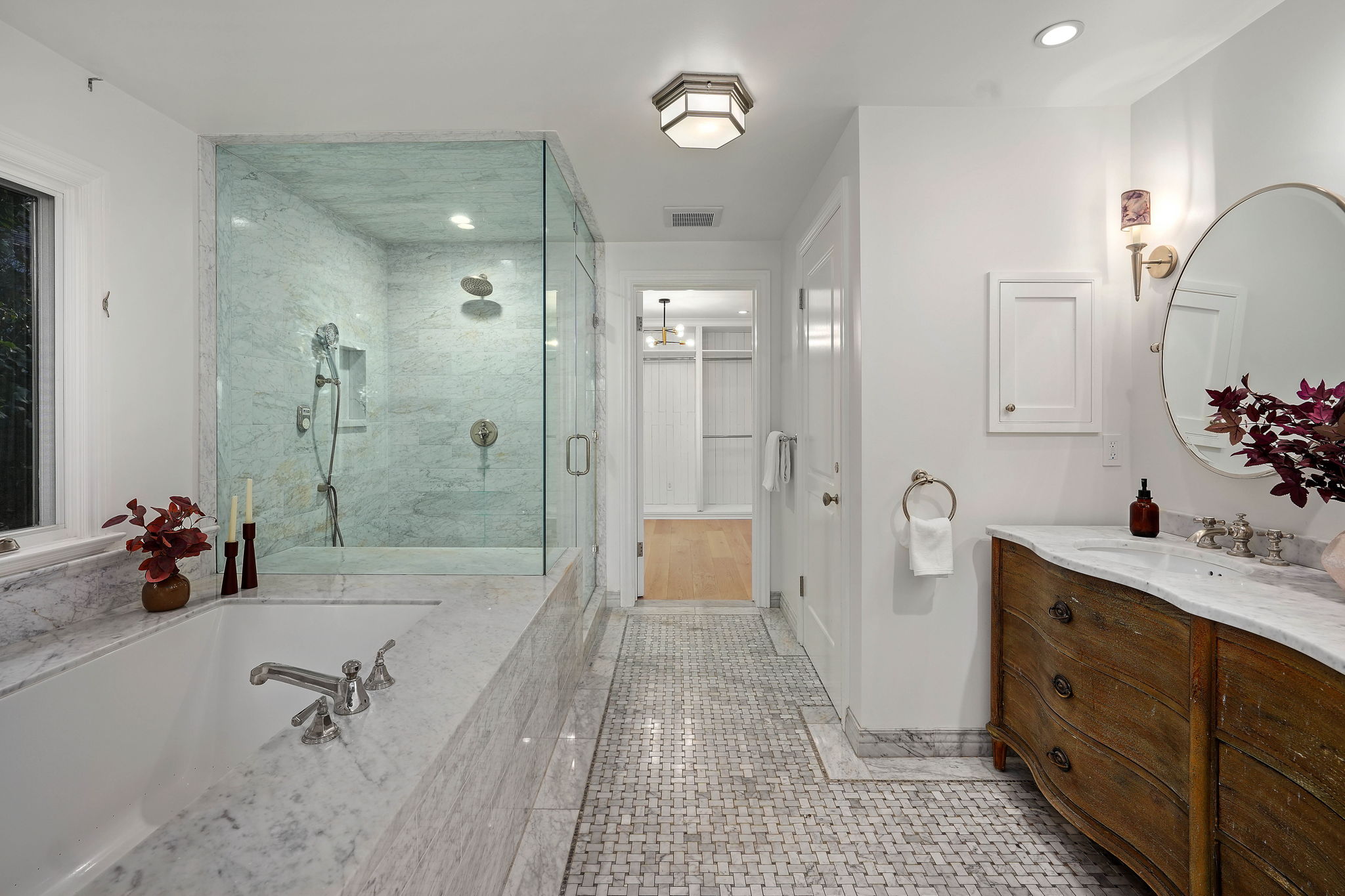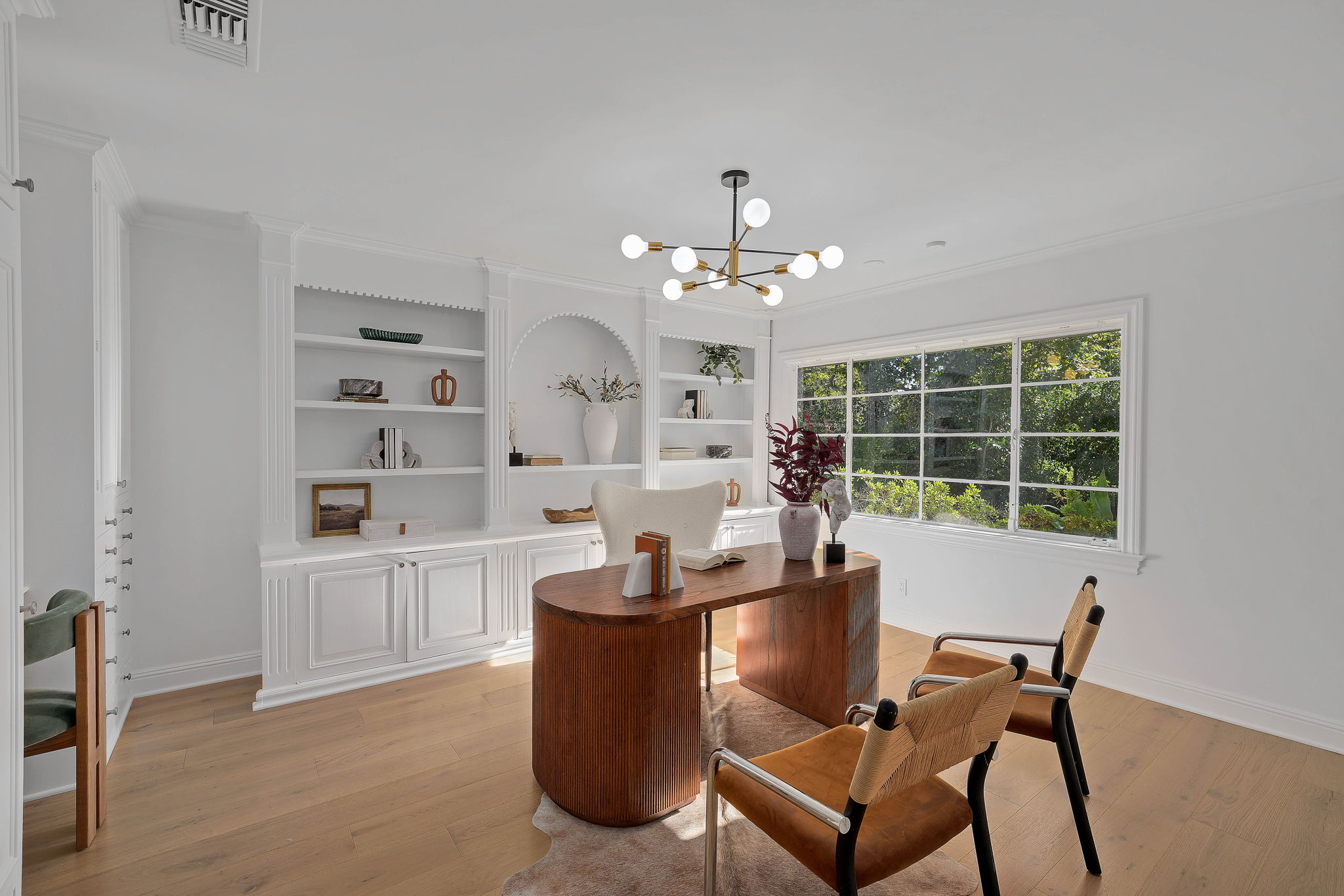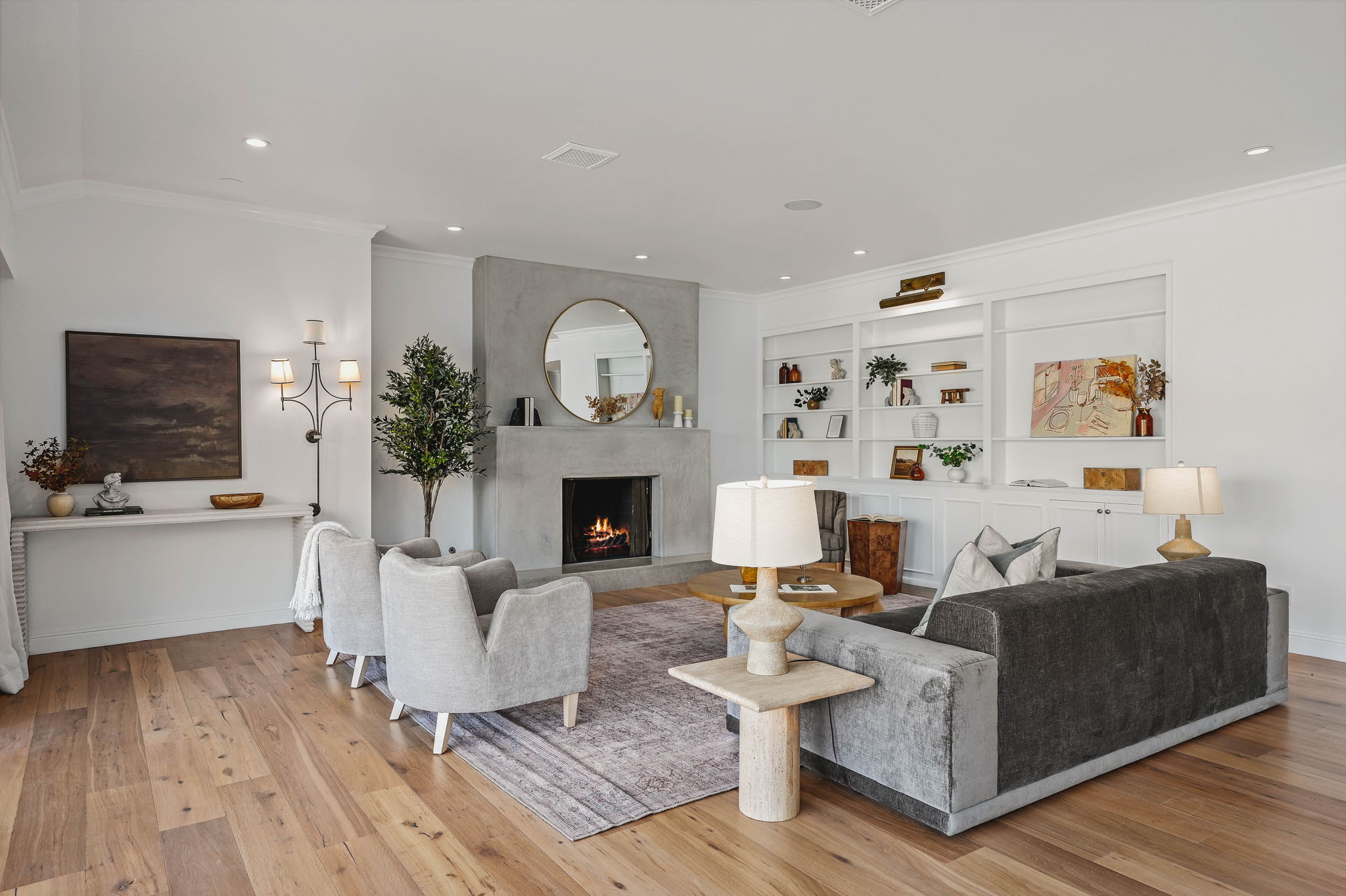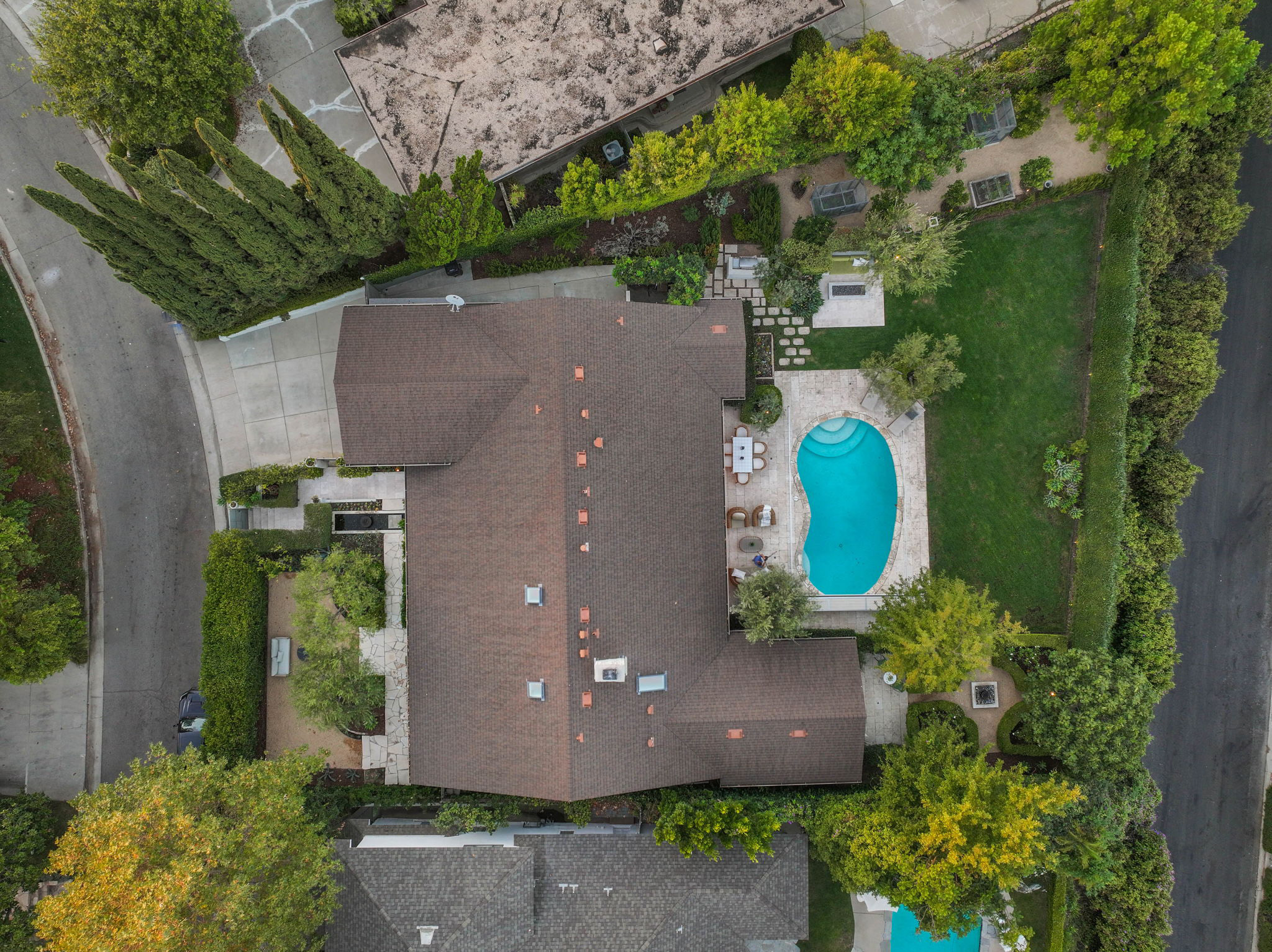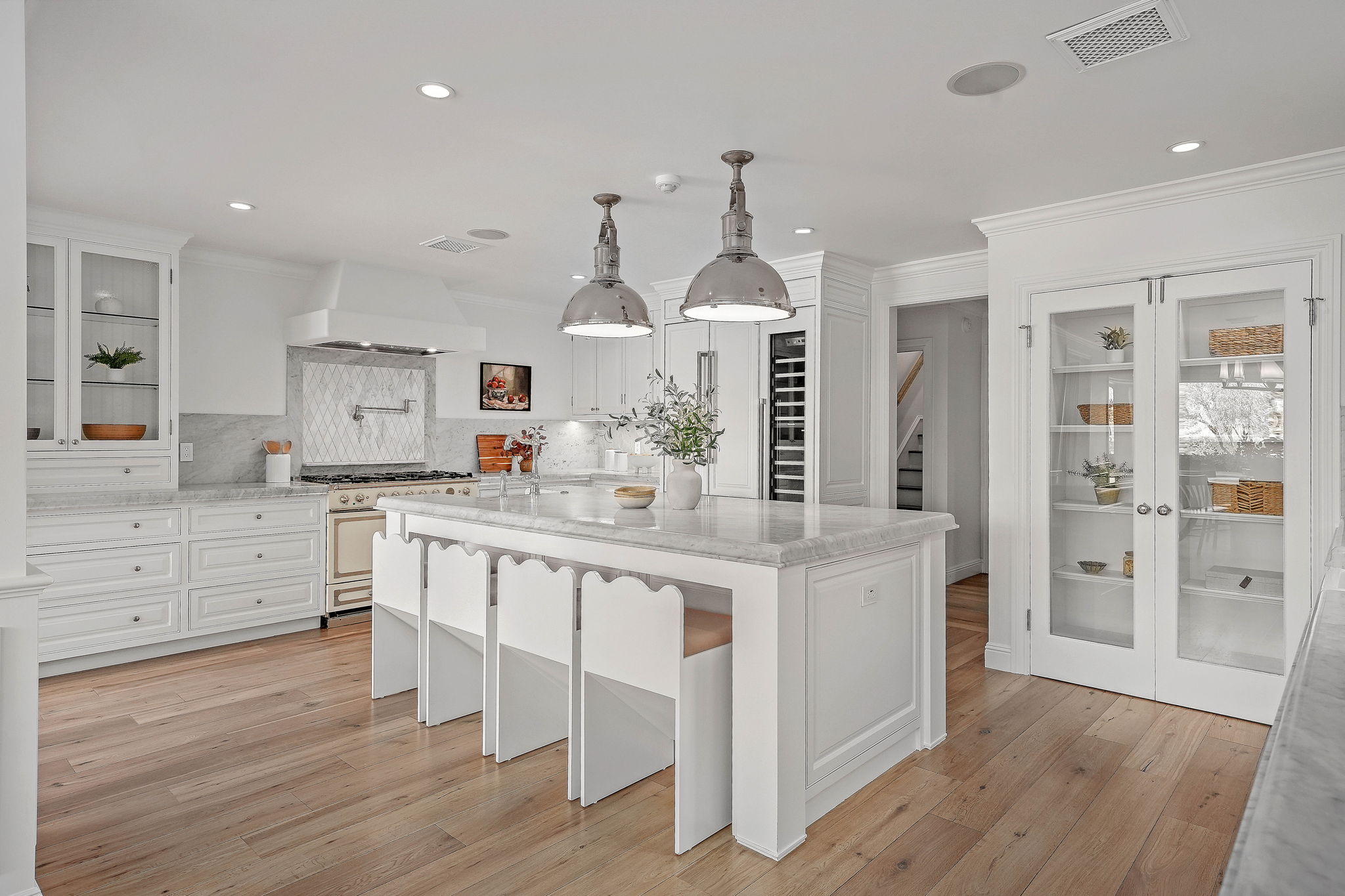 Nestled on a tranquil cul-de-sac in the scenic hills of Studio City, this exceptional trophy property offers unrivaled privacy and breathtaking vistas of the city and mountains. This exquisite single-story residence boasts four bedrooms and four bathrooms, gracefully set on an expansive 15,000+ sq. ft. flat lot adorned with rolling grassy lawns and meticulously manicured grounds. The interior is strikingly sophisticated, featuring a dramatic open floor plan enhanced by elegant white oak floors and expansive walls of glass that create a seamless connection between indoor and outdoor spaces. The entertainer's yard is a true oasis, complete with a sparkling pool, a barbecue area, built-in outdoor seating, a fire pit, and herb, citrus, and rose gardens. The gourmet kitchen is a culinary masterpiece, showcasing luxurious marble countertops, custom-milled cabinetry, a farmhouse sink, and top-of-the-line appliances, including a breathtaking La Cornue range. The bright primary suite opens to a private patio and is accompanied by a spa-like ensuite bathroom clad in marble, featuring a dual vanity, a steam shower, and a spacious walk-in closet. Surrounded by exquisitely landscaped grounds, including a gated front yard with a tranquil fountain and stately olive trees, this property is impeccably designed for even the most discerning occupant. Additional amenities include a two-car garage with ample driveway parking.