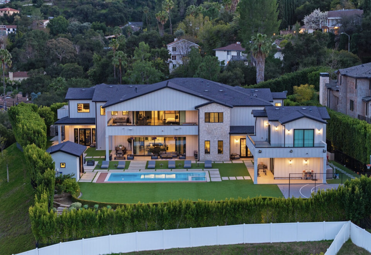A beautiful modern farmhouse in Encino, set on a cul-de-sac behind private gates on a serene 1.35-acre lot. This recently constructed estate offers 12,000+ sq. ft. of luxurious living, with soaring ceilings and an expansive foyer that leads to elegant living spaces. The gourmet kitchen features dual islands, a cozy breakfast nook, and a butler’s pantry. The estate includes 8 bedrooms, 12 bathrooms, and 2 offices, plus a two-story guest house and a covered cabana with its own bathroom. Amenities include a temperature-controlled wine cellar, a state-of-the-art home theater, and an outdoor kitchen for alfresco dining. Additional amenities include a private gym, sports court, saltwater pool, 4-car garage, generator, and guard house for ultimate security and convenience.
