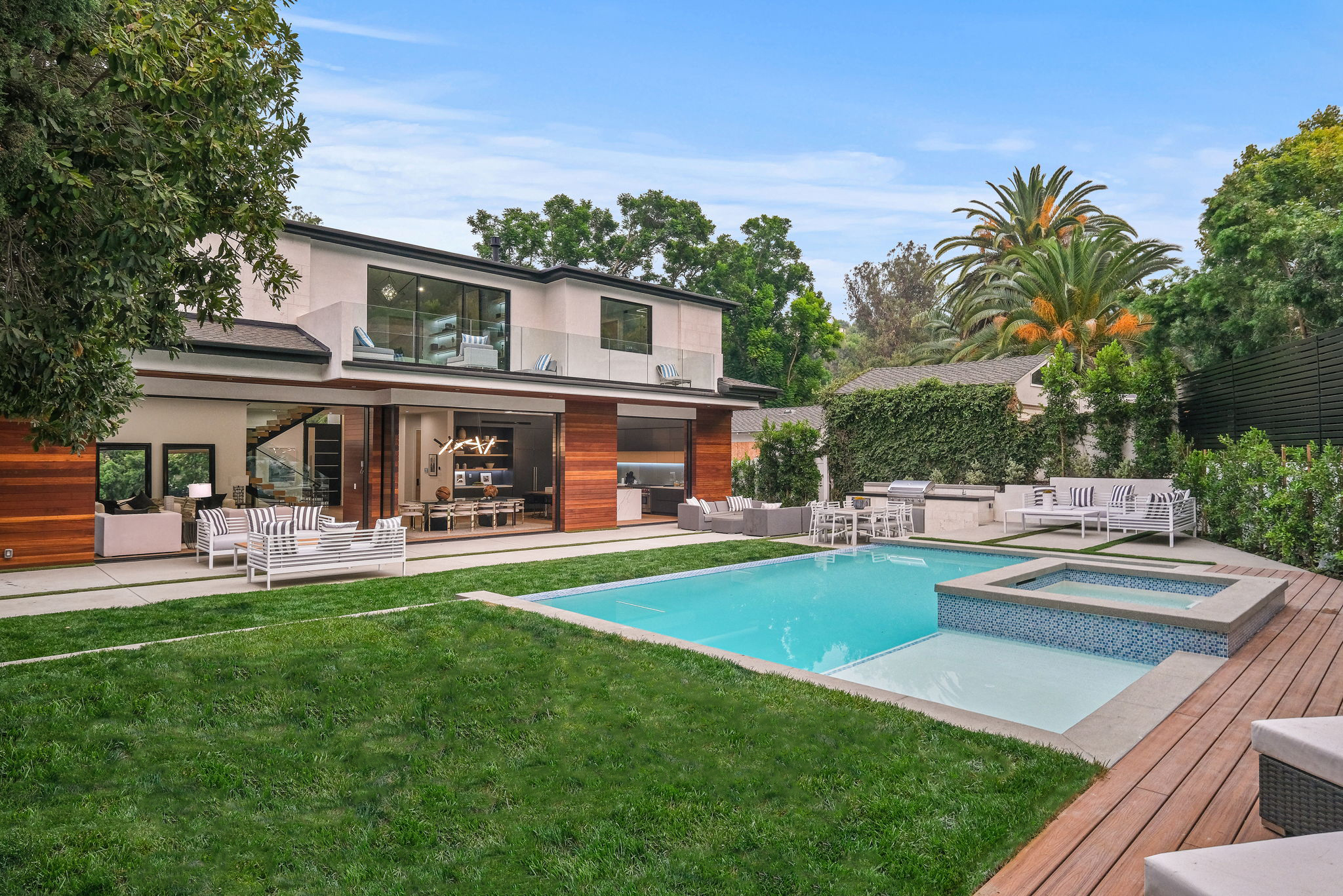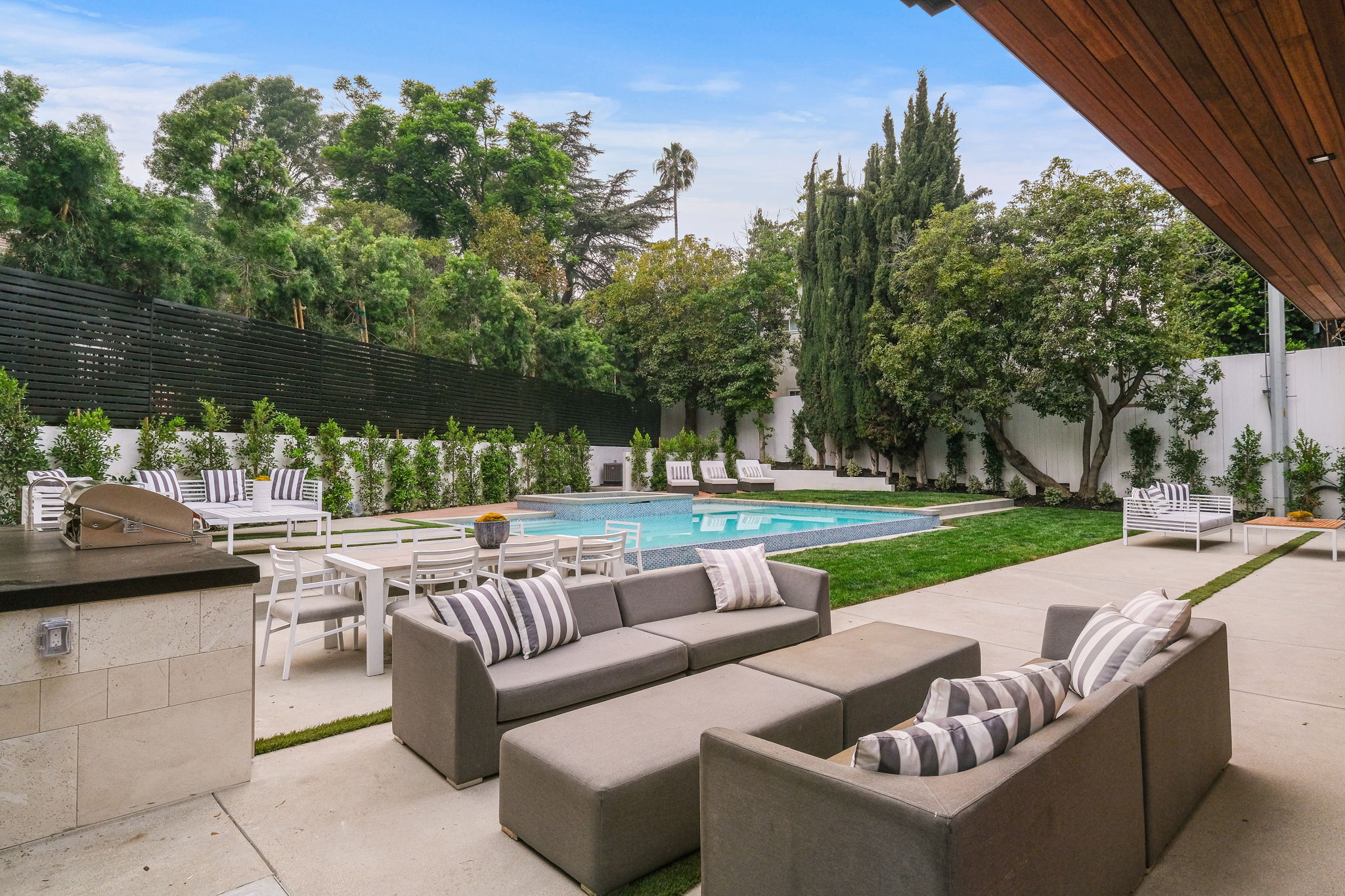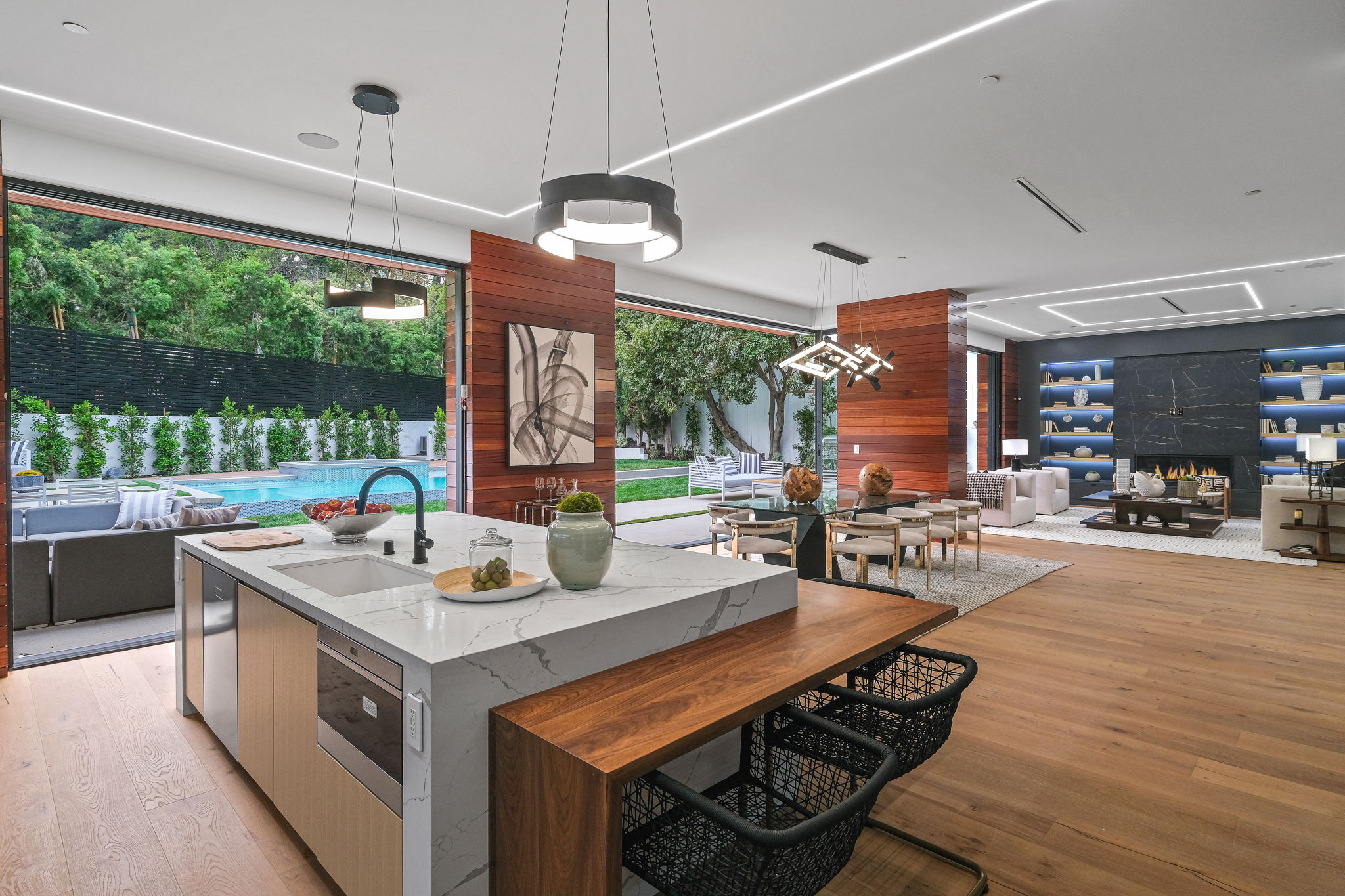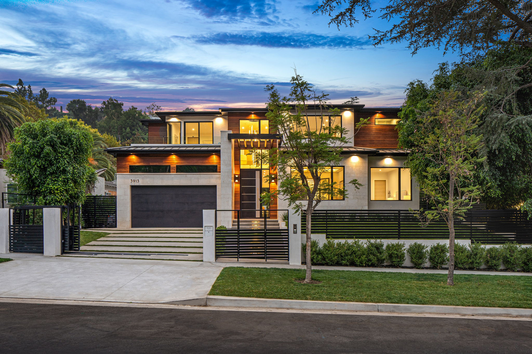 Located on one of the most sought-after streets in Sherman Oaks, this newly constructed and privately gated contemporary estate presents astounding finishes and design, with over 6,800 sq. ft. of living space, 5 beds, 8 baths, and unrivaled amenities. The main level offers an open floor plan with high ceilings and floor-to-ceiling pocket glass doors for exceptional indoor-outdoor living. The chef’s kitchen boasts sleek custom cabinetry, a huge granite island, and top-of-the-line appliances. The living area features an exquisite back-lit black stone fireplace and opens up to an expansive and private yard with an infinity-edge saltwater pool, spa, and BBQ. The luxurious owner’s suite comes replete with a spa-like bath with soaking tub, dual showers, a large walk-in closet, beautiful built-in vanity, a cedarwood sauna, and a private deck. The spacious pool hall features a modern bar, with a glass-encased wine cellar, pool table, and sitting area. Exceptional 4k/audio/video home theater and gym. 2-car garage and driveway parking.
