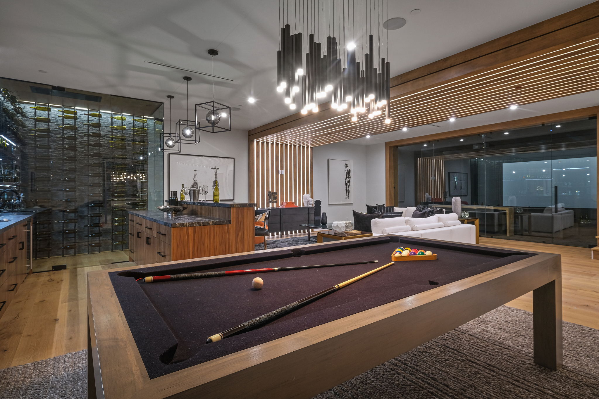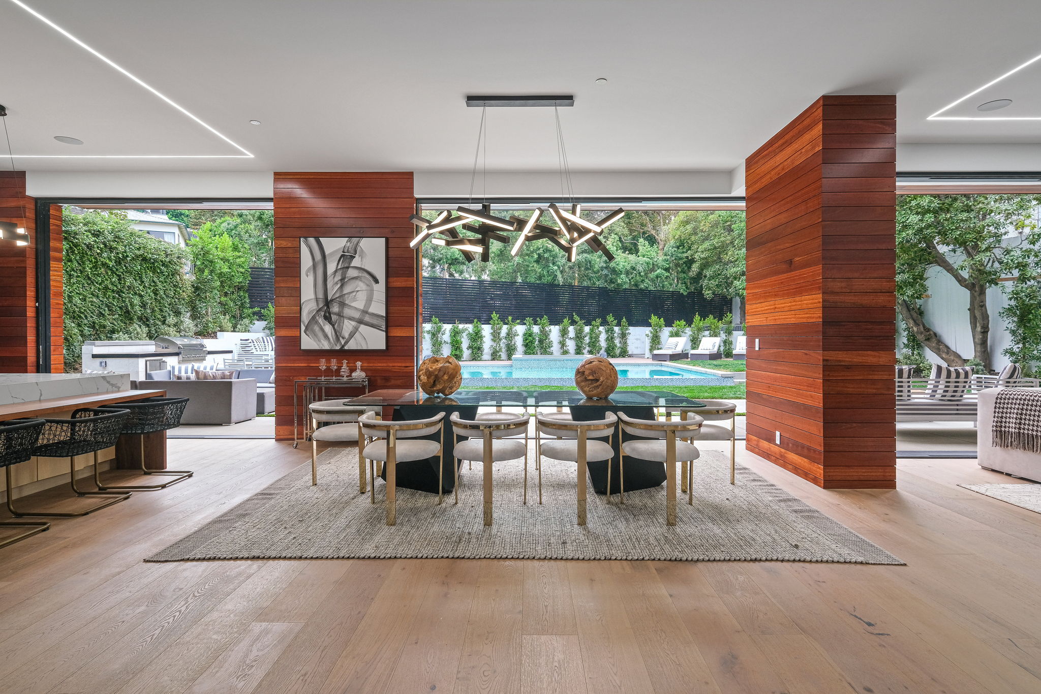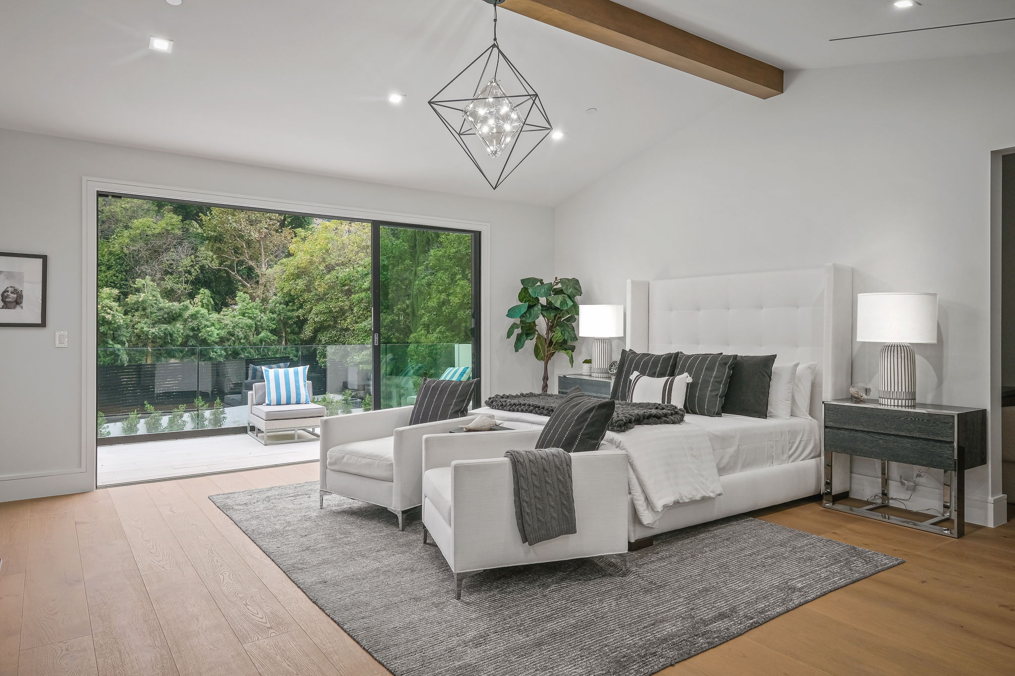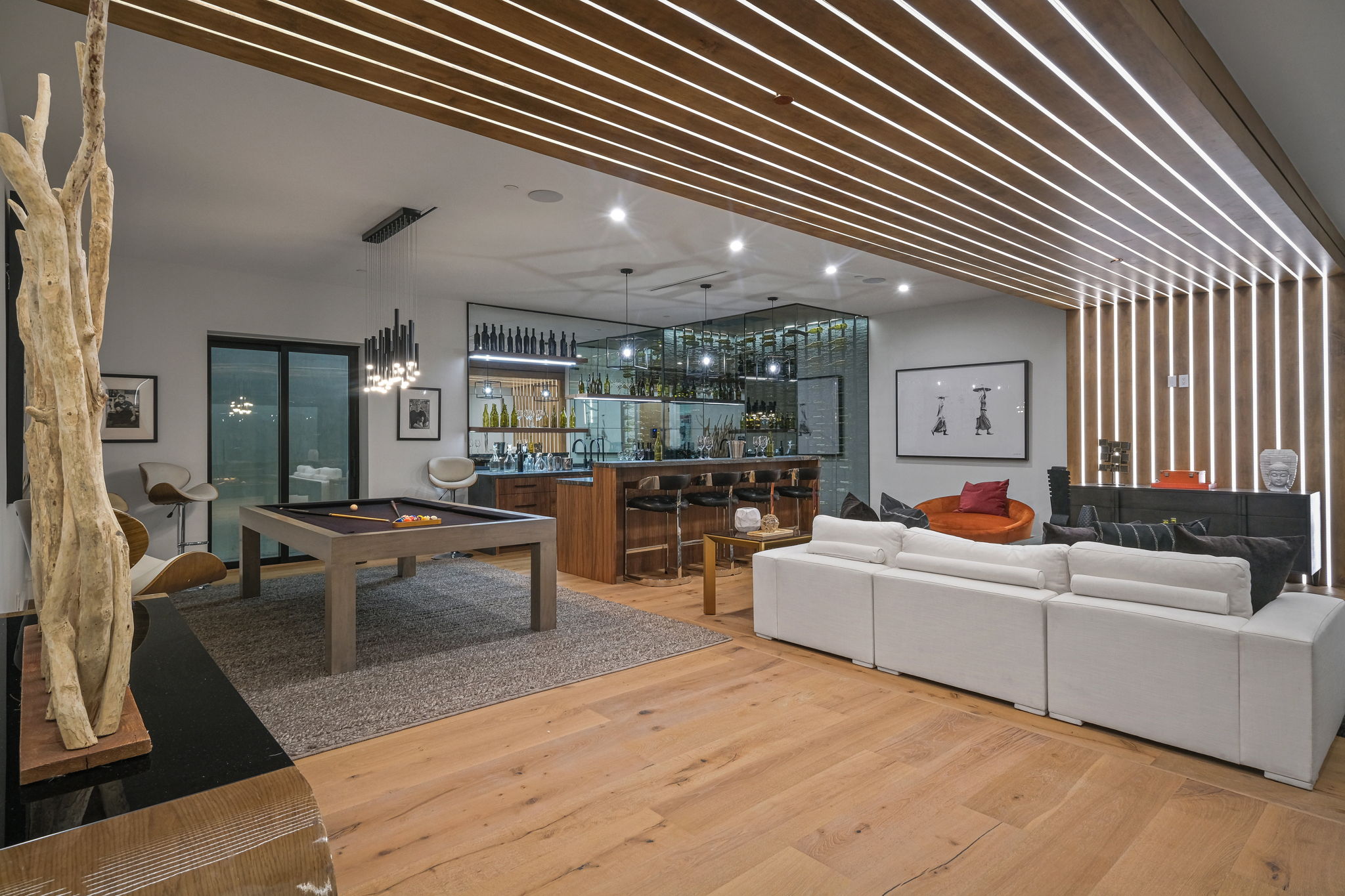 Located on one of the most sought-after streets in Sherman Oaks, this newly constructed and privately gated contemporary estate presents astounding finishes and design, with over 6,800 sq. ft. of living space, 5 beds, 8 baths, and unrivaled amenities. The main level offers an open floor plan with high ceilings and floor-to-ceiling pocket glass doors for exceptional indoor-outdoor living. The chef’s kitchen boasts sleek custom cabinetry, a huge granite island, and top-of-the-line appliances. The living area features an exquisite back-lit black stone fireplace and opens up to an expansive and private yard with an infinity-edge saltwater pool, spa, and BBQ. The luxurious owner’s suite comes replete with a spa-like bath with soaking tub, dual showers, a large walk-in closet, beautiful built-in vanity, a cedarwood sauna, and a private deck. The spacious pool hall features a modern bar, with a glass-encased wine cellar, pool table, and sitting area. Exceptional 4k/audio/video home theater and gym. 2-car garage and driveway parking.