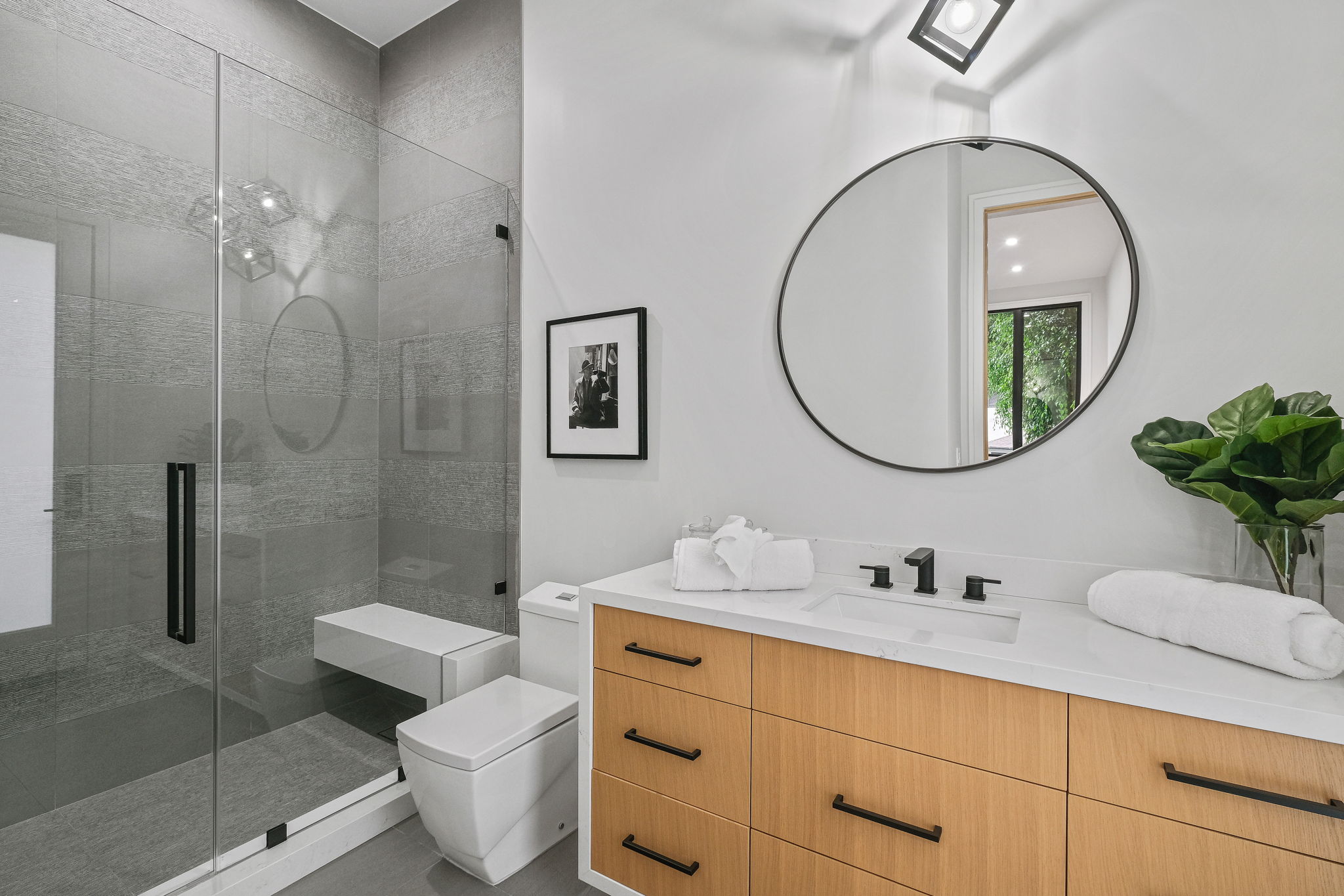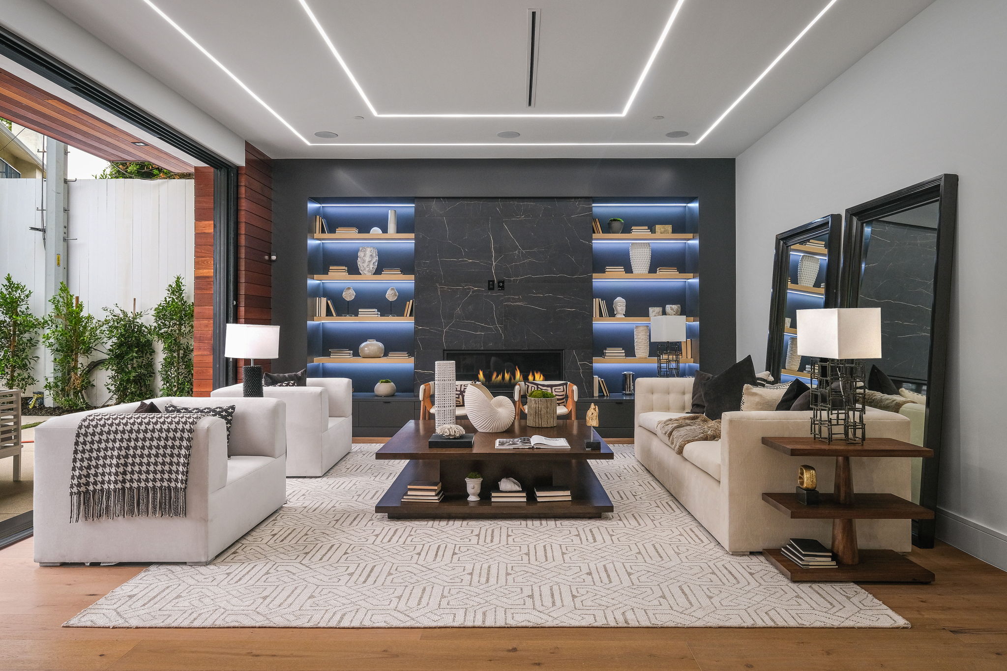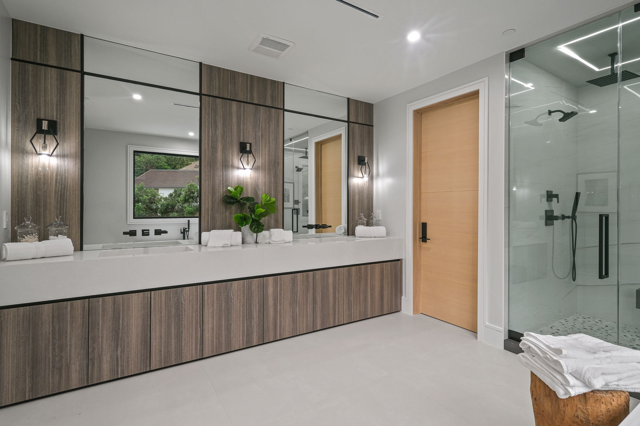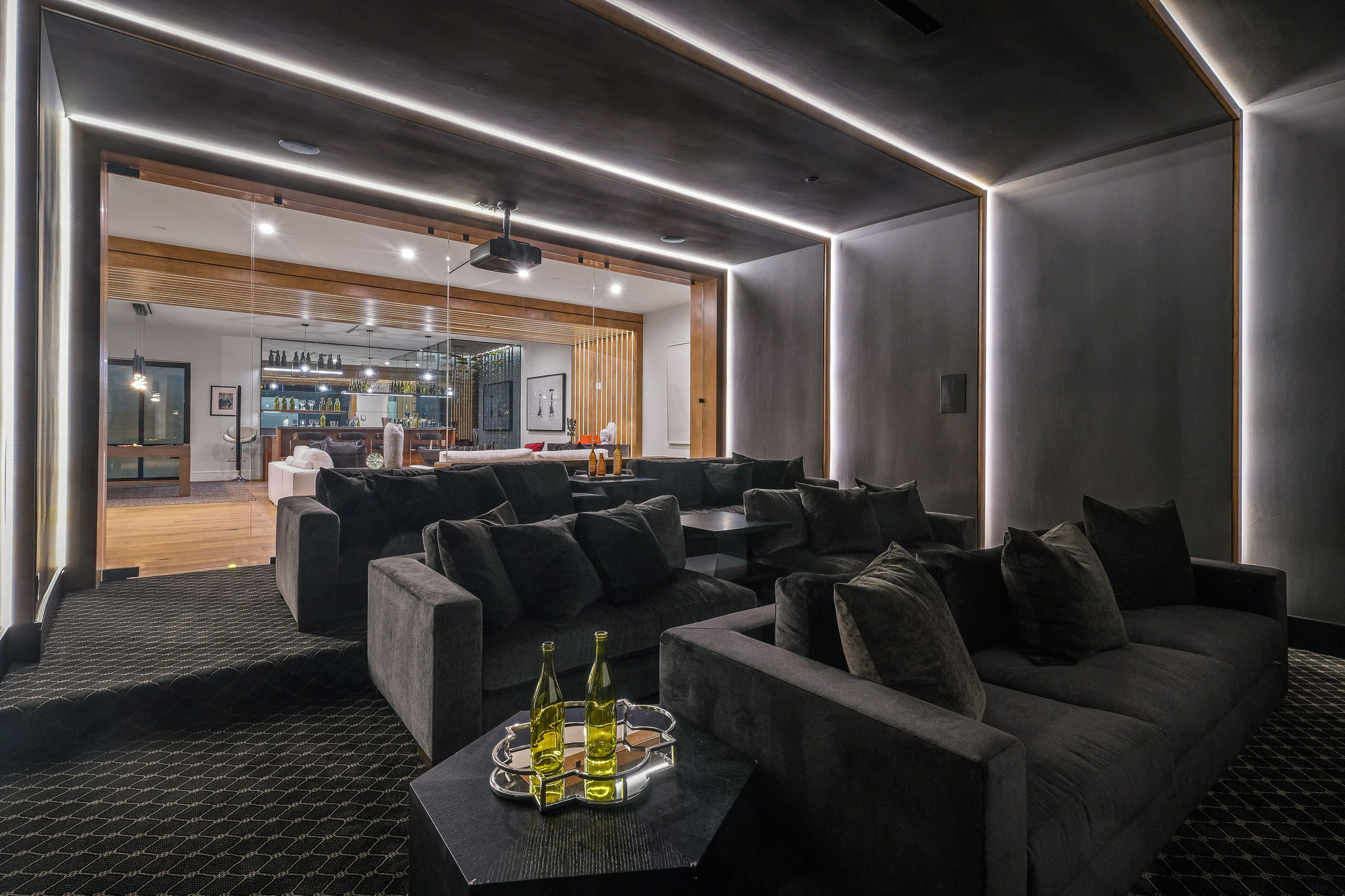 Located on one of the most sought-after streets in Sherman Oaks, this newly constructed and privately gated contemporary estate presents astounding finishes and design, with over 6,800 sq. ft. of living space, 5 beds, 8 baths, and unrivaled amenities. The main level offers an open floor plan with high ceilings and floor-to-ceiling pocket glass doors for exceptional indoor-outdoor living. The chef’s kitchen boasts sleek custom cabinetry, a huge granite island, and top-of-the-line appliances. The living area features an exquisite back-lit black stone fireplace and opens up to an expansive and private yard with an infinity-edge saltwater pool, spa, and BBQ. The luxurious owner’s suite comes replete with a spa-like bath with soaking tub, dual showers, a large walk-in closet, beautiful built-in vanity, a cedarwood sauna, and a private deck. The spacious pool hall features a modern bar, with a glass-encased wine cellar, pool table, and sitting area. Exceptional 4k/audio/video home theater and gym. 2-car garage and driveway parking.