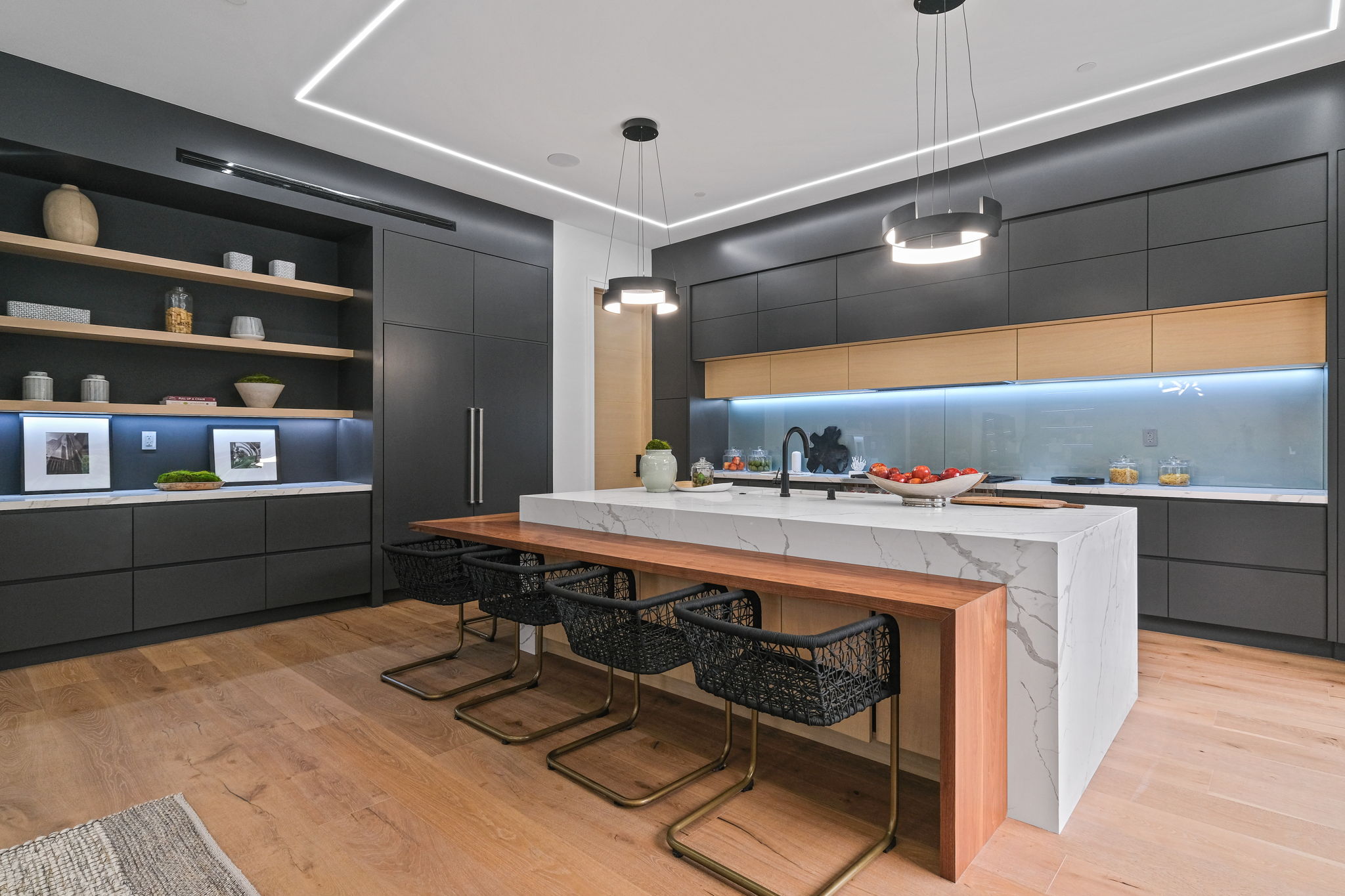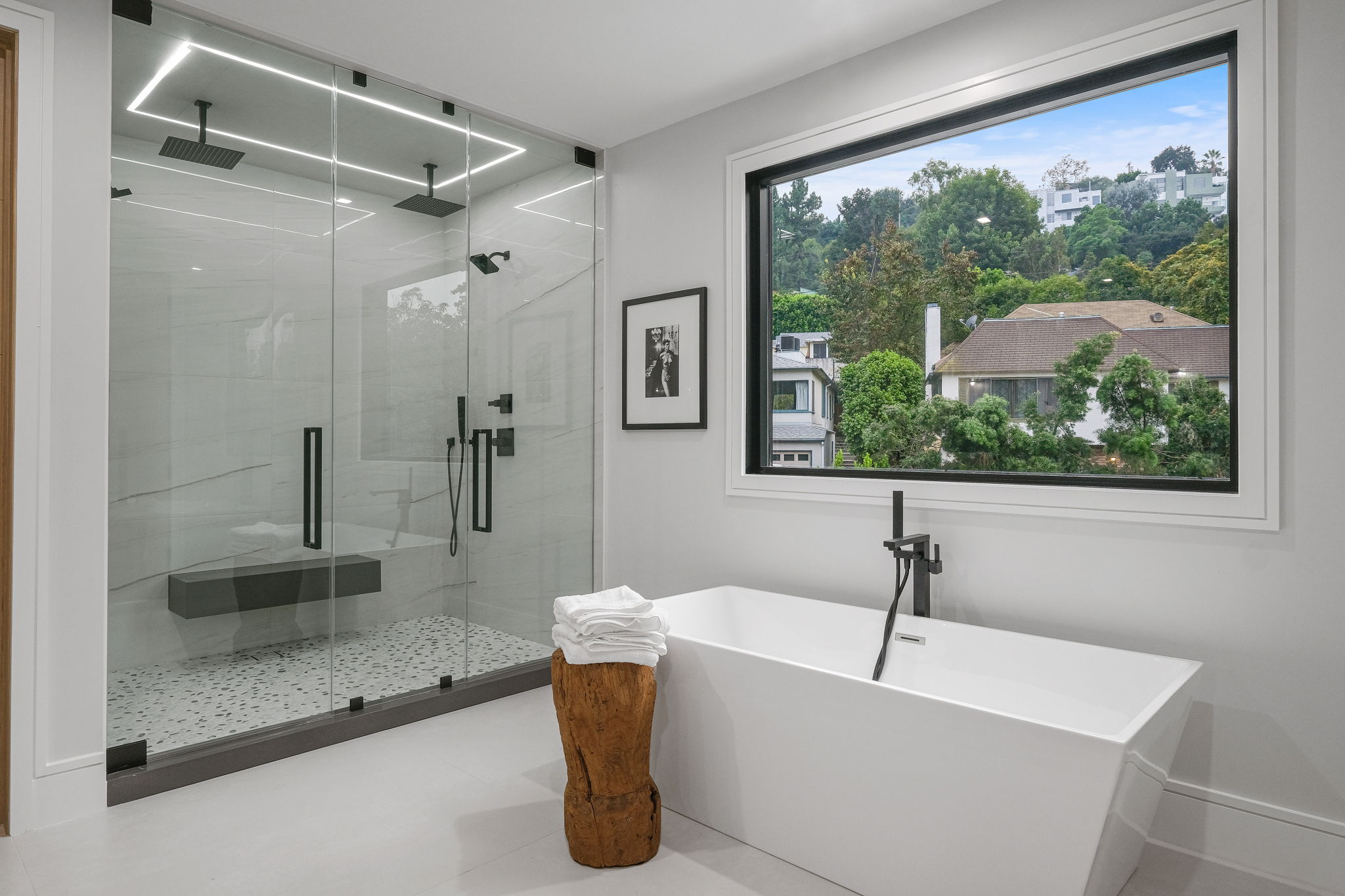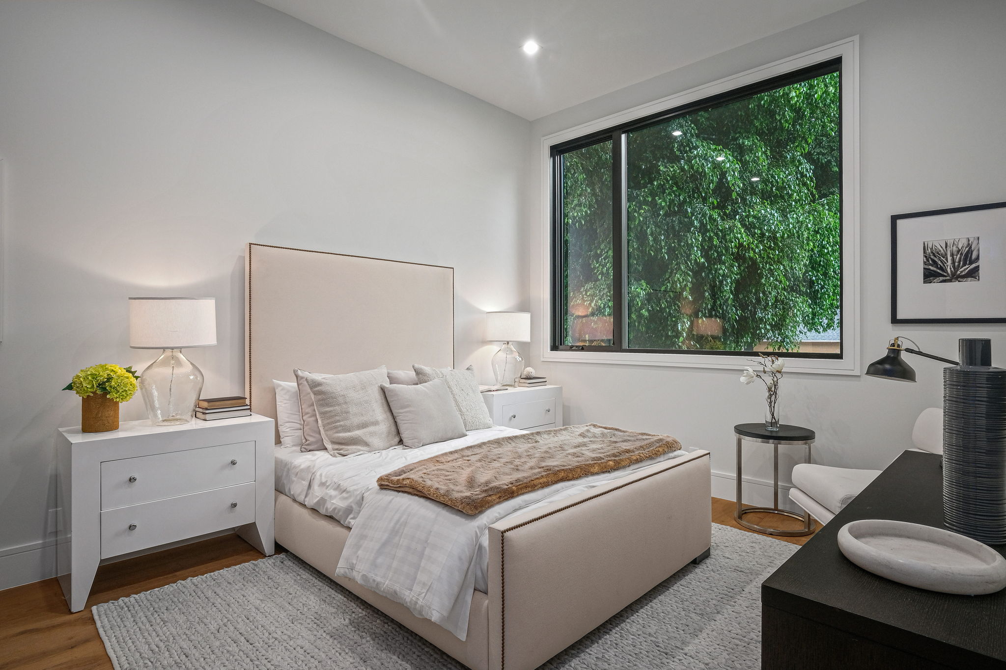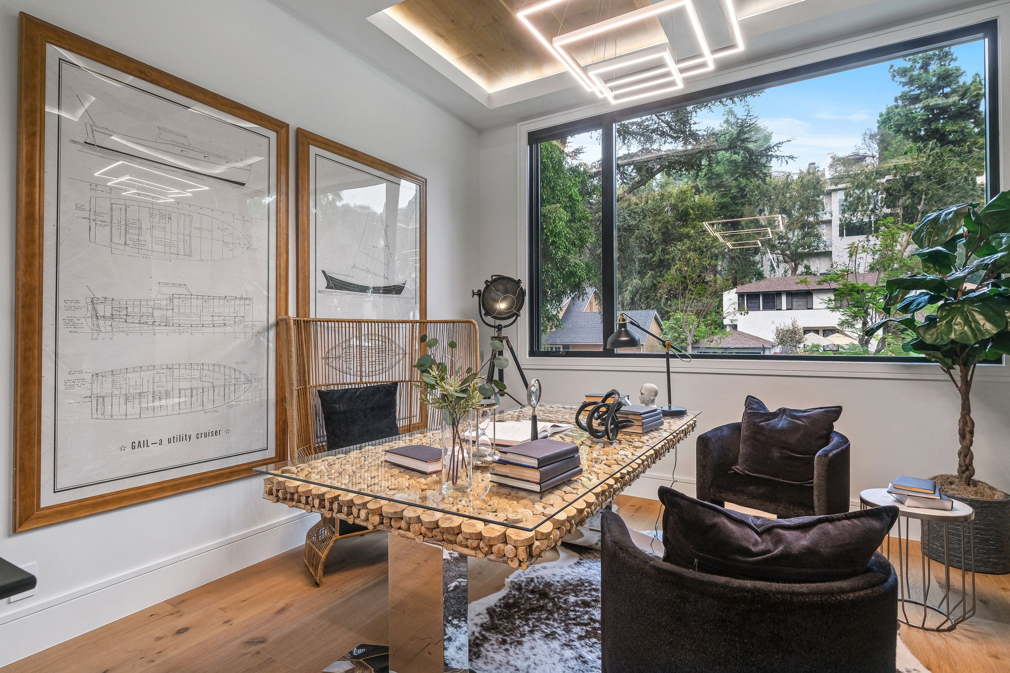 Located on one of the most sought-after streets in Sherman Oaks, this newly constructed and privately gated contemporary estate presents astounding finishes and design, with over 6,800 sq. ft. of living space, 5 beds, 8 baths, and unrivaled amenities. The main level offers an open floor plan with high ceilings and floor-to-ceiling pocket glass doors for exceptional indoor-outdoor living. The chef’s kitchen boasts sleek custom cabinetry, a huge granite island, and top-of-the-line appliances. The living area features an exquisite back-lit black stone fireplace and opens up to an expansive and private yard with an infinity-edge saltwater pool, spa, and BBQ. The luxurious owner’s suite comes replete with a spa-like bath with soaking tub, dual showers, a large walk-in closet, beautiful built-in vanity, a cedarwood sauna, and a private deck. The spacious pool hall features a modern bar, with a glass-encased wine cellar, pool table, and sitting area. Exceptional 4k/audio/video home theater and gym. 2-car garage and driveway parking.