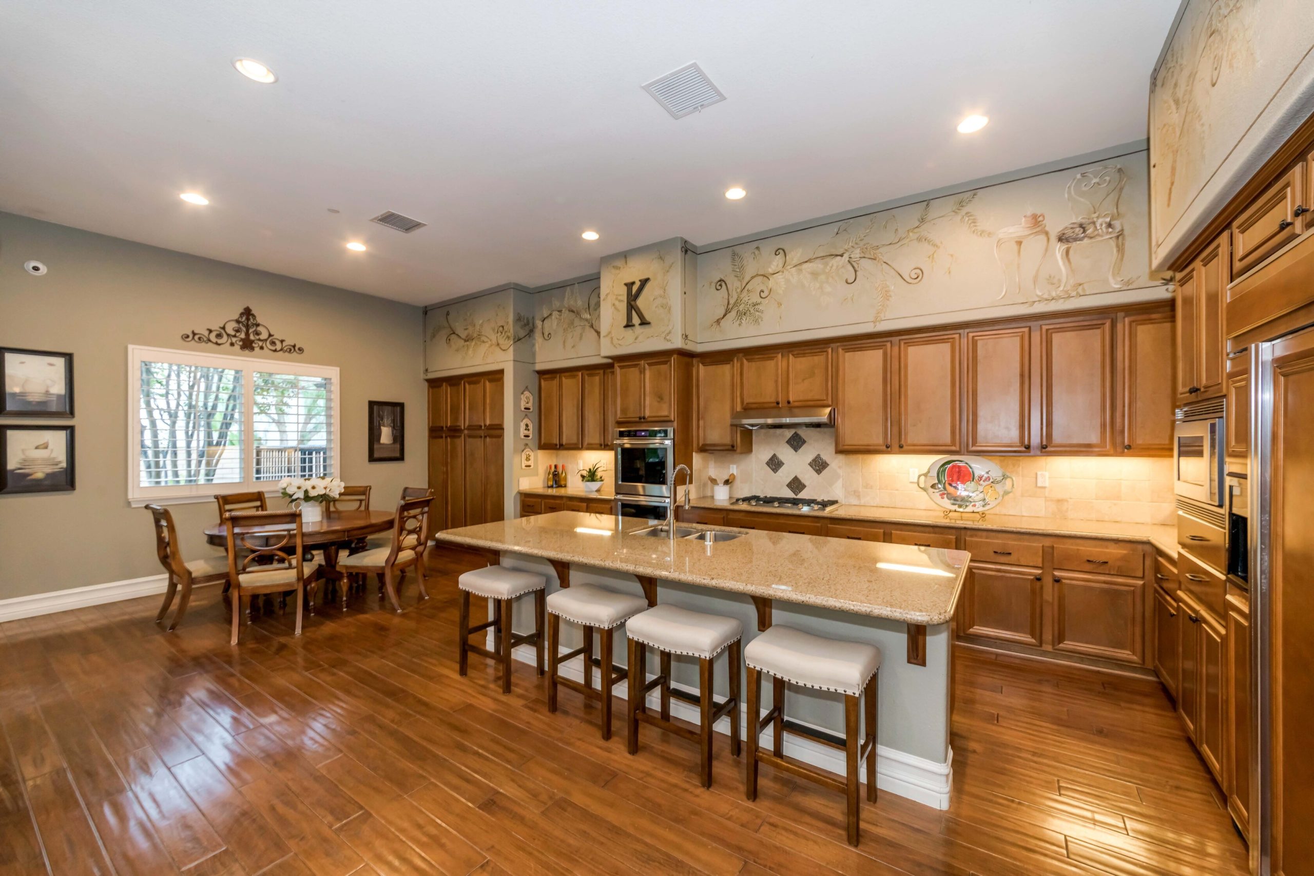 The abundant richness of the wood flooring and the intricate custom tile mosaic at the entry elevate the atmosphere. This residence boasts four