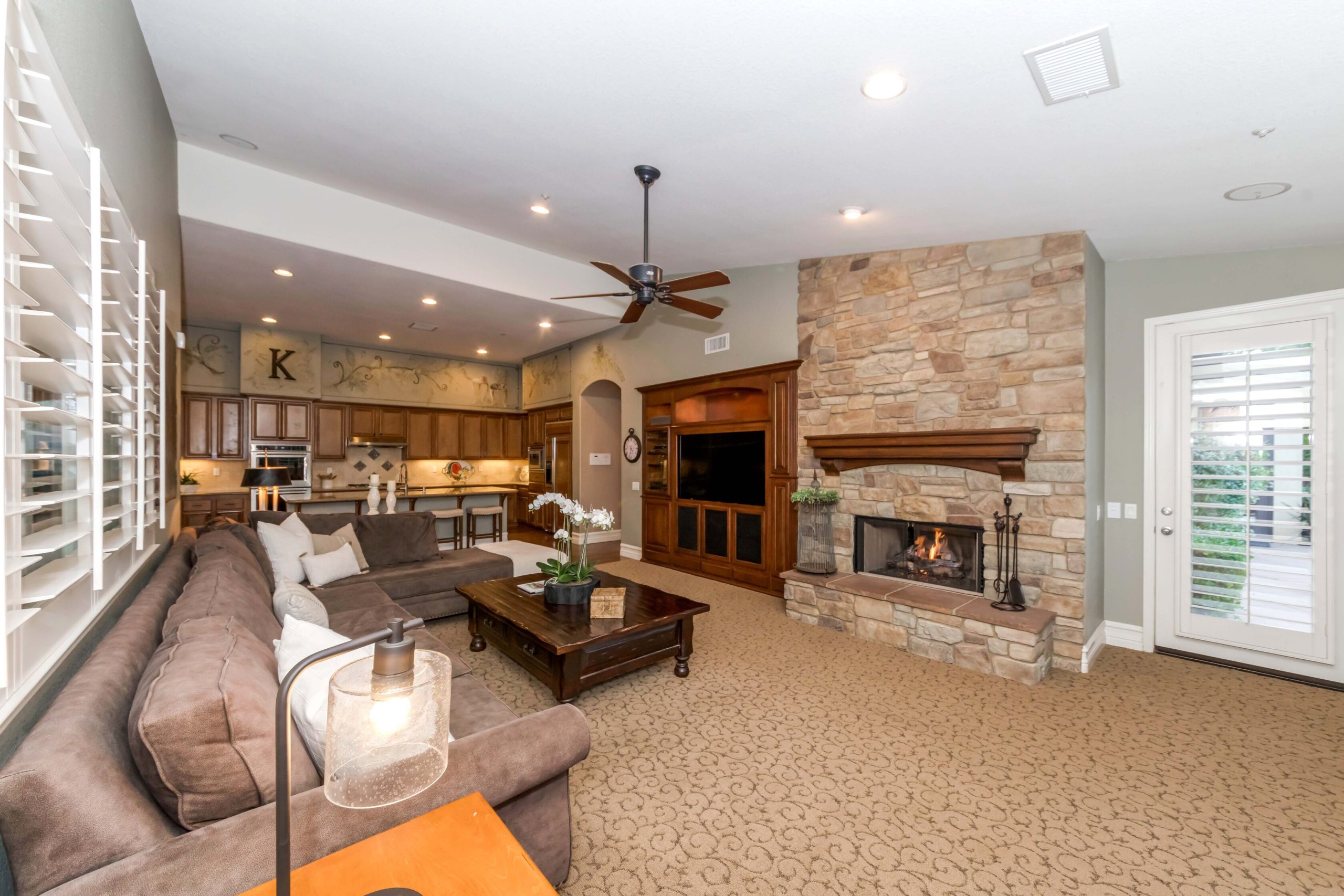 heart of the home is adorned with two fireplaces, one gracing the spacious living room and the other adding warmth to the inviting family room.