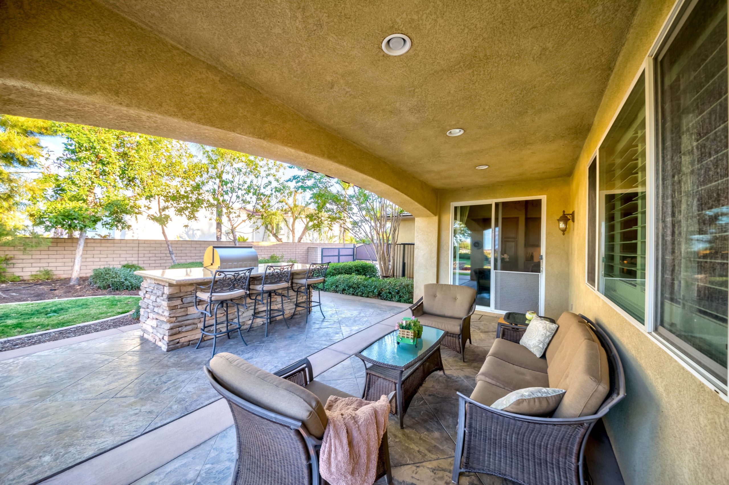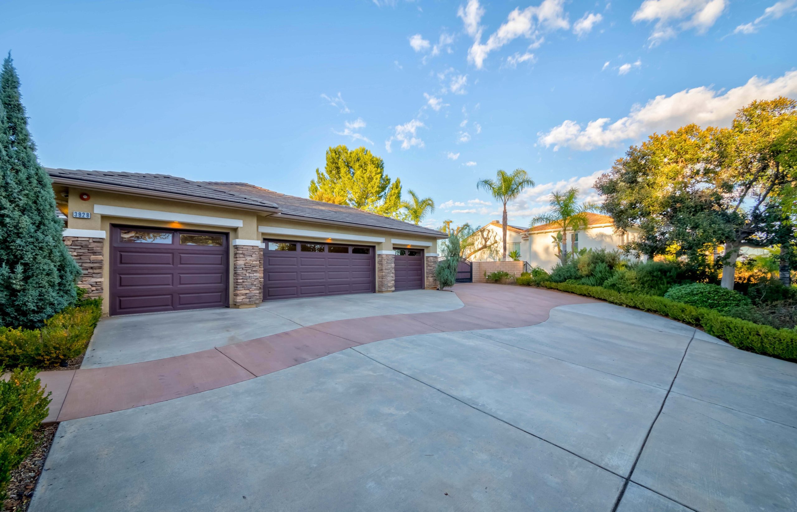dotted with majestic Olive trees. Gather with friends and family around the lighted, covered outdoor BBQ area with a retractable awning, creating memorable moments in a stylish and inviting setting. Experience the luxury of a spacious four-car garage, perfect for accommodating your prized