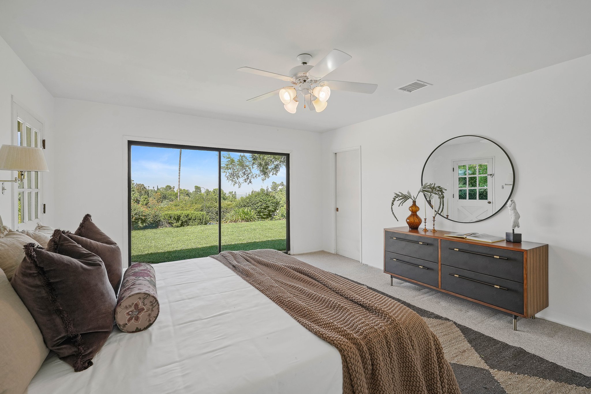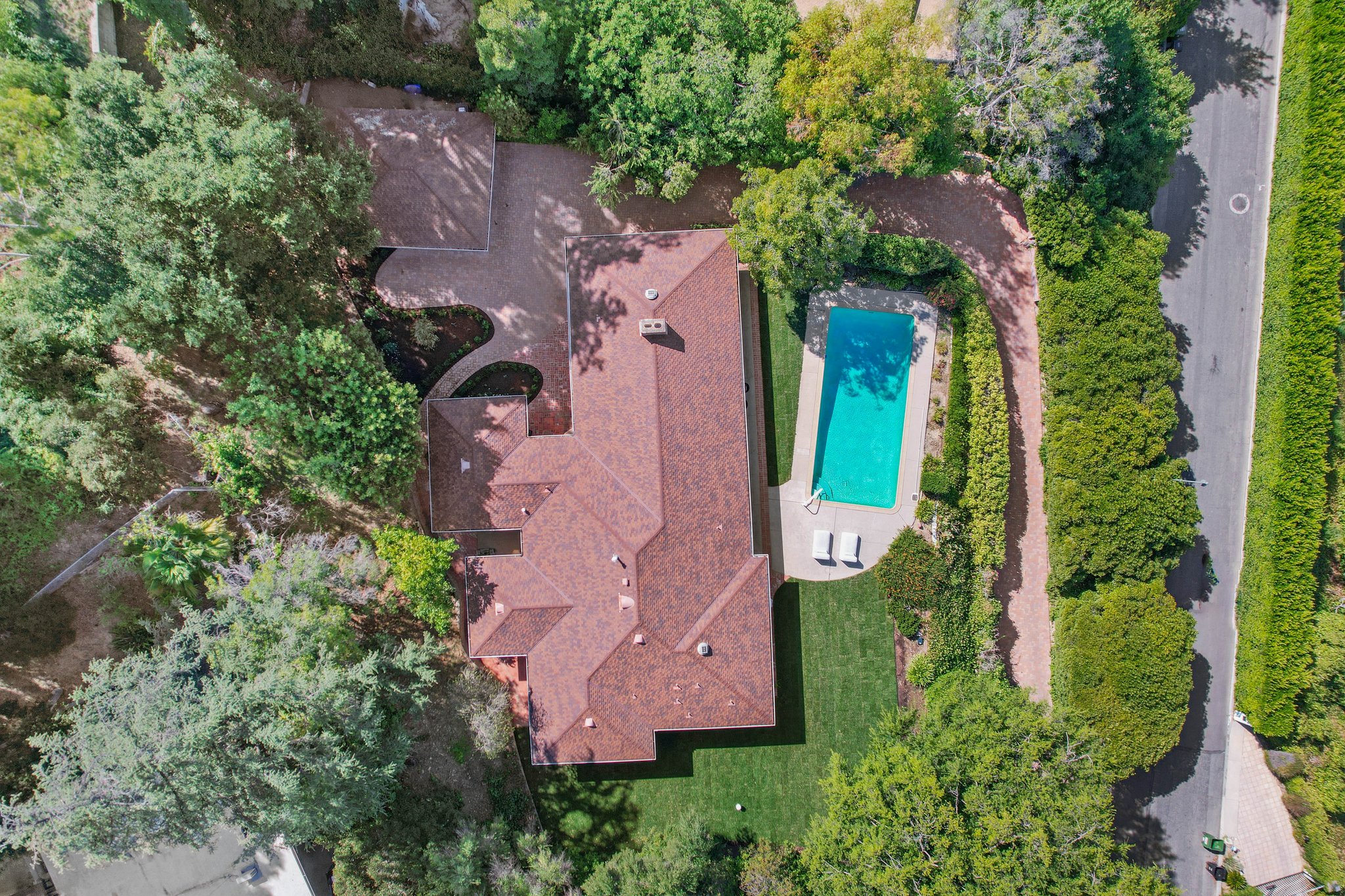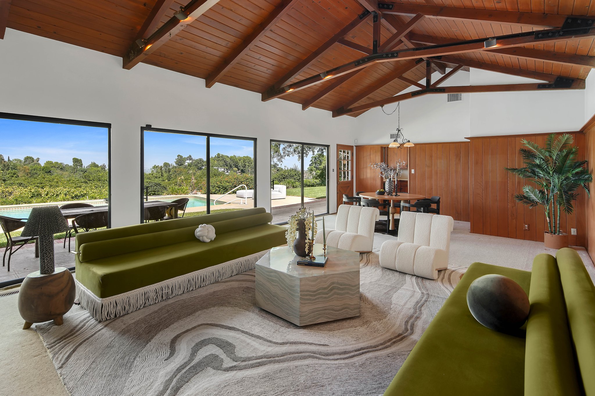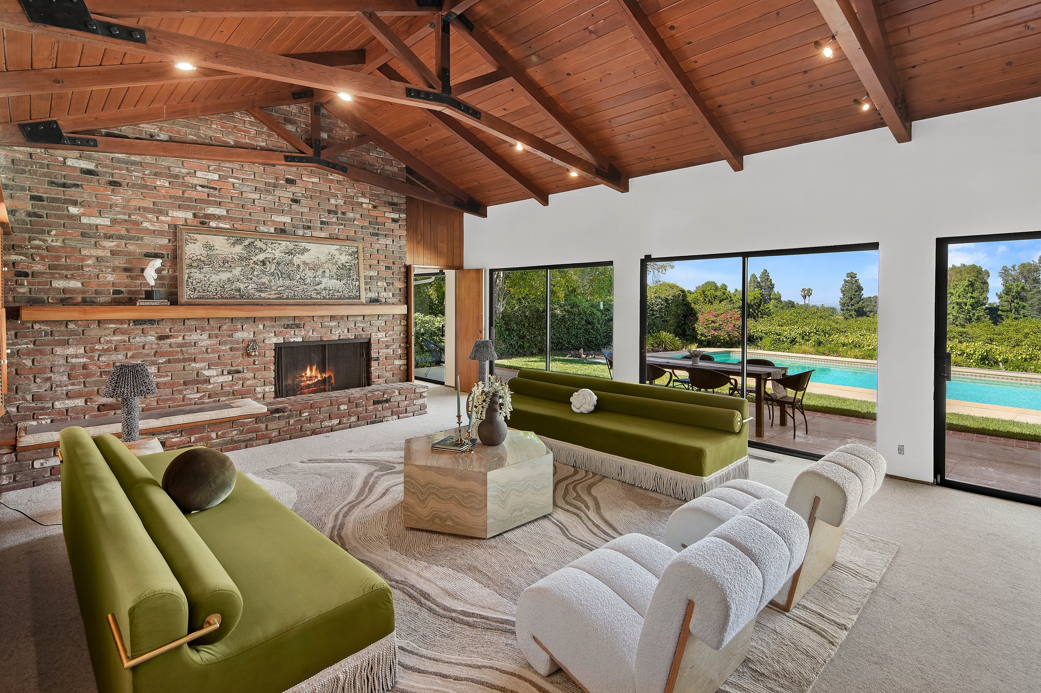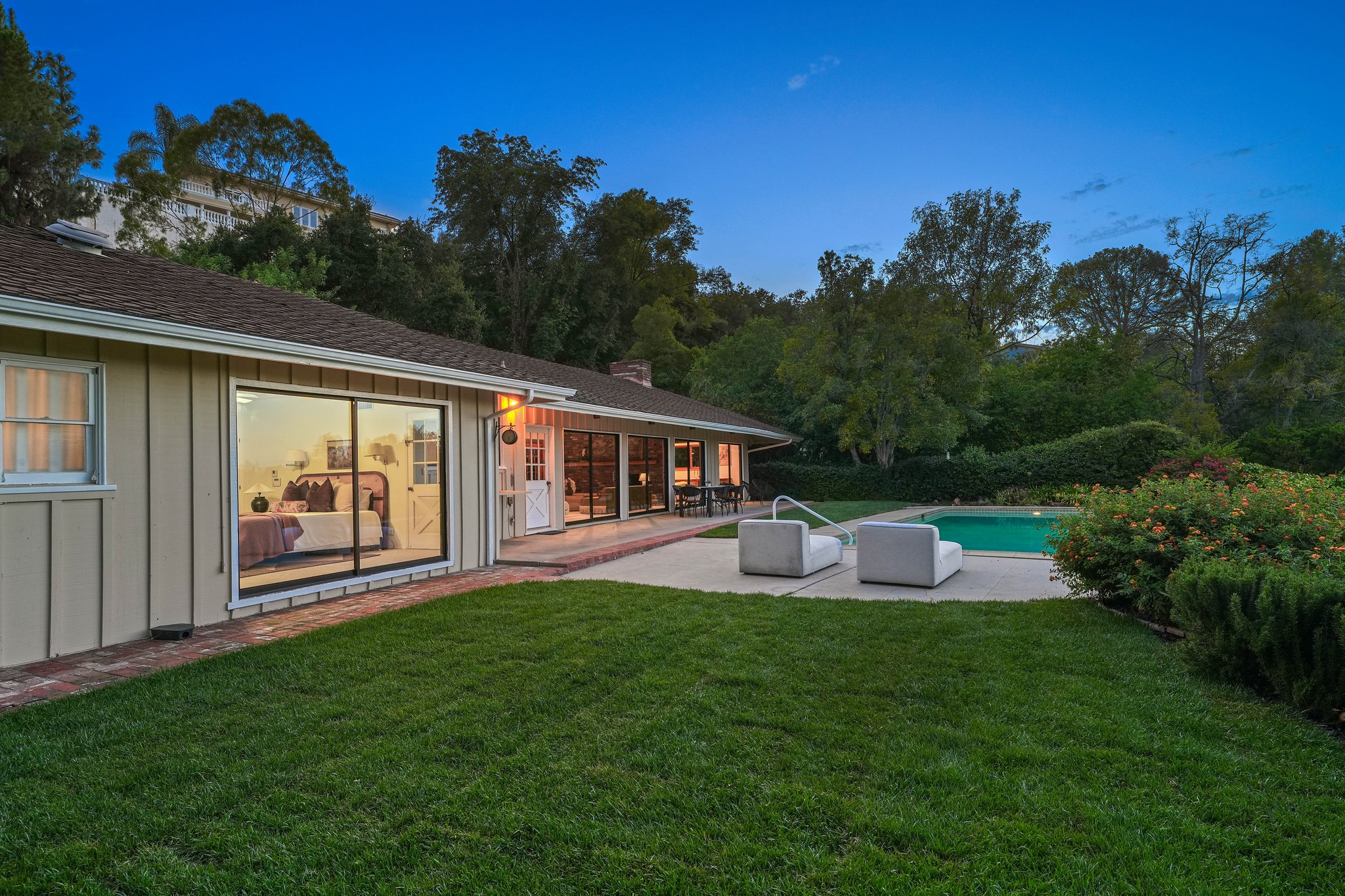 Nestled within Encino's highly coveted Royal Oaks neighborhood, this remarkable single-story mid-century home unfolds beyond a long private driveway on over half an acre of predominantly level and lush grounds. Enter into an impressive great room with high vaulted ceilings that open up to the expansive yard and pool with panoramic green belt and city views. The home exudes traditional charm, with wood paneling and a large beautiful brick fireplace. Off the traditional kitchen lies a spacious breakfast area, which in turn leads to a private courtyard. Adjacent to the family room, you'll find an additional bonus room that can serve as a home office. With a total of five bedrooms and three bathrooms, this home offers ample space for your needs. A generous private driveway culminates in a vast parking area with two-car carport. Surrounded by majestic trees and mature landscaping, this home envelops you in an oasis of complete privacy.