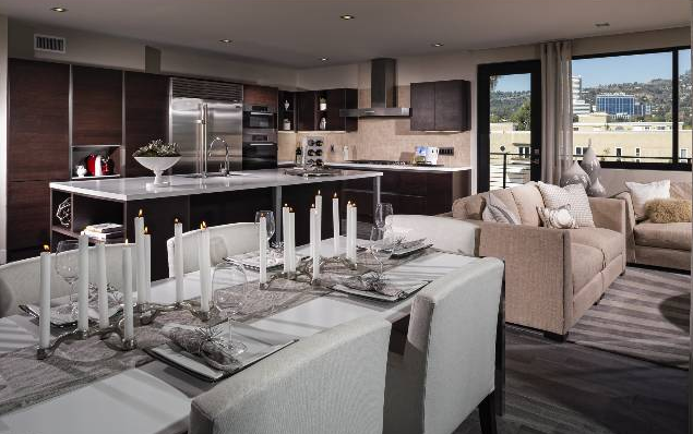 3 beds/3.5 baths. Large, expansive, furnished, exclusive rooftop deck with views of hollywood hills and century city, includes jacuzzi, landscaping, and gas bbq. Beautiful interior with italian hardwood flooring in living areas, 12 x 12" ceramic tile in baths and laundry, carpeted bedrooms. Large kitchen with expansive caesarstone island and countertops, subzero and miele stainless appliances.