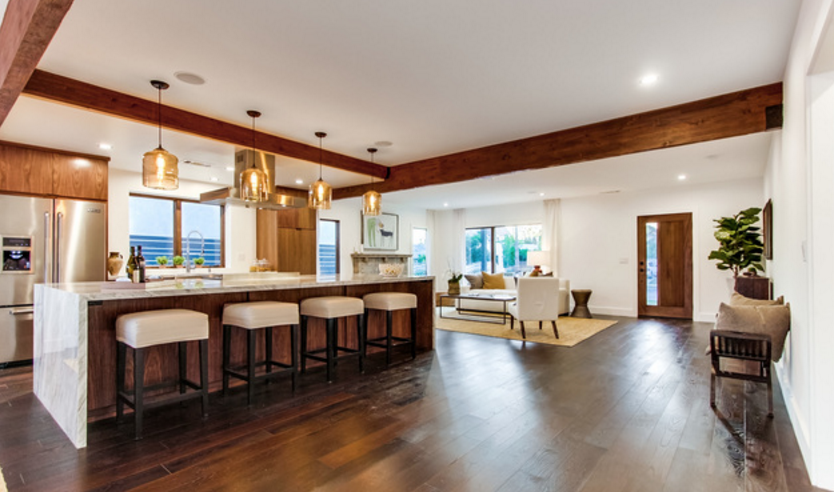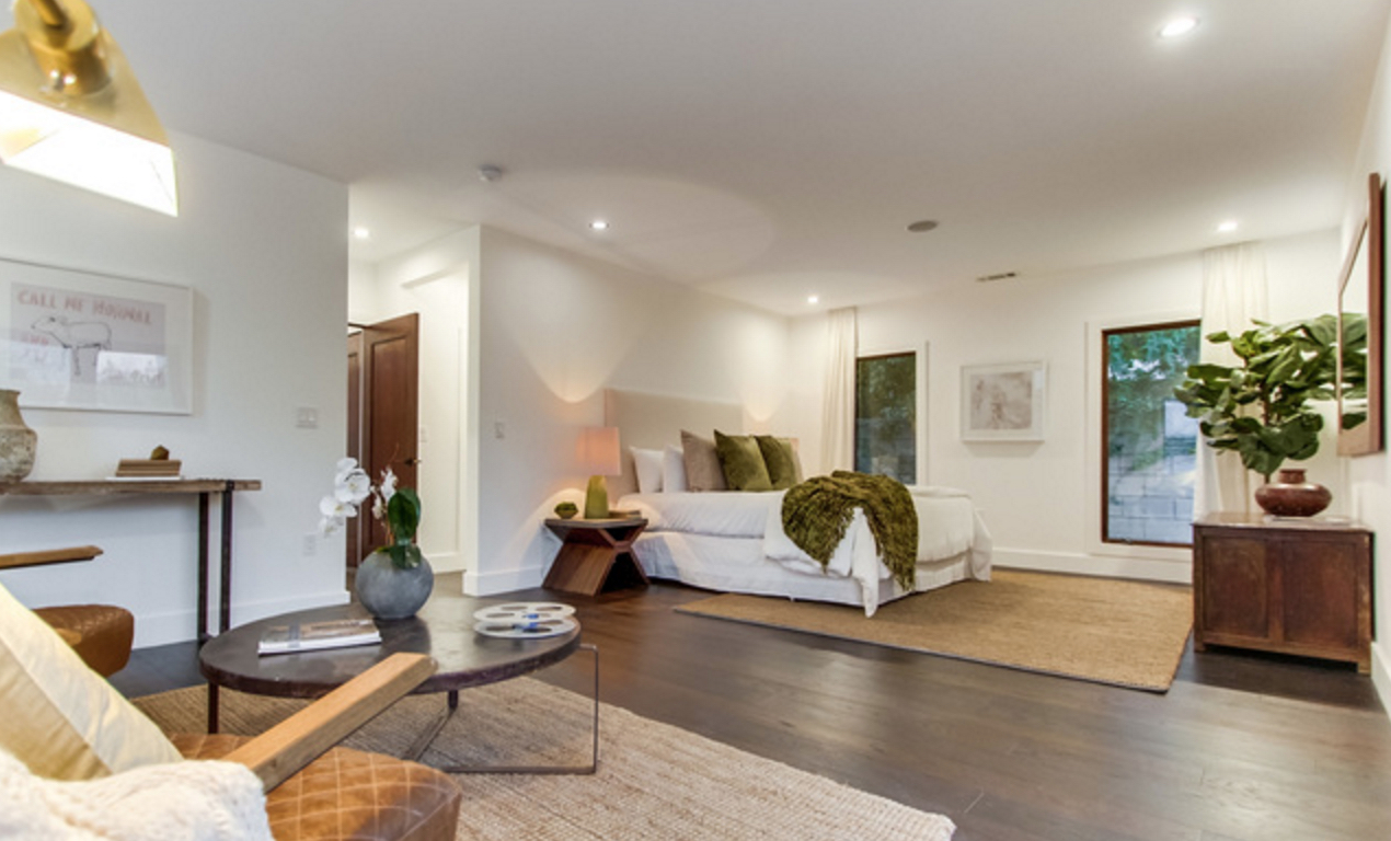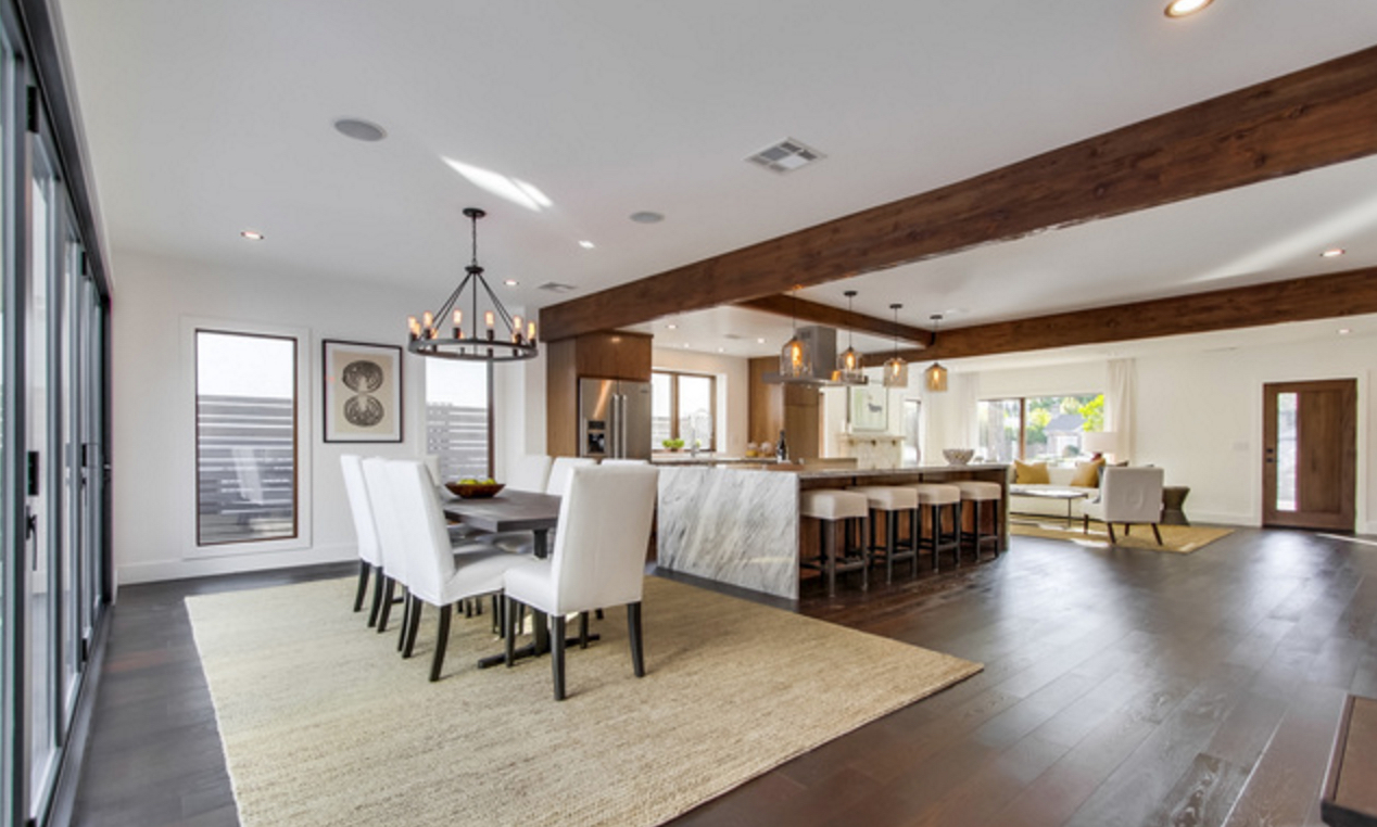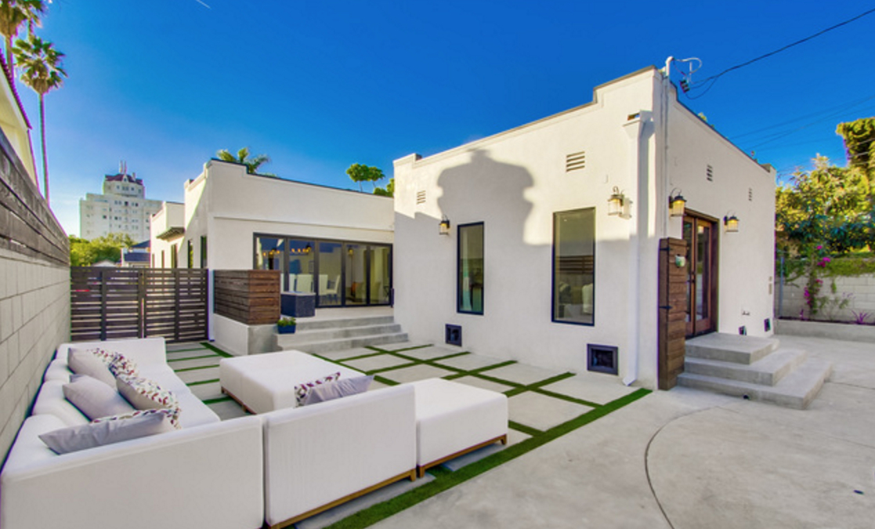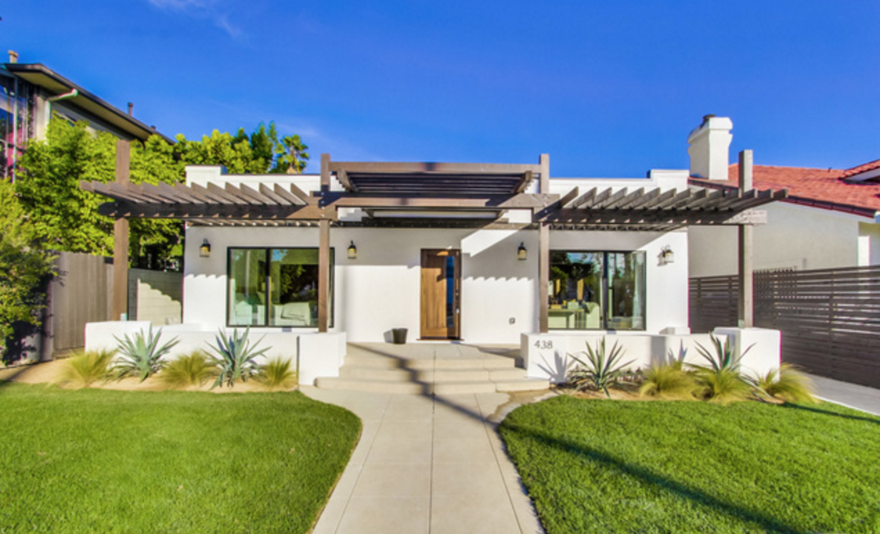 A magnificent blend of modern meets 1920's classic Spanish located in the quaint and historic Larchmont Village! This white transitional one-story home has been completely renovated with modern amenities that exude an elegant and romantic ambiance. The home opens to an original Batchelder tile fireplace, an abundance of natural sunlight, stark white walls, dark tone wood floors, wide-open spaces, exposed beamed ceilings, mahogany finish solid doors. The open concept state-of-the art kitchen has walnut tone flat-panel cabinets, a stunning centerpiece island with Nuvolato Carrara marble waterfall countertop, pendant lighting, stainless steel appliances. The bathroom designs include vessel sinks, classic tile flooring, freestanding tub, open shower, stunning fixtures. The LaCantina folding doors open to the modern courtyard landscape, gorgeous black bottom pool, and expansive patio area that creates the ideal indoor/outdoor California lifestyle. Enjoy the charm of Larchmont!