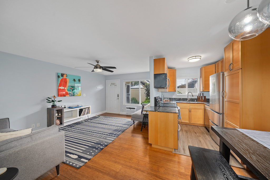 Welcome home to the epitome of urban living in the heart of North Park! This rarely available, meticulously designed ground floor unit, nestled within a secure gated community, boasts the perfect blend of contemporary style and convenience. Step inside to discover the allure of newer hardwood floors, open-concept living immersed in natural light, granite countertops, newer stainless steel appliances, and IN-UNIT washer and dryer for the upmost convenience. This home blends form and function with the versatile flex bedroom space; whether you envision it as a home office, nursery, additional closet, or even a personal gym, the possibilities are limited only by your imagination. Embrace the appeal of the LOW HOA fees, allowing you to enjoy all the perks of a well-maintained community without breaking the bank. Situated in the trendy and highly sought-after neighborhood of North Park, this home offers unparalleled access to the area's best restaurants, cafes, bars, gyms, parks, and shops. Embrace the North Park lifestyle, where every amenity and entertainment option is just a stroll away, and quick access to the freeways! VA APPROVED! Lenient pet restrictions! A designated parking space is included and additional street parking is available! This is the BEST deal in North Park! New roof installed December 29, 2021.