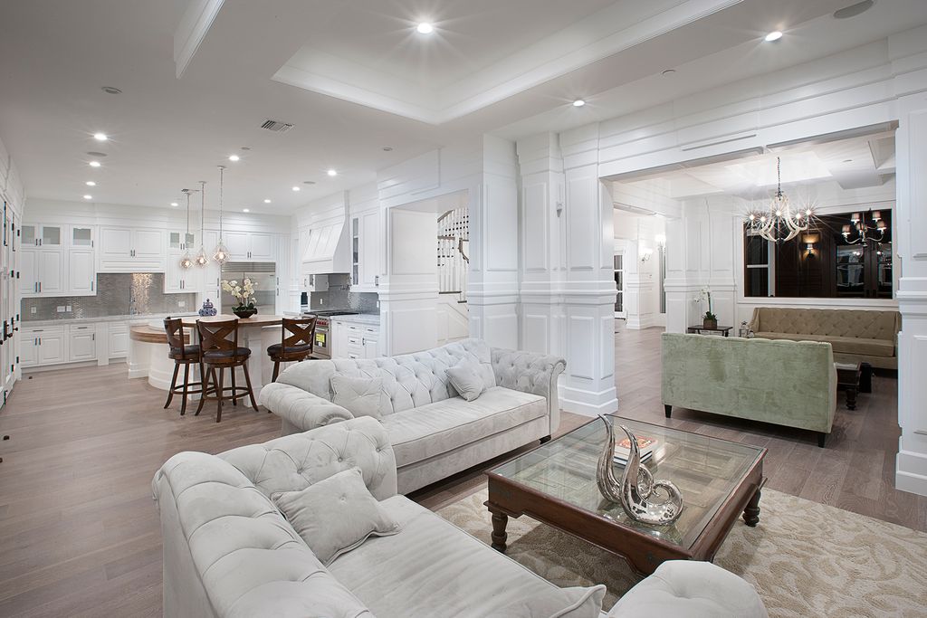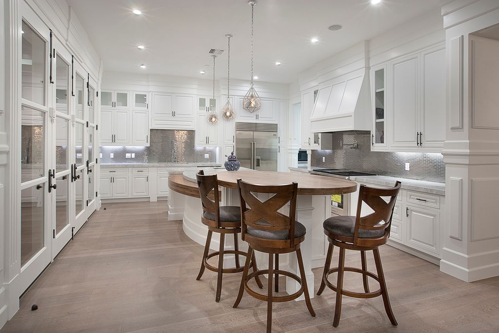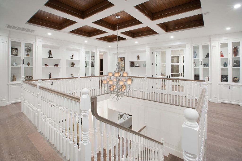 Chic architectural, craftsmanship and design features create a stylistic yet warm environment. It flawlessly transitions between cape cod & contemporary styles, catering to quintessential indoor/outdoor southern California living. Luminous Open Floor Plan with 11 feet high ceilings , Massive Architectural 9 feet French doors and impressive windows, presents seamless In Door/Outdoor Flow. Gorgeous Expansive Chef's Kitchen with Wolf/SubZero/Bosch Appliances, Impressive carrera marble Island, Custom Cabinetry and Walk-in Pantry . Romantic master suit has fireplace and balcony, added bonus sitting area, and two master bathrooms with large double closets.