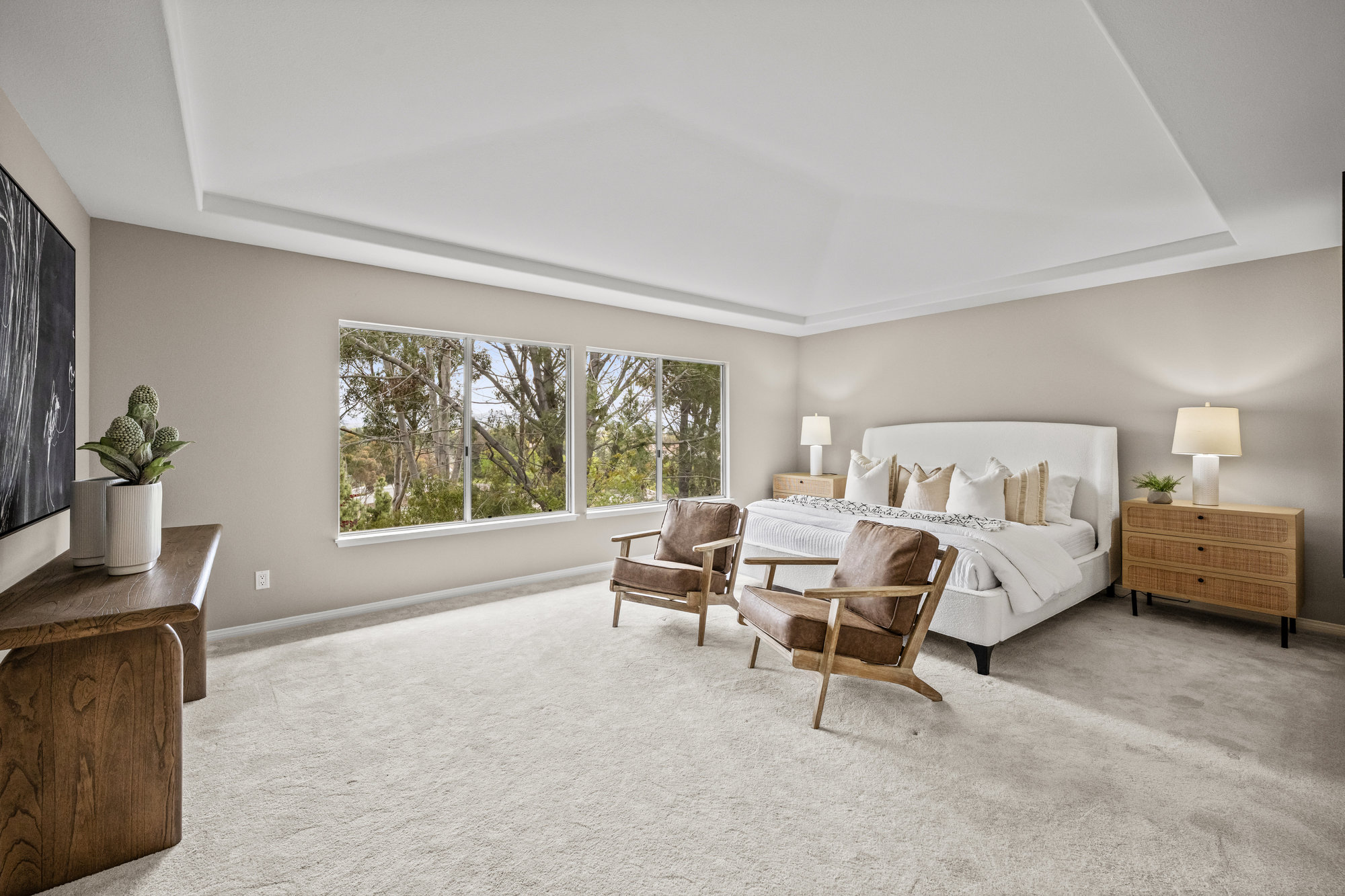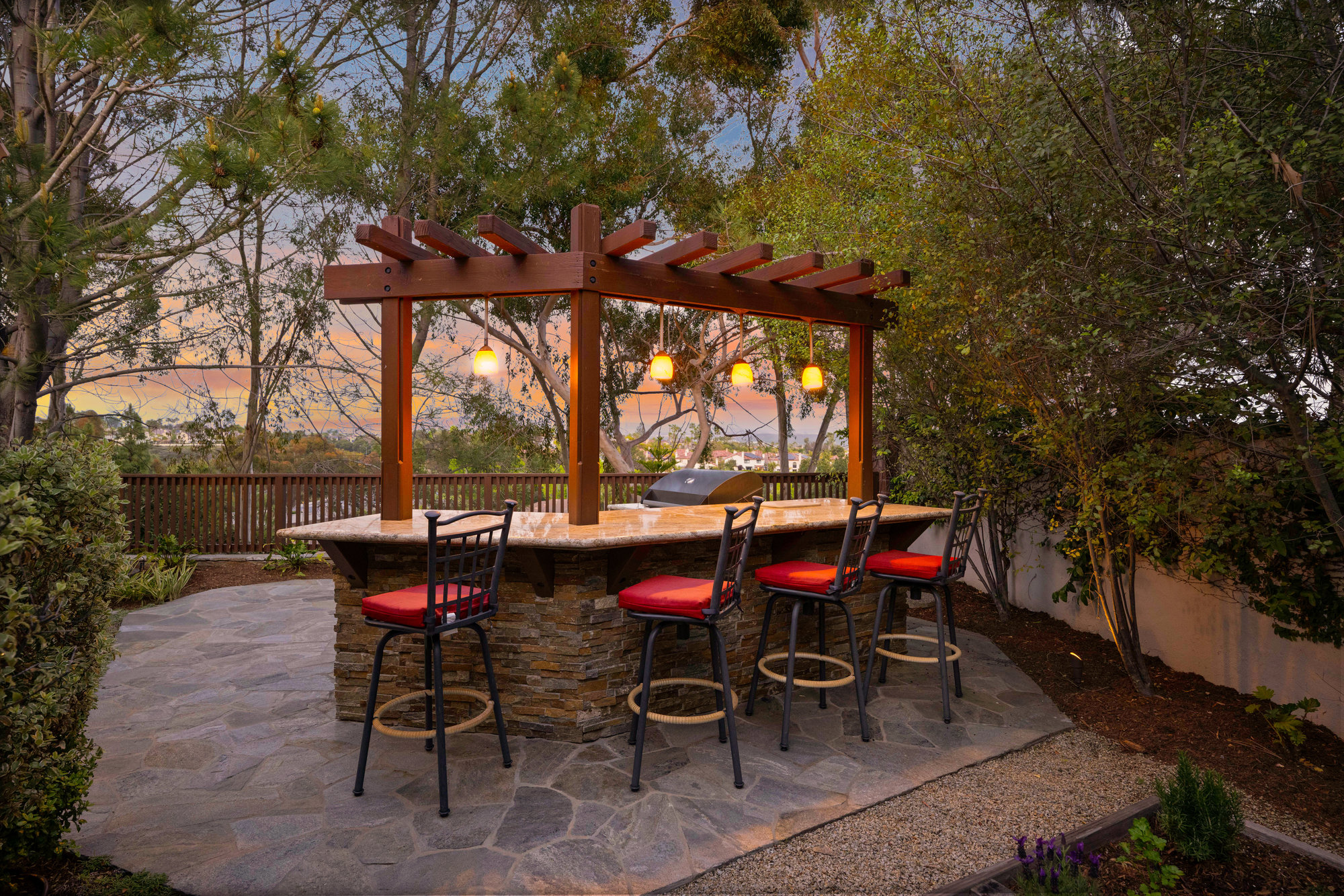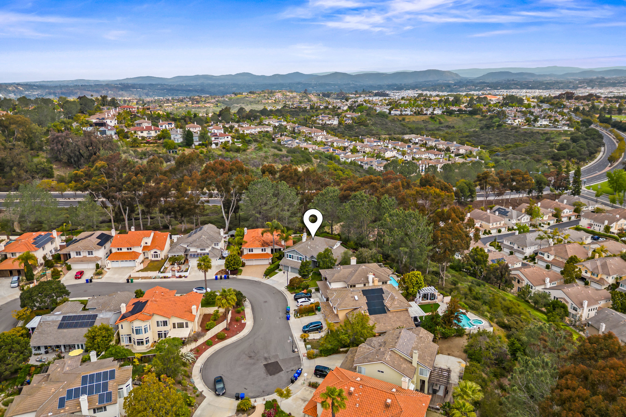 Tucked away on a peaceful cul-de-sac, this exceptional 5-bedroom, 3-bathroom home spans 3,273 square feet of thoughtfully designed living space, perfectly balancing comfort and sophistication. Situated in one of Carmel Valley’s most coveted locations, this elevated lot offers stunning territorial views and a serene backdrop that enhances daily living. Every detail of this home has been crafted with care, from the refined finishes to the seamless flow between spaces. The chef’s kitchen stands out with quality cabinets, granite countertops, and premium stainless steel appliances, creating an ideal spot for whipping up meals or hosting gatherings. The outdoor space is equally impressive, featuring a built-in BBQ, expansive entertaining bar-top, a charming gazebo and fully fenced yard. For gardening enthusiasts, the raised garden beds are perfect for cultivating your own fresh produce or flowers, while the tranquil fountains provide an extra touch of relaxation. Upstairs, the lavish primary retreat is a true sanctuary, complete with two closets, a cozy lounge area, a built-in workstation, and a warm fireplace. The spa-like ensuite ensures every day starts and ends in luxury. A versatile main-level bedroom and bath offer privacy and convenience for guests or multi-generational living. Ideally located just minutes from top-rated Torrey Pines High School, One Paseo, and nearby parks and trails, this home offers the best of both peaceful living and easy access to amenities. Don’t miss this rare opportunity to own a home in one of Carmel Valley’s most desirable neighborhoods.