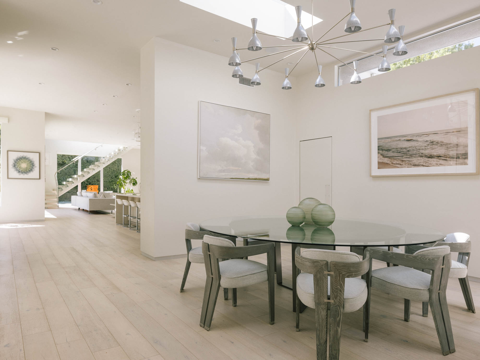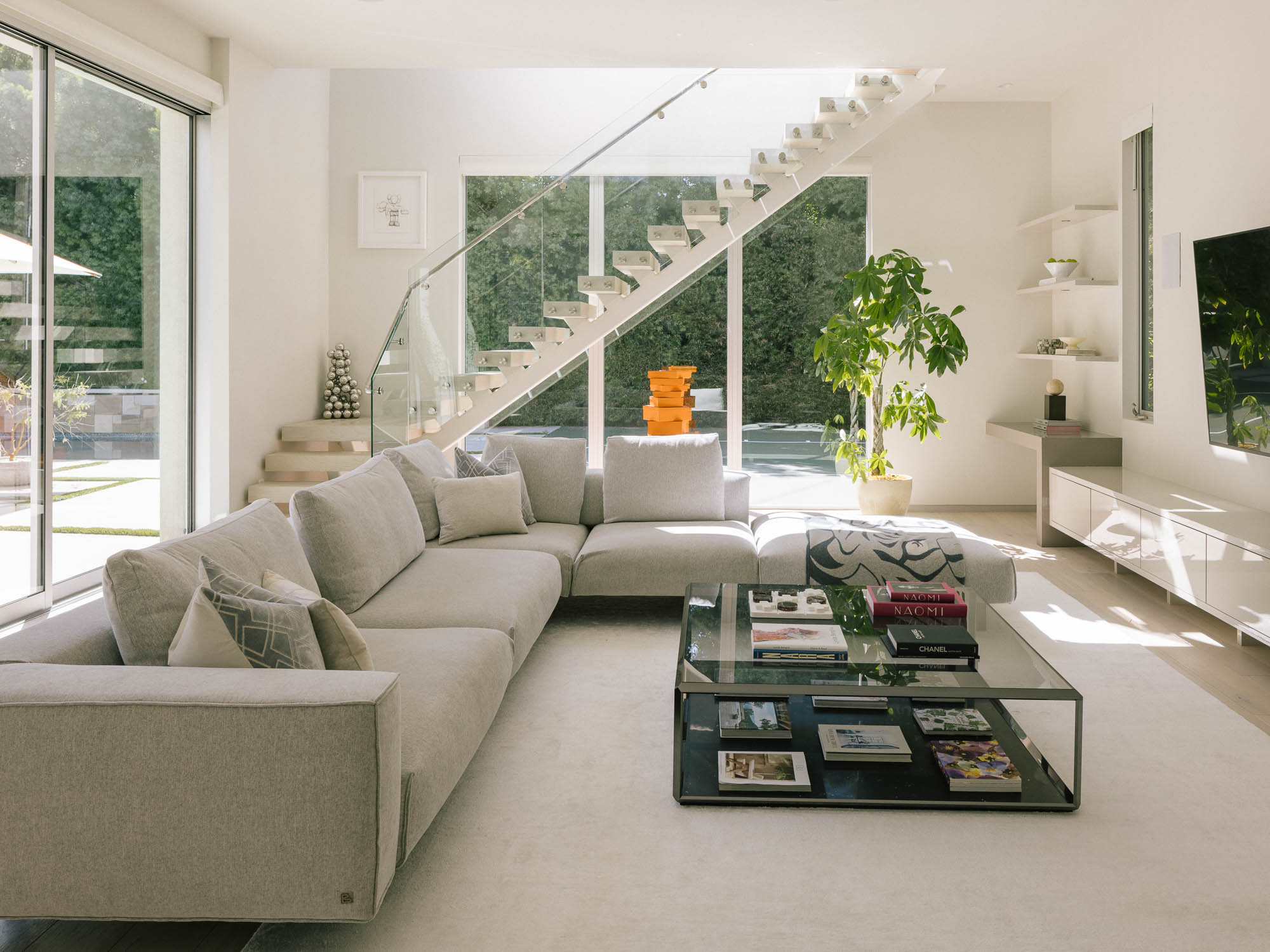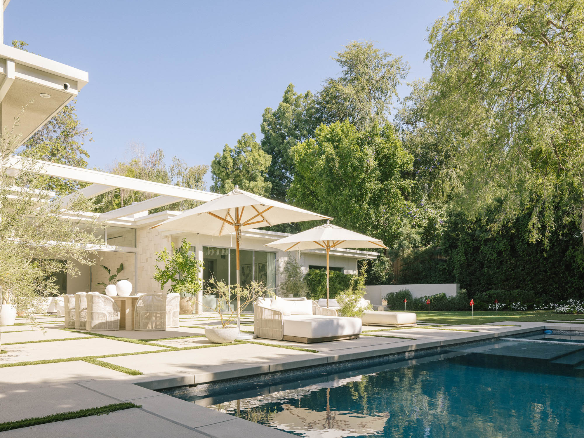 The most brilliantly designed and exquisitely crafted mid-century modern home that offers ultimate privacy and elegance. Settled on an impressive half acre lot behind a gated driveway, this Encino residence exemplifies the perfect harmony of indoor and outdoor living. Behind the grand door, you'll find high ceilings with sublime natural light, and a spacious living room adorned with a gorgeous fireplace and an adjacent formal dining room, both with 10 ft glass pocket doors that effortlessly extend out to the expansive backyard haven, complete with a large patio space, pool, outdoor grill and kitchen, firepit with surrounding bench seating, basketball court, and a sprawling green grass area. The chef's kitchen is equipped with an expansive island, top-of-the-line appliances, full backsplash, a walk-in pantry, and more. The luxurious owner's suite is conveniently located on the first floor, boasting a lavish bathroom and 10 ft pocket doors that also open out to the stunning backyard. The primary bath is dressed with dual sinks, an impressive makeup vanity, a designer extra-large soaking tub, and bespoke wardrobe doors. The main level is complete with four additional ensuite bedrooms and a bonus office room with surrounding glass walls. Ascending to the upper level, you will discover an inviting gym equipped with Infrared Sauna and Steam Shower for an indulgent wellness experience. This smart home is an entertainer's dream! A true oasis coupled with a rare amount of flat yard makes this estate fit for the most discerning occupant in one of the most coveted neighborhoods.