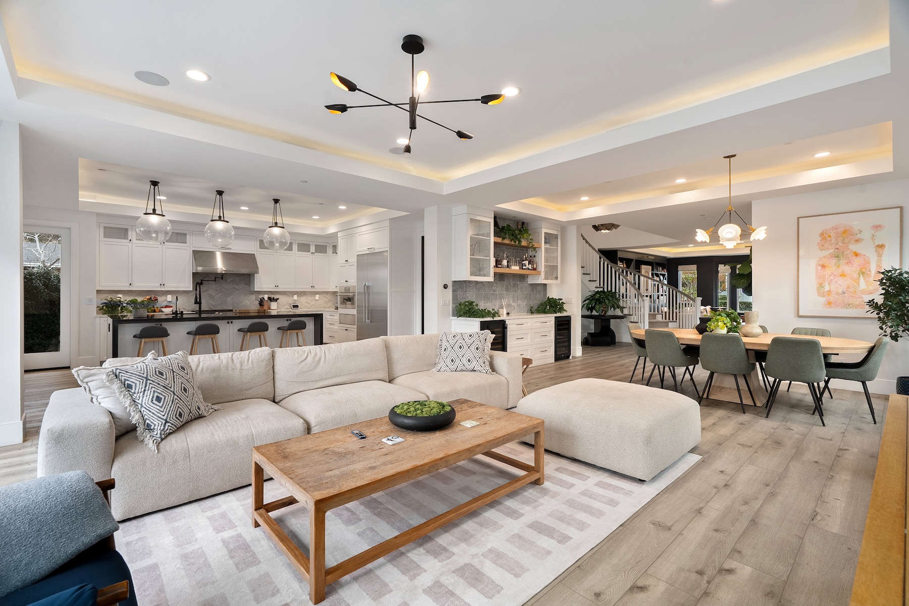 Welcome to 515 Tustin Avenue, a stunning turnkey residence in the highly sought-after Newport Heights neighborhood of Newport Beach. This exceptional home is a showcase of modern luxury, seamlessly blending style, comfort, and practicality. Step through the charming Dutch front door and experience a home where every detail has been thoughtfully curated. Custom window treatments complement expansive sliding doors, creating a seamless connection between indoor and outdoor spaces. The backyard is an entertainer’s dream, featuring a built-in barbecue perfect for hosting gatherings in a picturesque setting. A detached ADU offers incredible versatility—ideal for hosting guests, generating rental income, or serving as a private home office. The three-car garage is equipped with an EV charger hookup, and a high-efficiency split AC system ensures year-round comfort across both levels of the home. The gourmet kitchen is a chef’s delight, boasting a six-burner stovetop, premium Thermador appliances, a warming drawer, a walk-in pantry, and ample storage. A cozy breakfast nook offers the perfect spot for casual dining, while a Kangen alkaline water machine adds an extra touch of luxury. With six spacious bedrooms, each with its own en-suite bathroom, this home is designed to accommodate both family and guests with ease. The primary suite is a private retreat, complete with a steam shower, a luxurious soaking tub, a walk-in closet with custom built-ins, and a private balcony to enjoy the coastal breeze. A double vanity and separate counter space provide the perfect setup for daily routines. High ceilings, luxury vinyl flooring, and elegant finishes elevate the home’s interior, while its location within the esteemed Newport-Mesa School District ensures access to top-rated schools. Plus, with the furniture negotiable in the sale, moving into this exquisite Newport Heights home has never been easier. Experience the best of coastal living at 515 Tustin Avenue—where impeccable design, prime location, and modern convenience come together in perfect harmony.