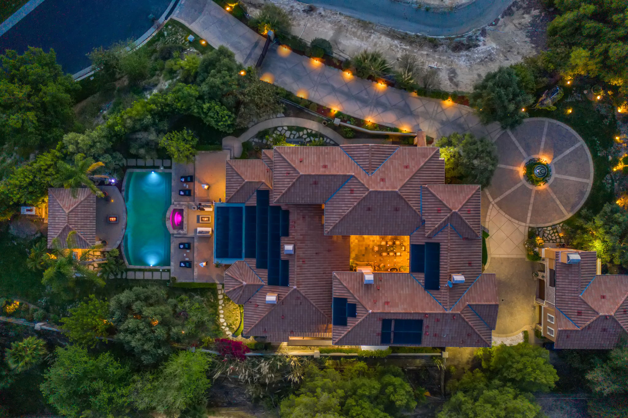 Located in the private and highly exclusive Mureau Estates gated community of Calabasas, this sprawling 3-acre celebrity-owned compound sits past a private gated driveway and large motor court. The main house offers massive scale with floor-to-ceiling windows, and a beautiful outdoor courtyard perfect for entertaining. 5 bedrooms, 5 baths, 5 fireplaces, stone tile floors, wine cellar, theatre, built-in bar, and impressive formal dining room. The kitchen is equipped w/Sub Zero fridge/freezer, Wolf Range/Oven, dual dishwashers, chef's island, breakfast nook area, and large pantry. The large owner's suite features a sitting area, spa-like bath, steam shower, and spacious closet. Exit into a resort-style backyard with pool/spa, cabana, Viking outdoor kitchen, and brick pizza oven. The detached guest house offers a spacious living room, full bath, walk-in closet, and terrace w/fireplace. A full recording studio has been fitted with the best equipment the industry has to offer. Home systems include built-in surround sound, Sonos, Control 4, security cameras, 4-zone heating/cooling, and solar panels.