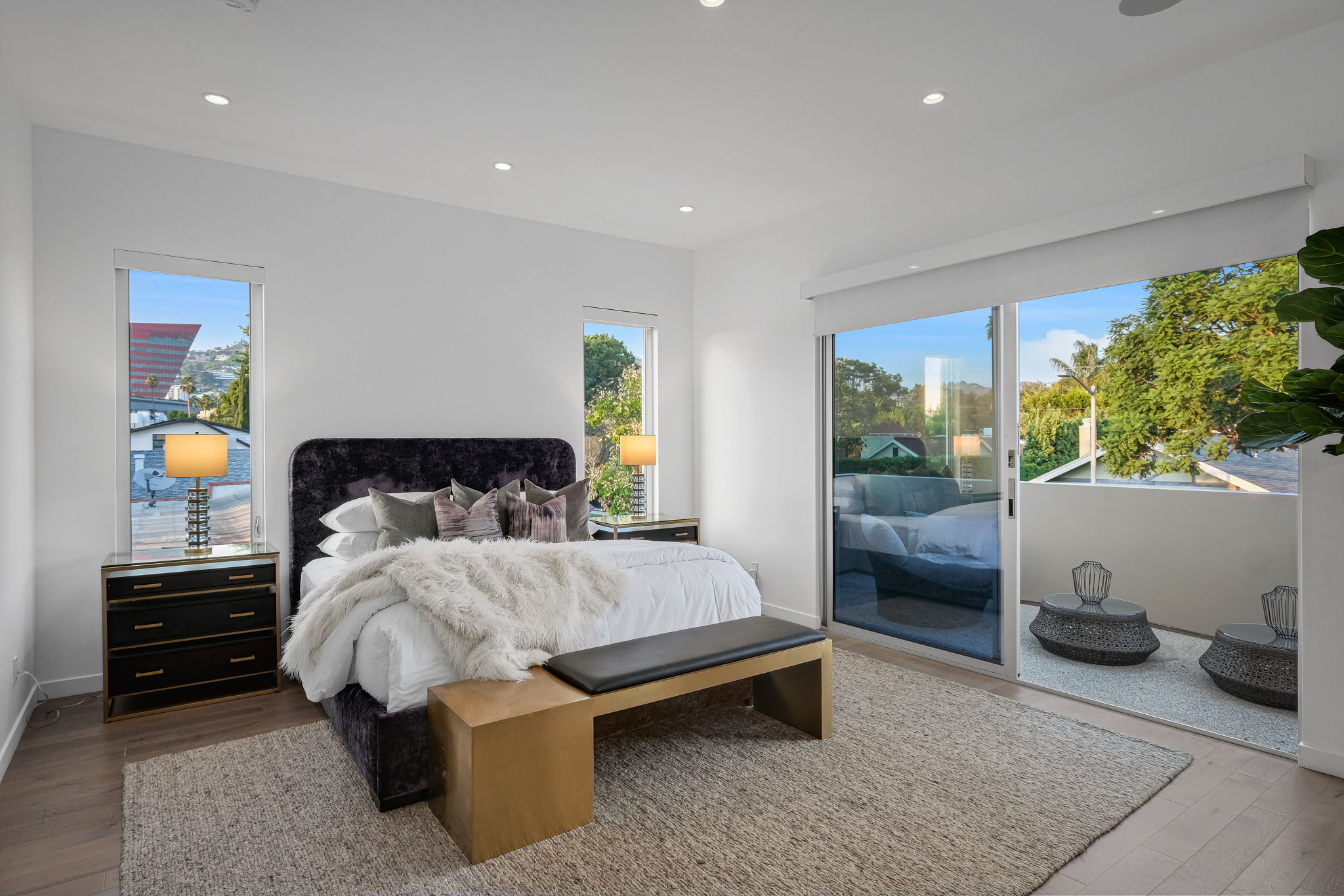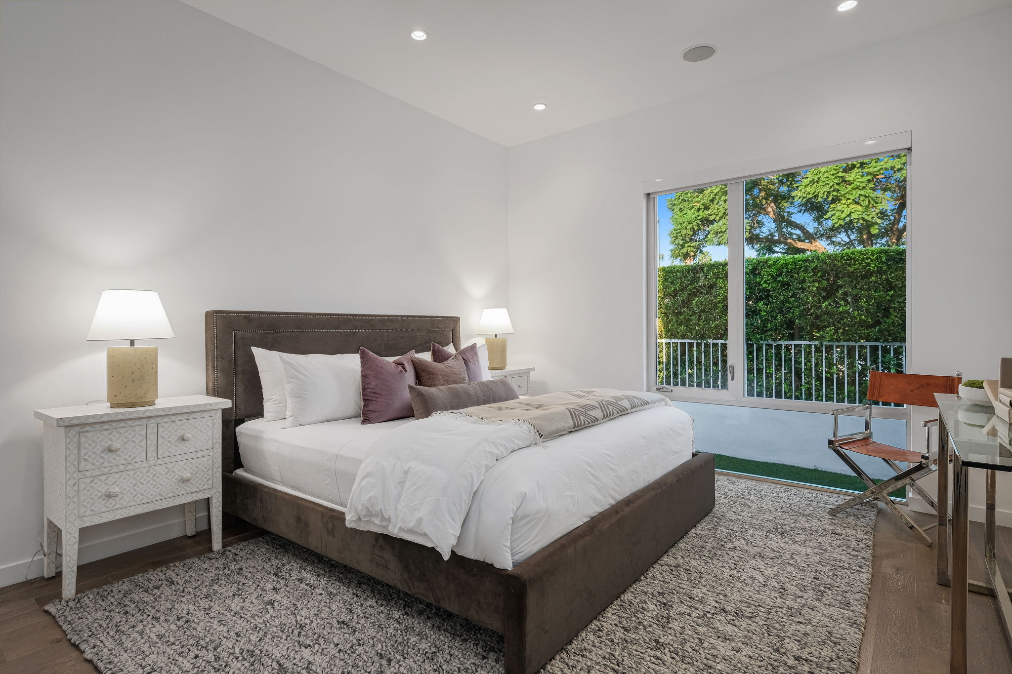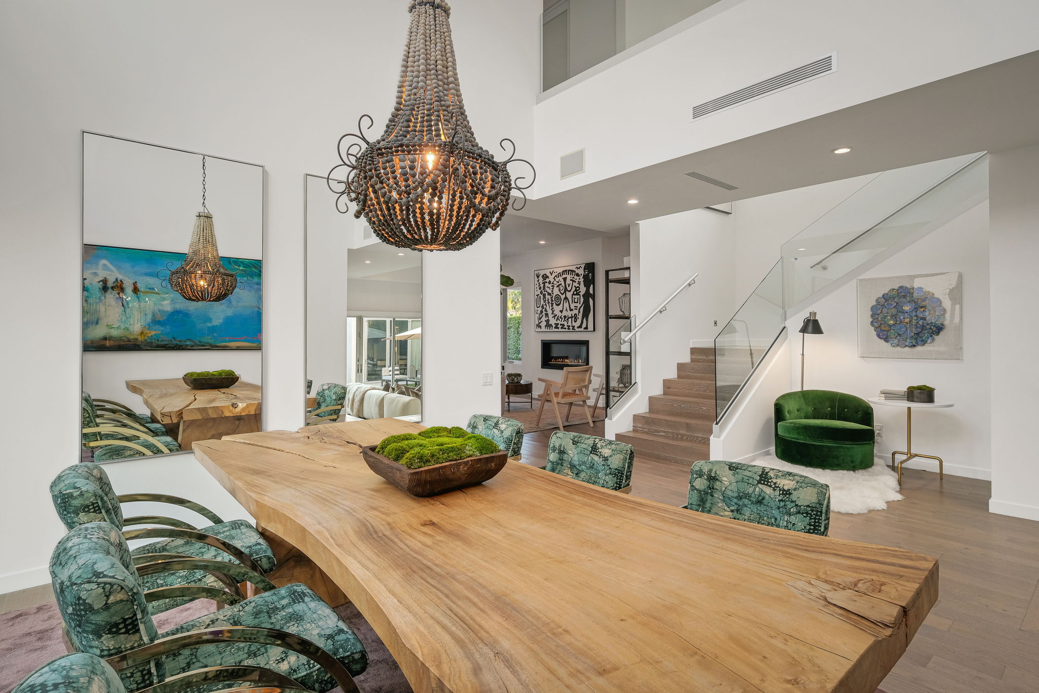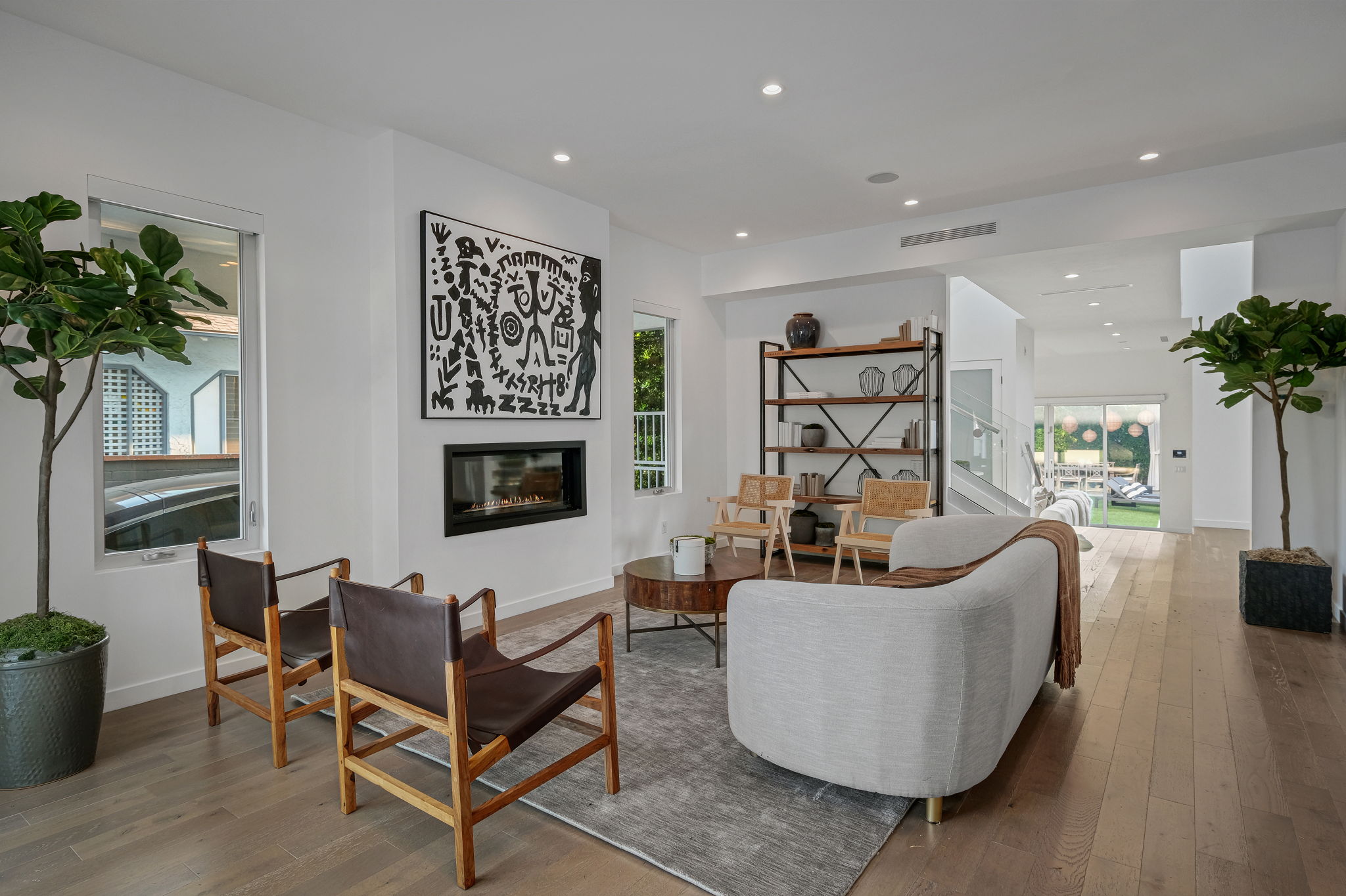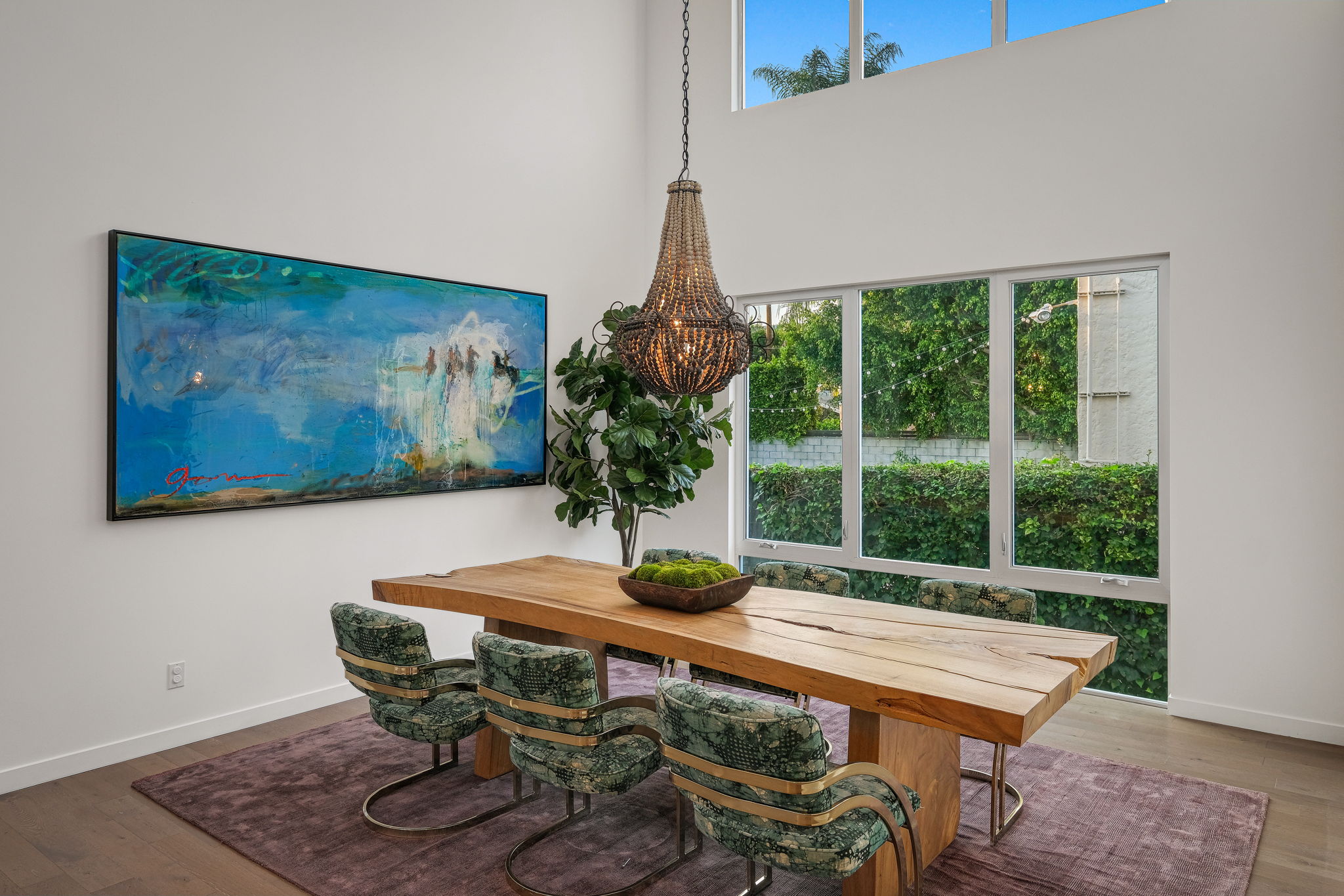 Set behind private gates, this stunning contemporary is located in the most exclusive area of West Hollywood. The welcoming living room opens up to a light-filled formal dining room with high ceilings and a beautiful modern kitchen boasting contrasting custom wood cabinetry and white Caesarstone countertops, overlooking the cozy family room. Up the stairs, the spacious owner's suite comes replete with a walk-in closet, a spa-like bath with a large soaking tub, and two balconies. The hedged and private backyard is the perfect retreat and features a pool, spa, fireplace, sitting and dining areas, as well as a separate media studio/cabana.