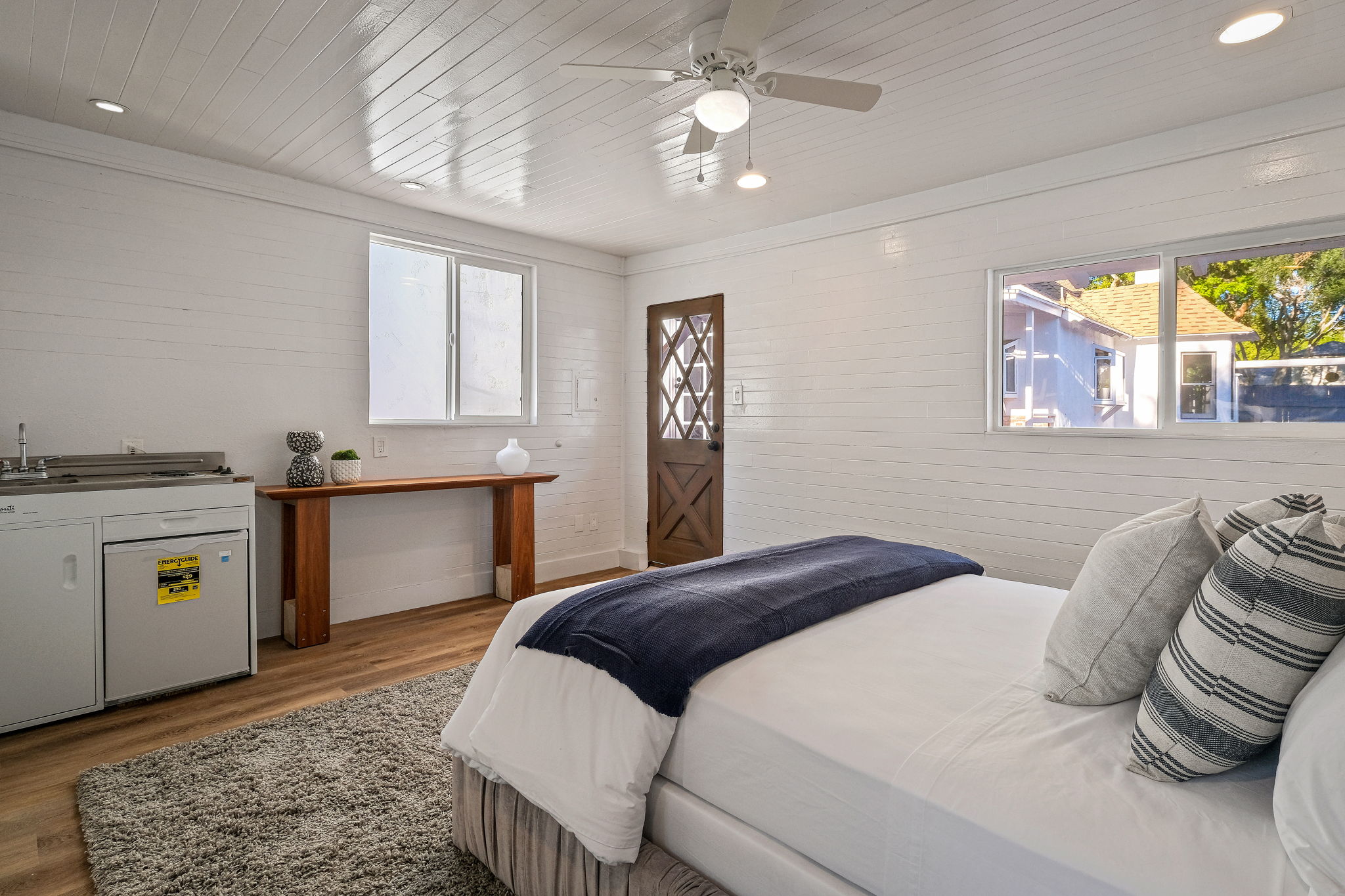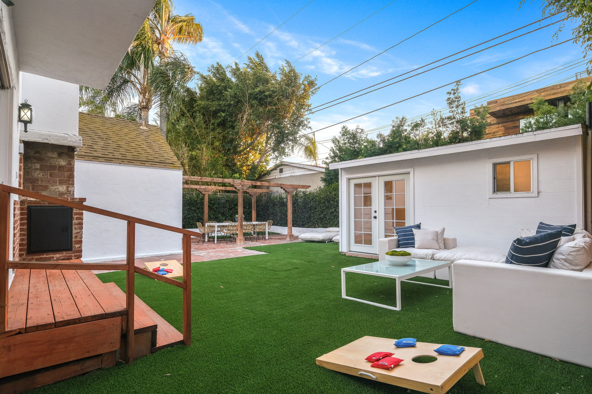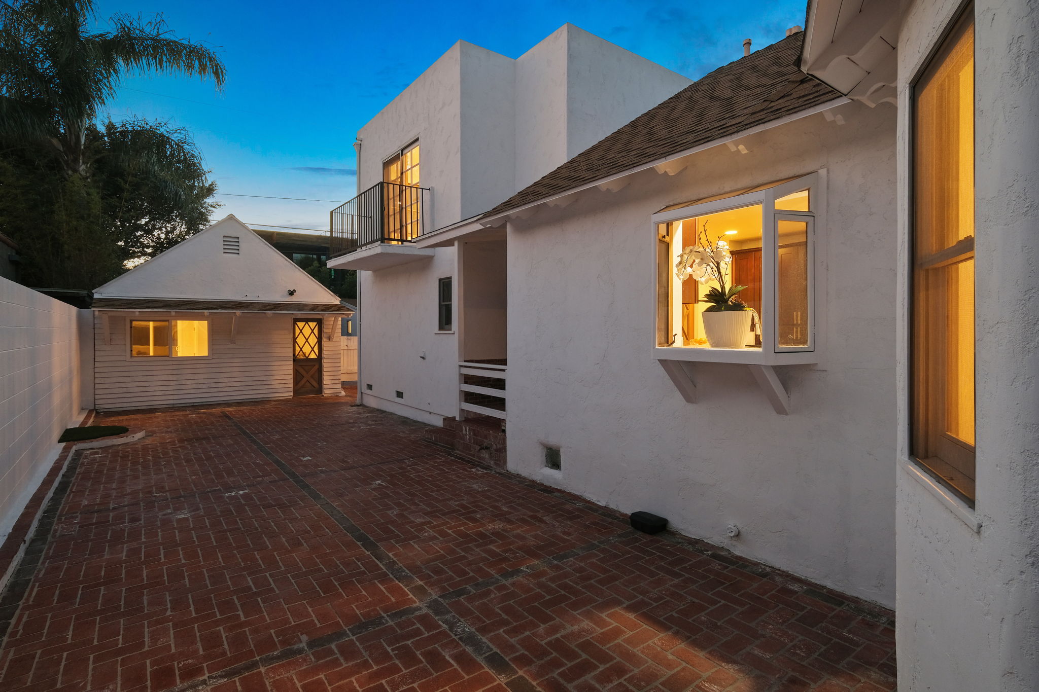 A charming and fully remodeled traditional compound with a separate guest house and separate home office/gym in the most exclusive and sought-after area of West Hollywood, just south of Melrose Ave. Enter past the grassy, privately-hedged front yard to the open living/dining rooms replete with a beautiful fireplace and wide plank hardwood floors. The updated kitchen features all new stainless steel appliances and a plethora of natural light. Four generously sized bedrooms, all with their own ensuite bathrooms and tons of closet space, complete the main house. An additional 305 sq. ft. guest house is located on the property replete with a mini-kitchenette and bathroom, perfect for a large family or additional rental income. A second separate structure measures at 192 sq. ft. and is perfect for a home office/gym. A large grassy backyard with an uncovered rear patio completes this unique retreat, just steps from the city’s most popular shops, restaurants, and nightlife including Craigs, Catch, Cecconi’s, and Urth Caffe.
