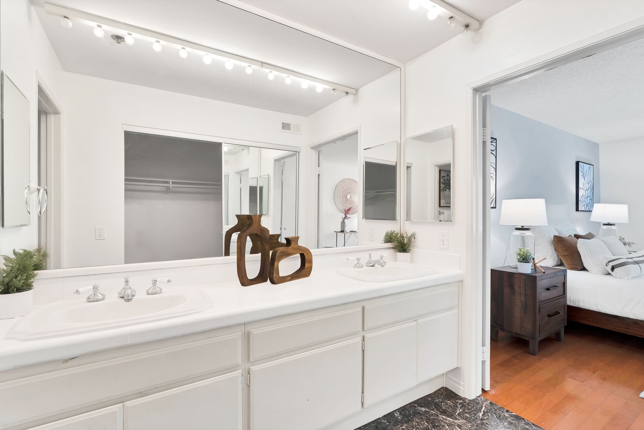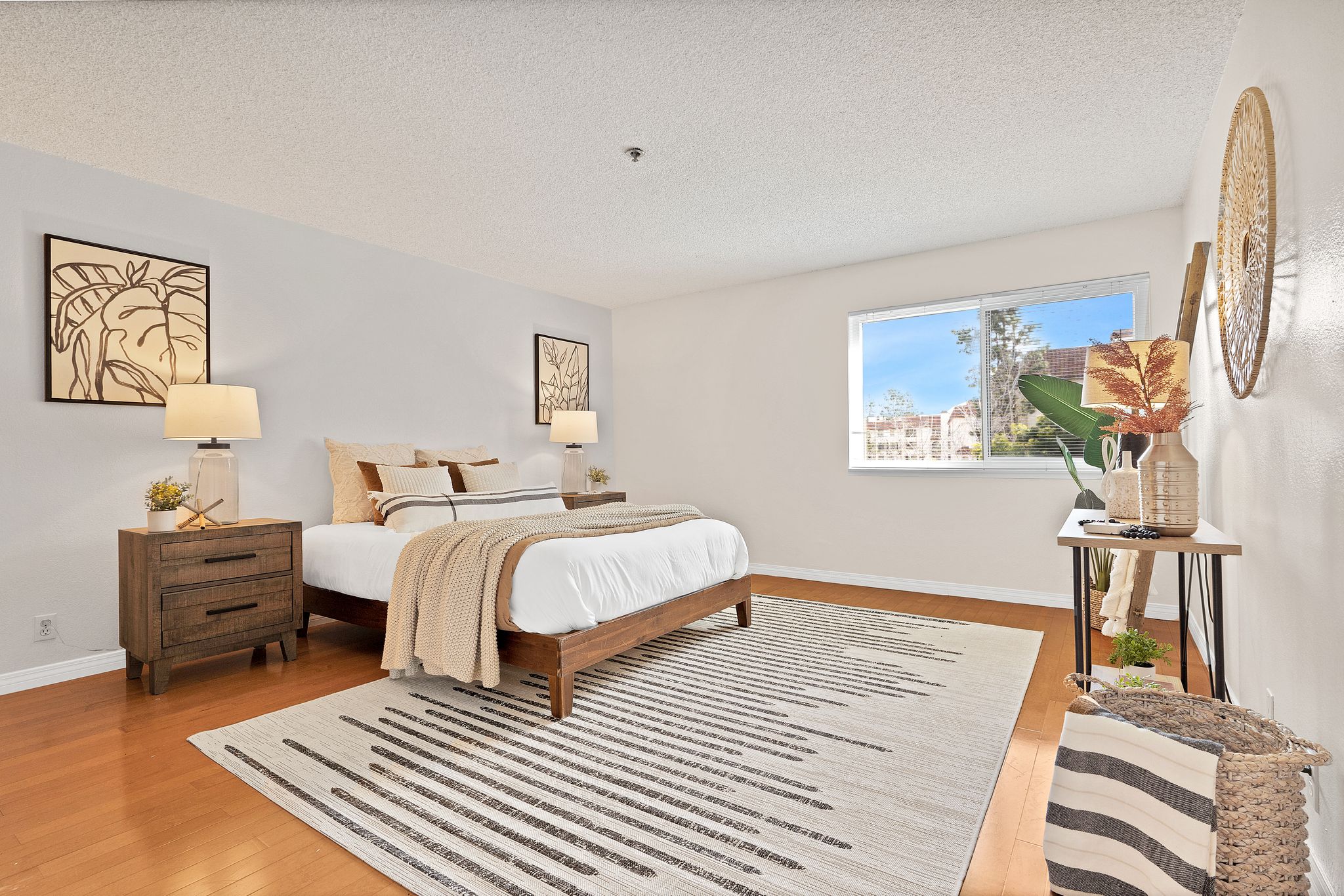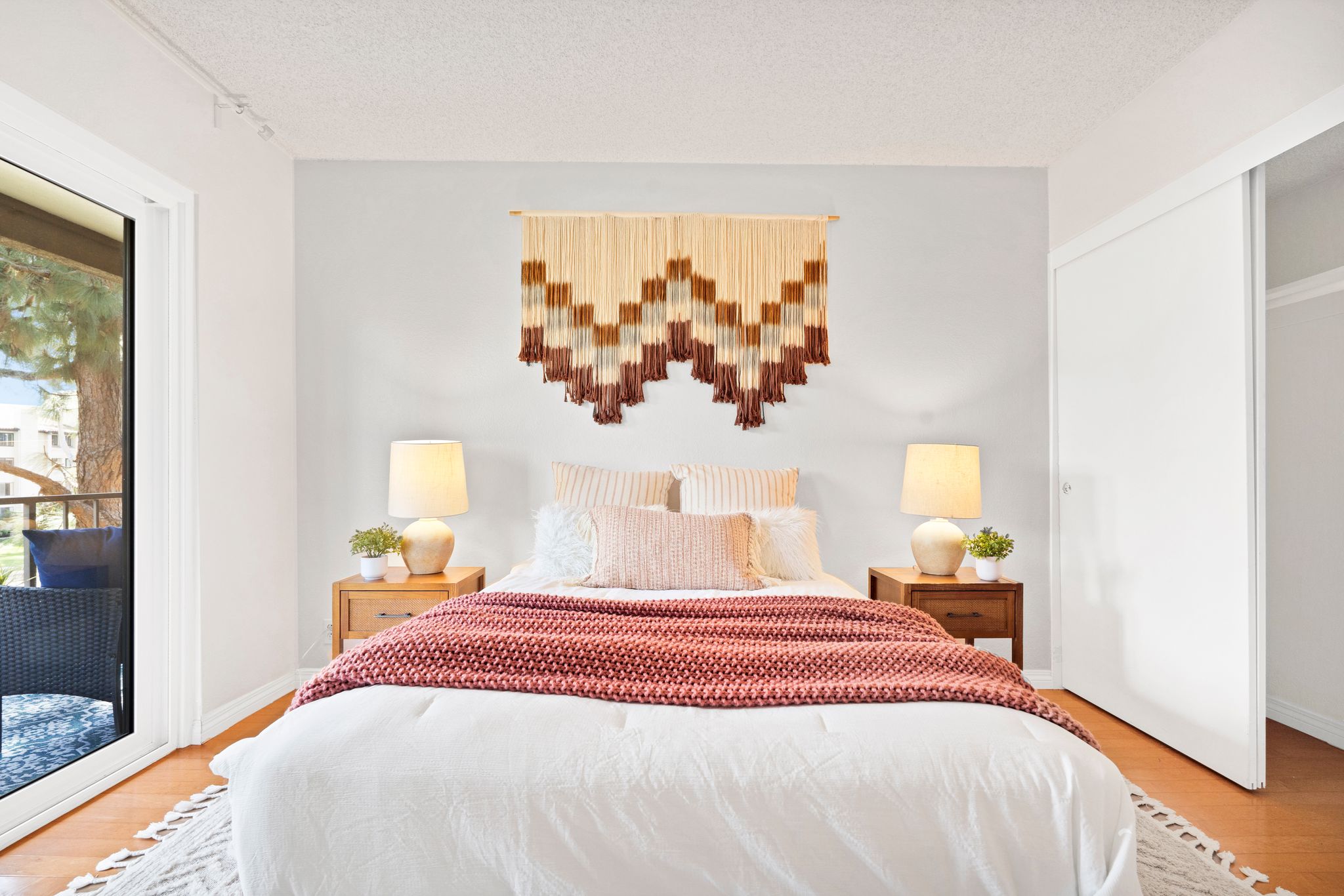 Welcome to your stunning 2-bedroom, 2-bathroom condo in the heart of San Diego! Boasting 1,200 square feet of beautifully designed living space, this home offers the perfect blend of comfort and style. As you step inside, you'll be greeted by an inviting living area, ideal for relaxing or entertaining guests. The spacious kitchen features modern appliances and ample counter space, making meal preparation a breeze. The two bedrooms are generously sized, offering plenty of room for rest and relaxation. The master bedroom includes an en-suite bathroom for added convenience. One of the highlights of this apartment is the private balcony, where you can enjoy your morning coffee or unwind after a long day while taking in the breathtaking views of the city. There are TWO secured underground parking spots assigned and there is additional parking for guests near the building. There is an elevator for easy access to your condo. Located in a highly desirable area of San Diego, this apartment is just minutes away from the bay and the beautiful San Diego beaches, as well as shops, restaurants, and entertainment options. The complex, Woodspring, offers privacy and amenities such as a pool. Don't miss this opportunity to make this incredible apartment your new home!