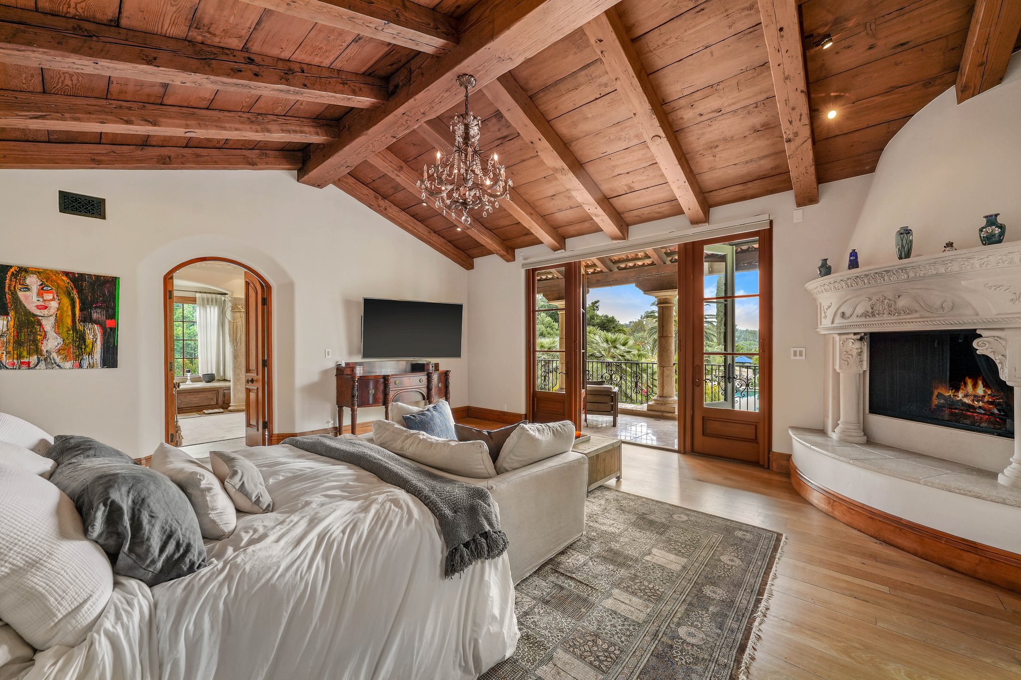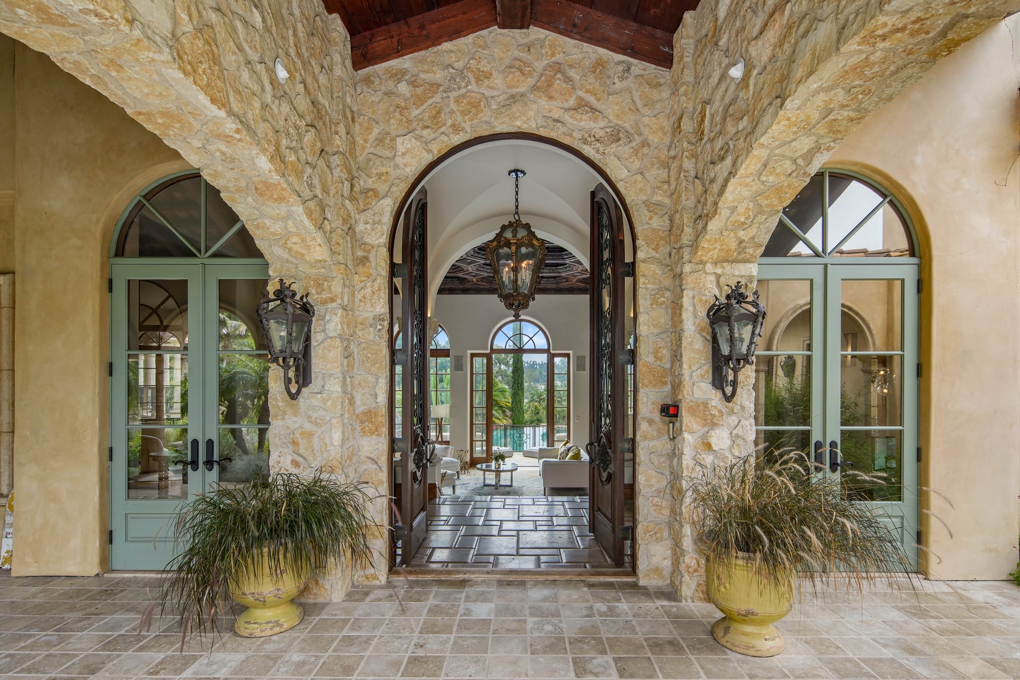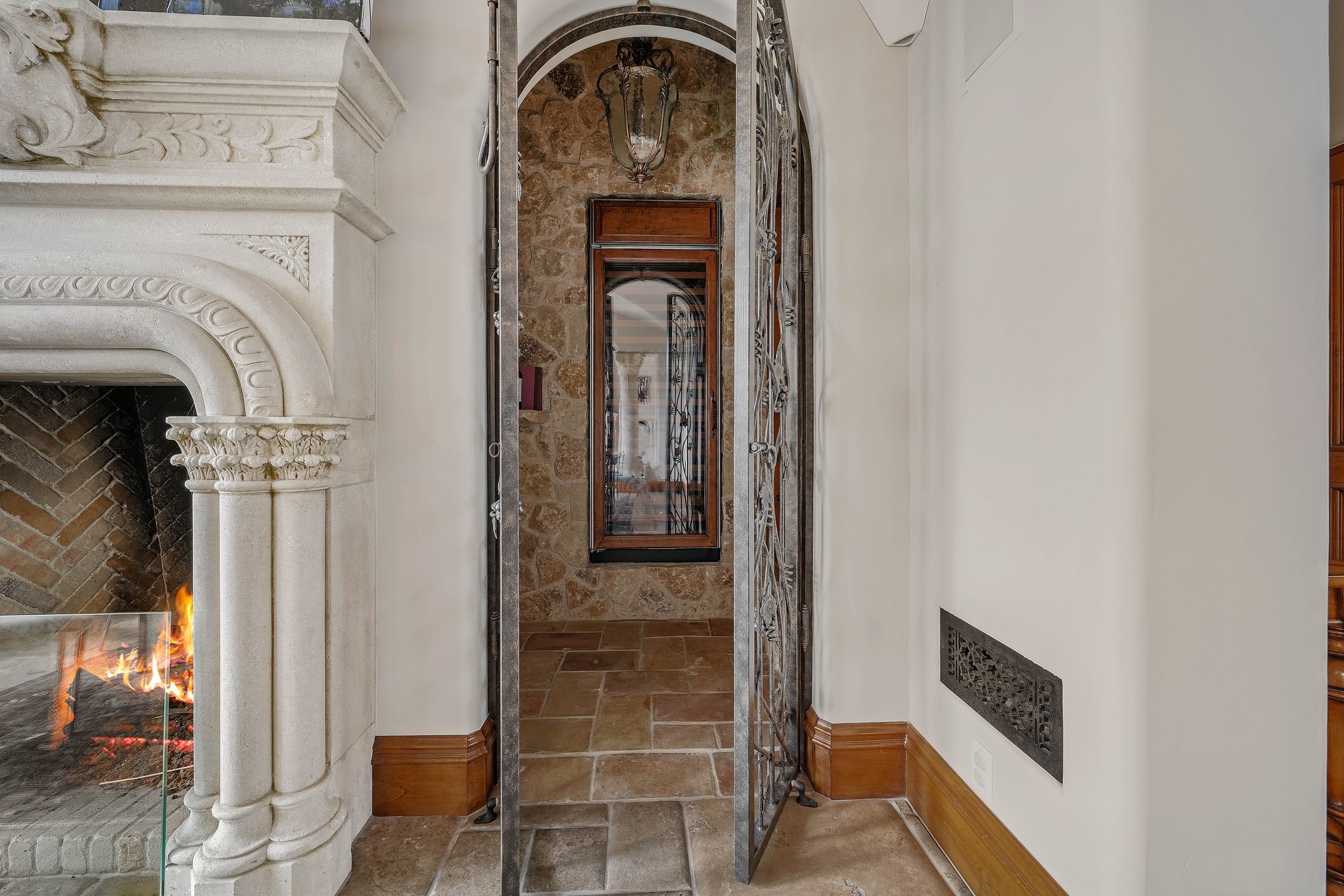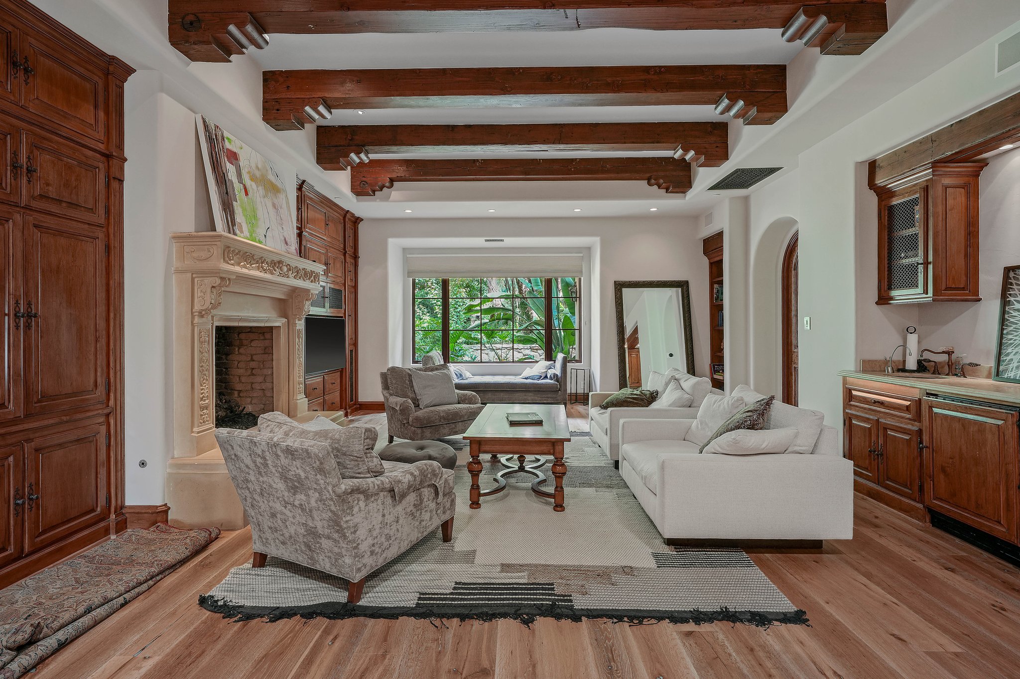 Elegance abounds in the formal spaces of living and dining rooms, each featuring majestic stone fireplaces. This meticulously detailed haven offers 5 generous bedrooms, 7 full and 4 half baths. The detached library just a few steps from the main house boasts 360-degree wood shelves, wood floors and is easily convertible to a 2-bed in-law suite. Thoughtful details include reclaimed wood beams, vintage flooring, antique heated tiles, travertine and granite slabs, and artisan stone work. Custom furniture-grade cabinetry, hand-wrought iron fixtures, and stone fireplaces further enhance the opulent tapestry.