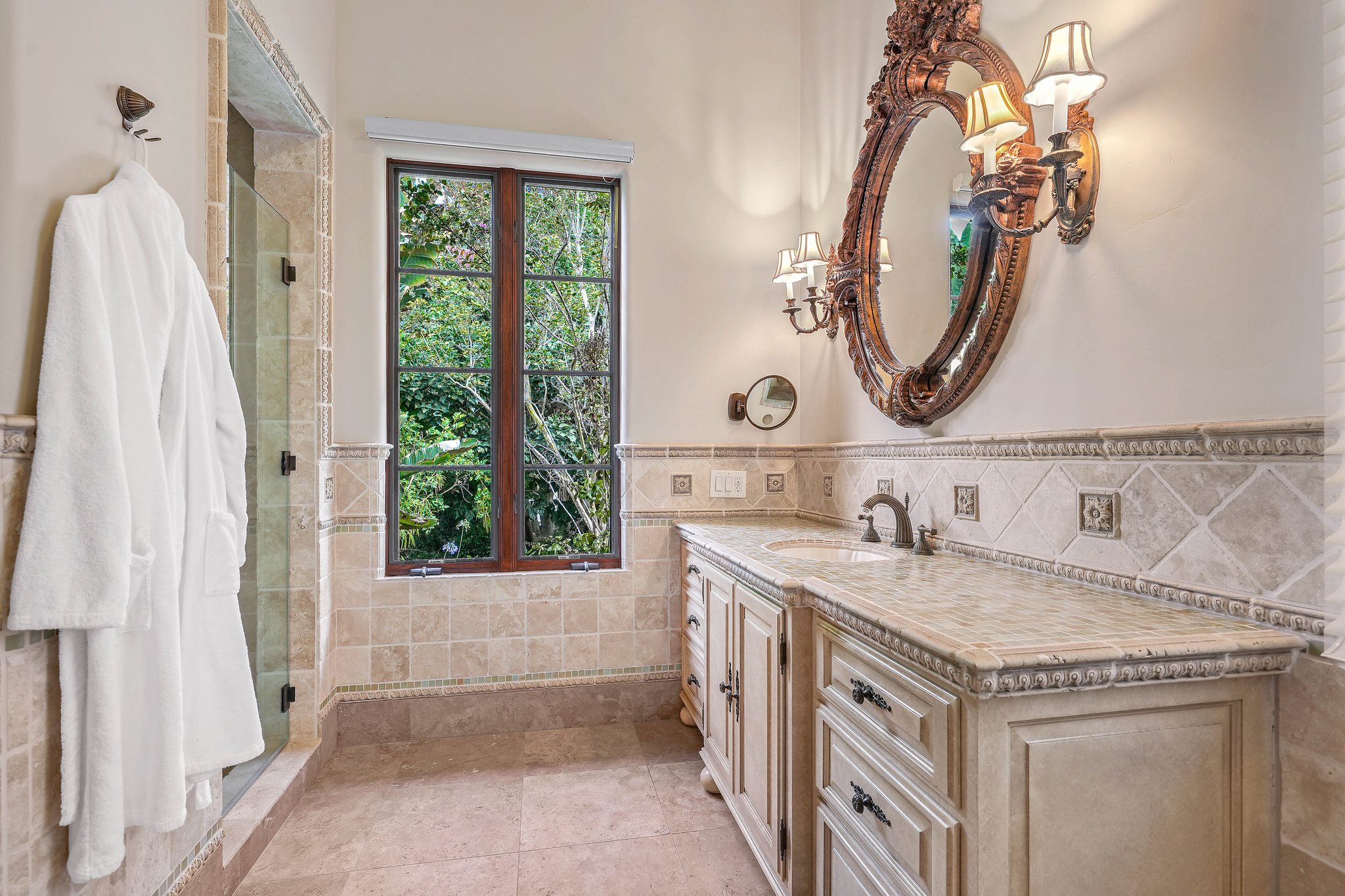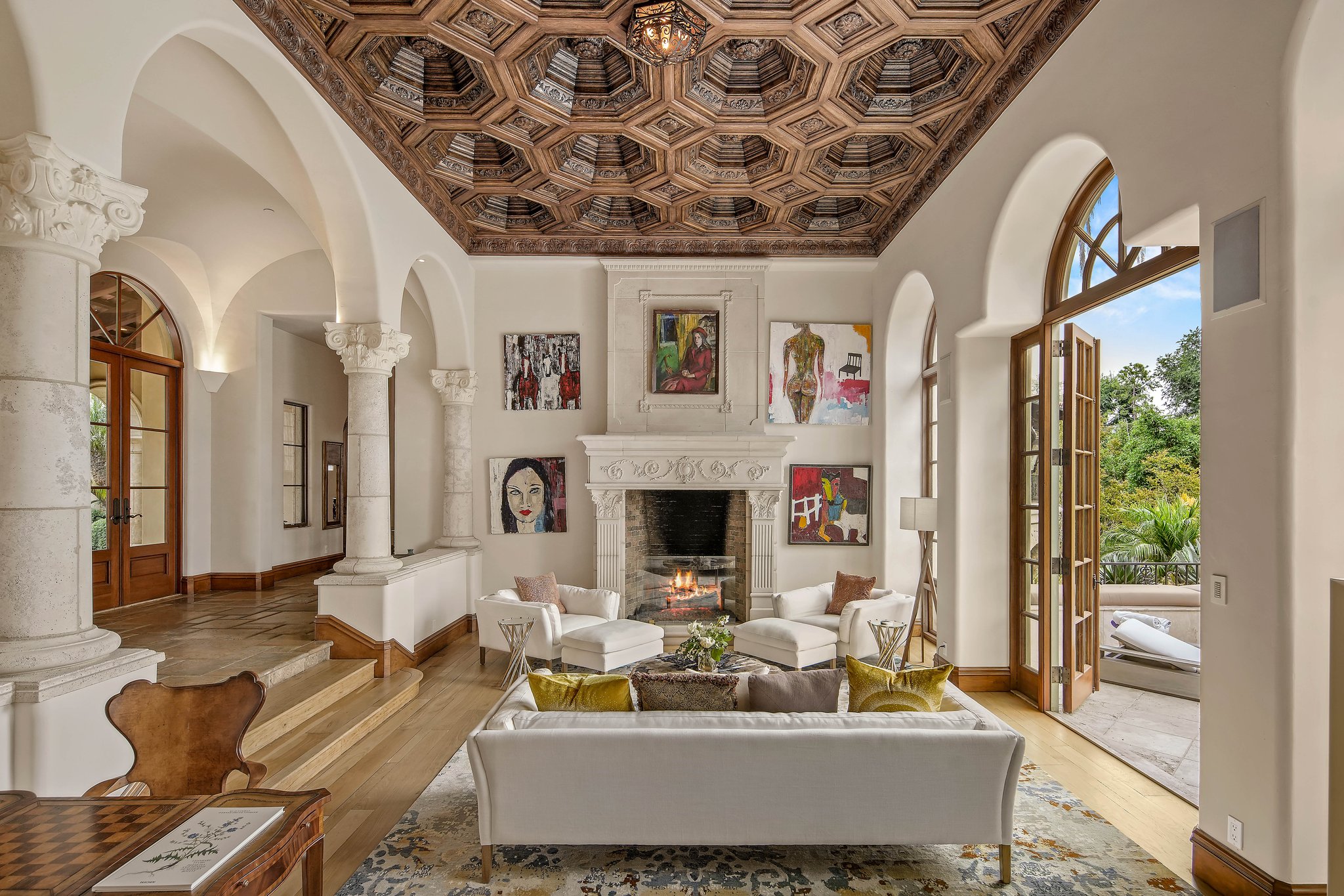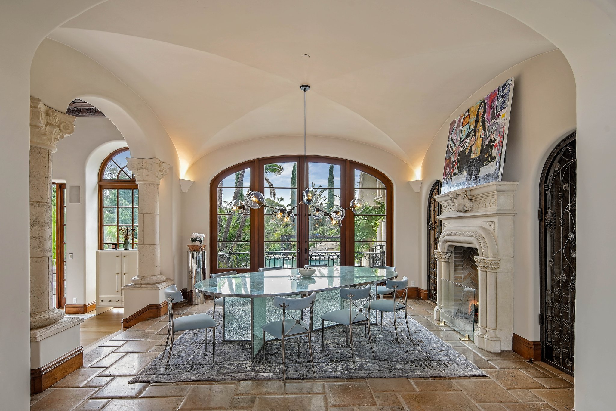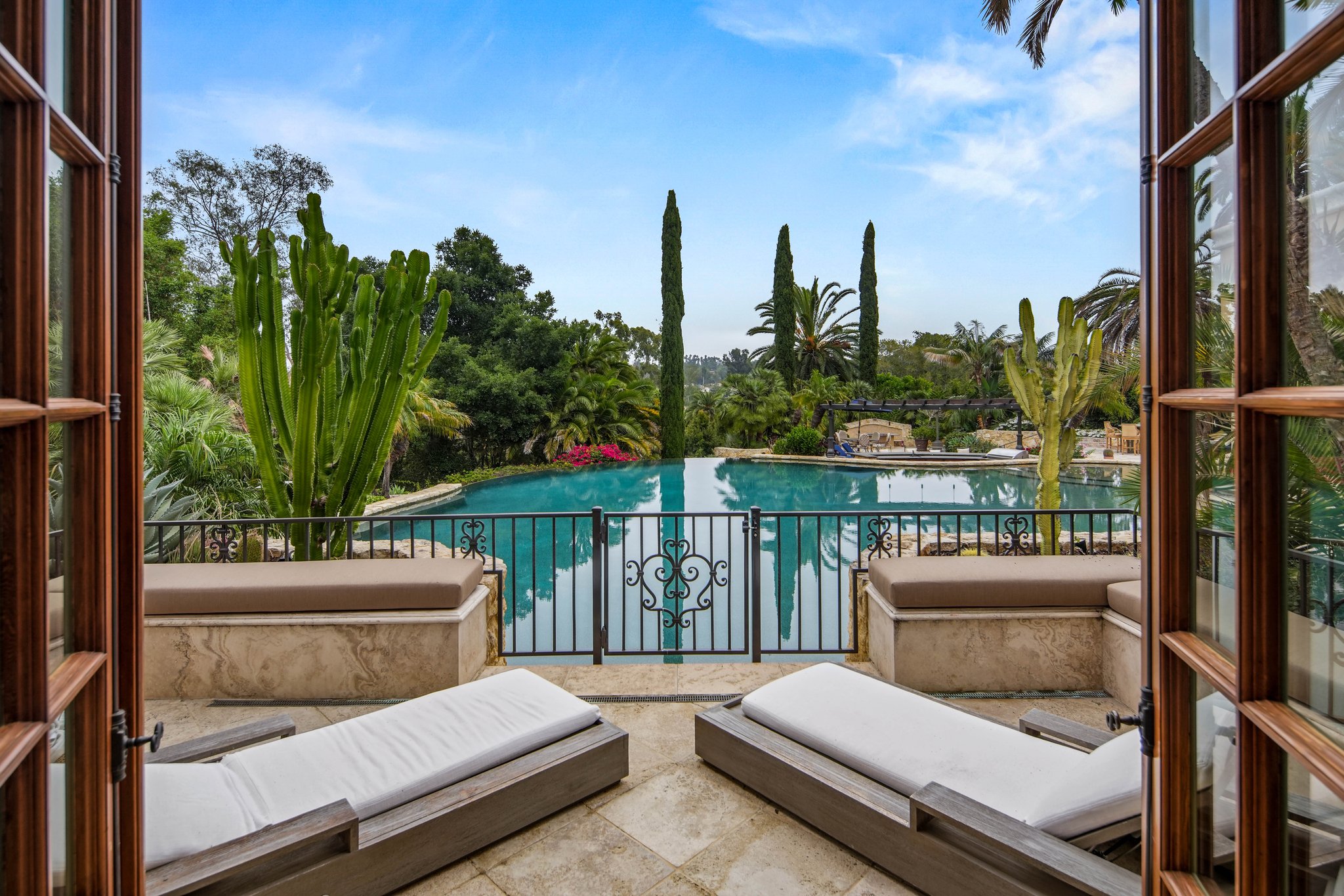 Upon entering the lavishly landscaped courtyard, an expanse of colorful rose gardens, cascading greenery and the sweet scent of citrus blossoms welcome you. The grandeur of the residence, with its spacious design, seamlessly intertwines a timeless, traditional floor plan with modern influences. Rooms effortlessly flow, converging indoor and outdoor living, inviting you to the sheltered loggias and the captivating zero-edge pool adorned with stone detailing, waterfalls, and a swim-up bar.