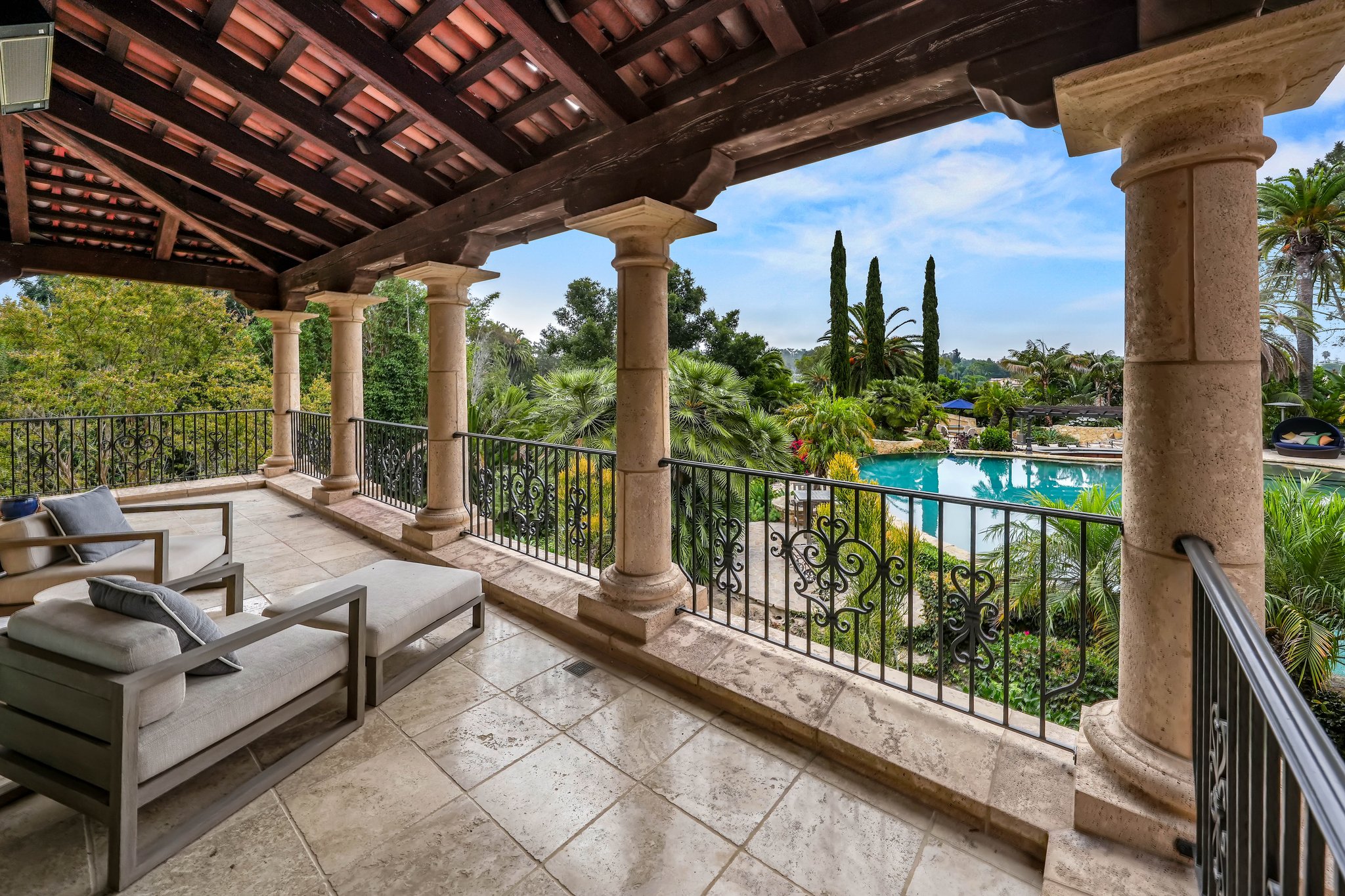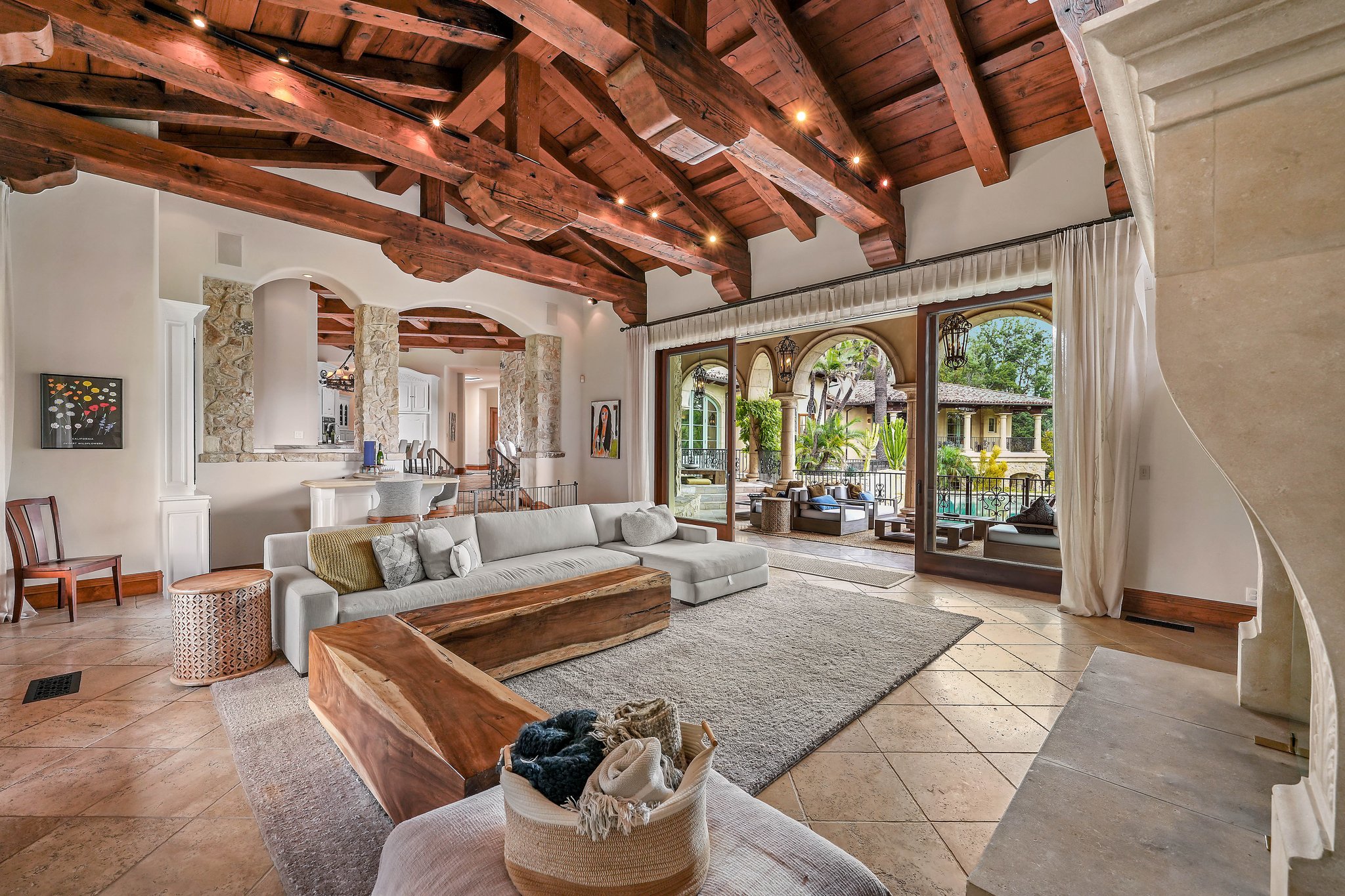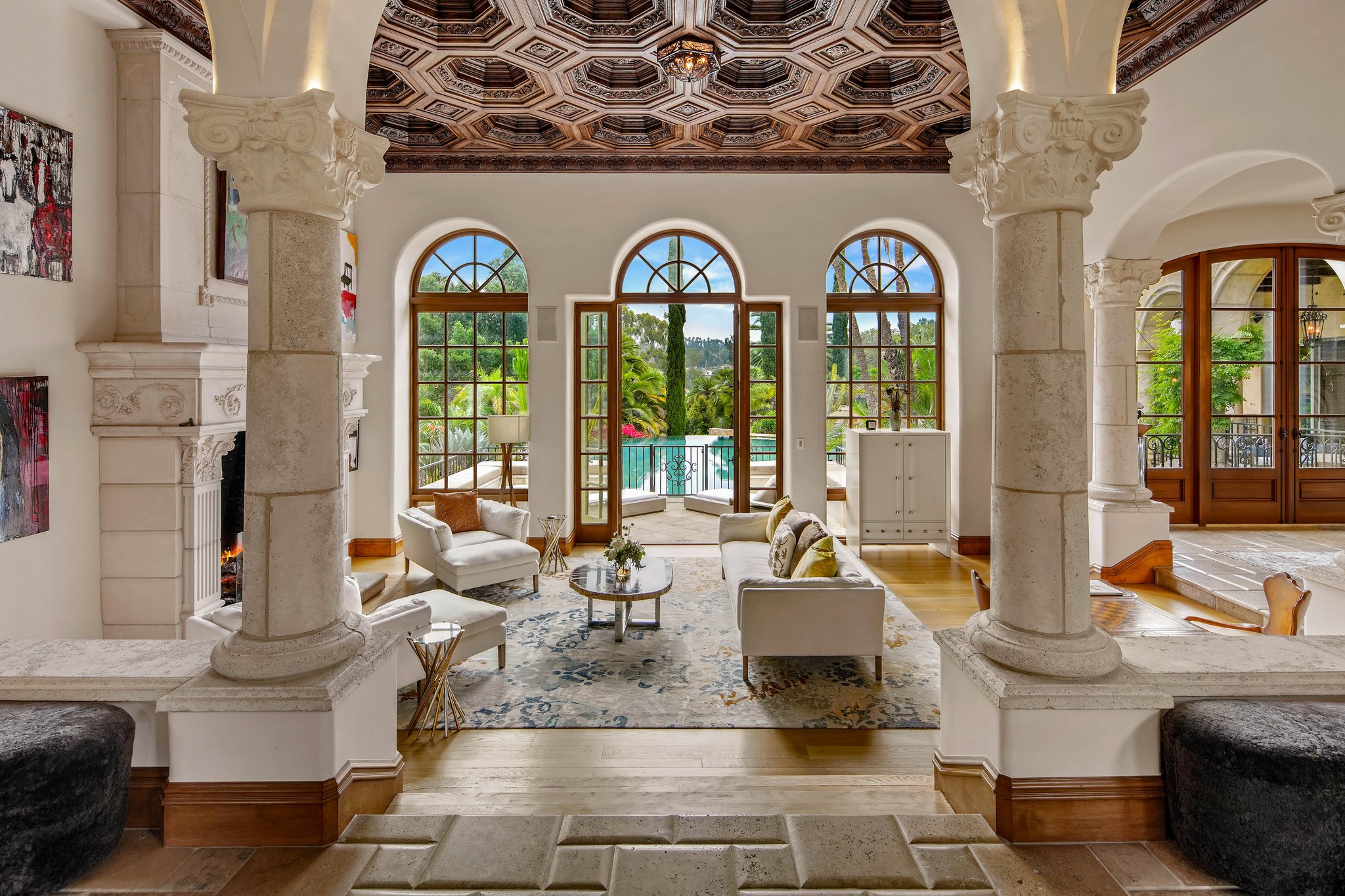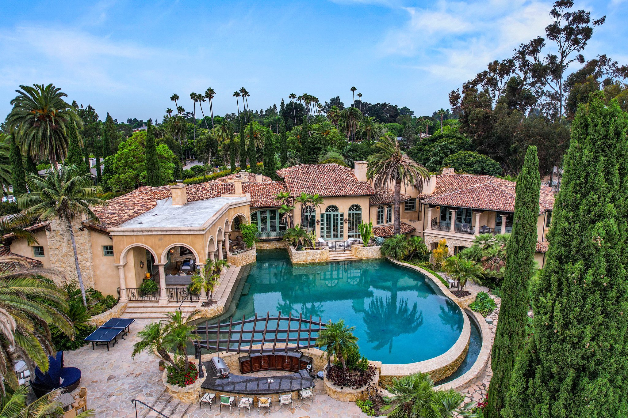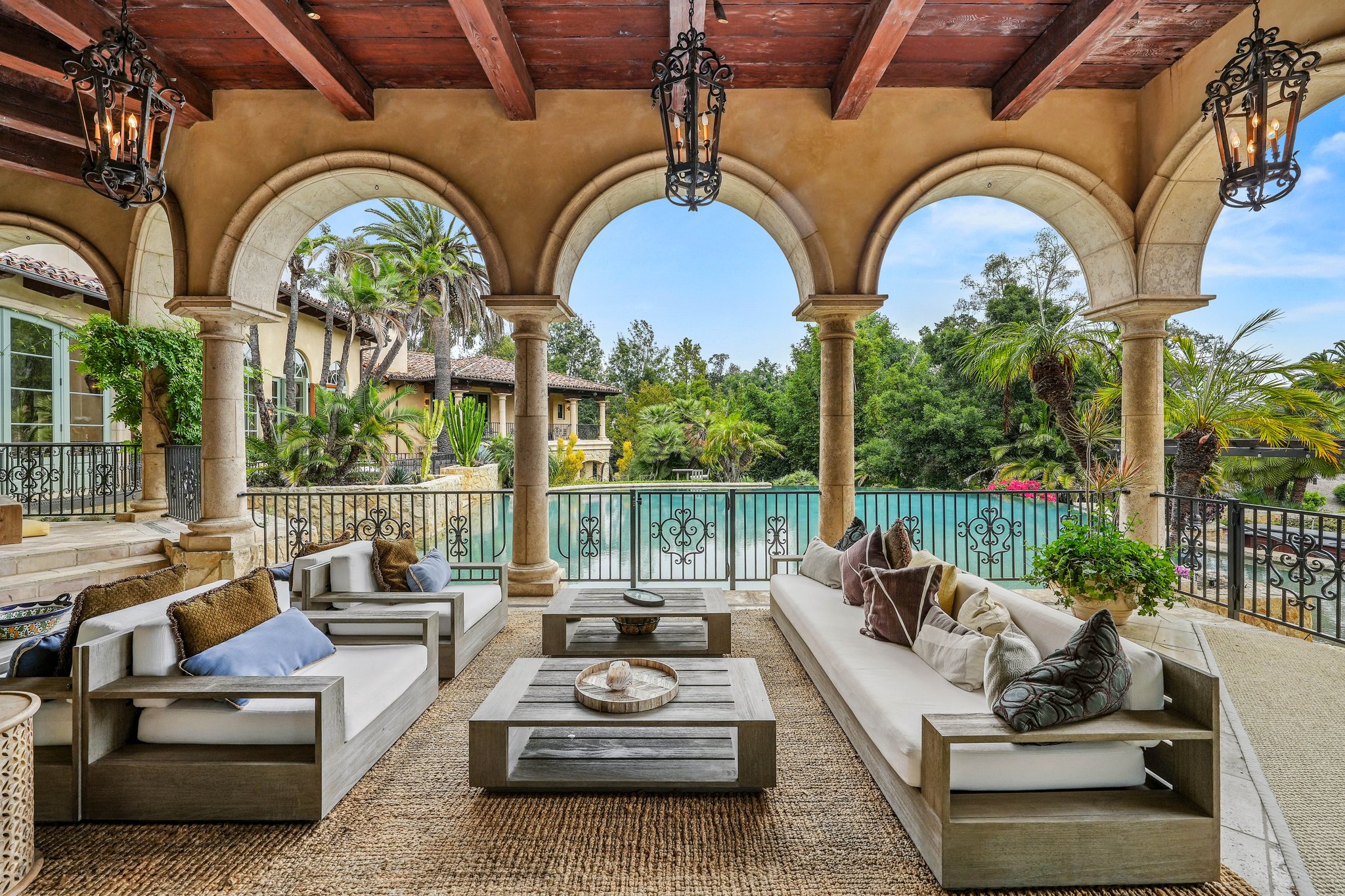 Upon entering the lavishly landscaped courtyard, an expanse of colorful rose gardens, cascading greenery and the sweet scent of citrus blossoms welcome you. The grandeur of the residence, with its spacious design, seamlessly intertwines a timeless, traditional floor plan with modern influences. Rooms effortlessly flow, converging indoor and outdoor living, inviting you to the sheltered loggias and the captivating zero-edge pool adorned with stone detailing, waterfalls, and a swim-up bar.