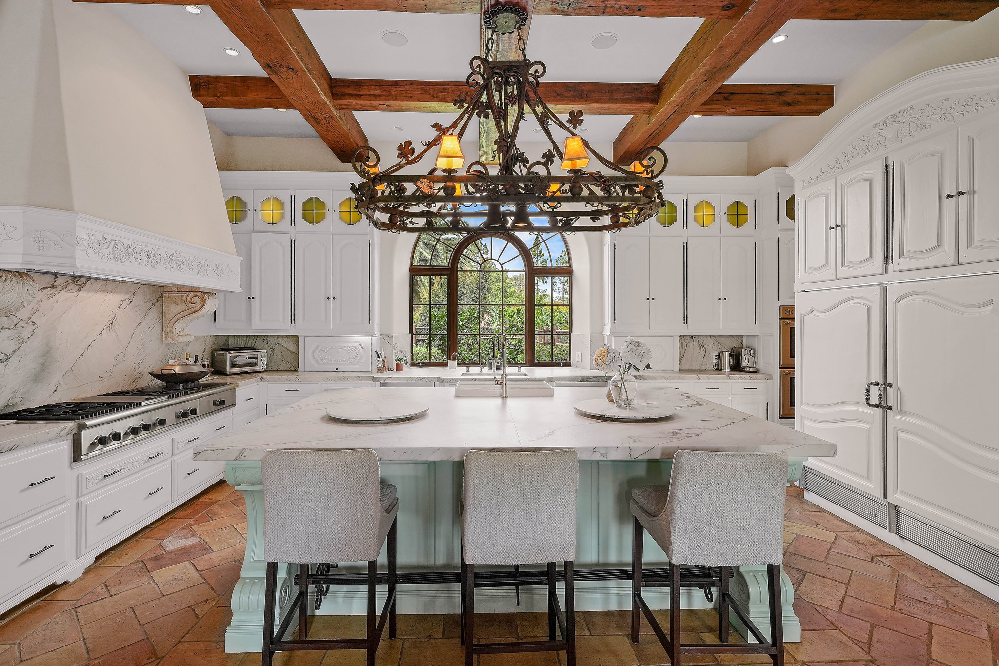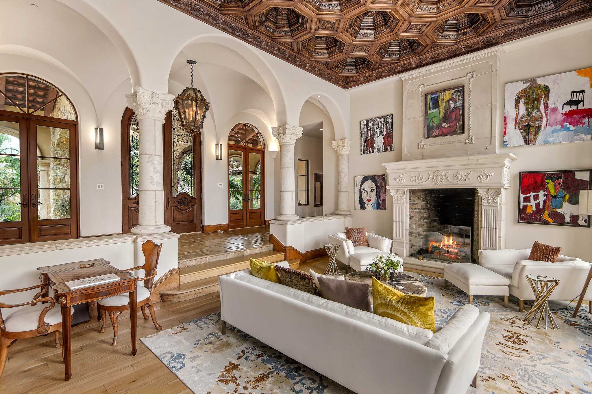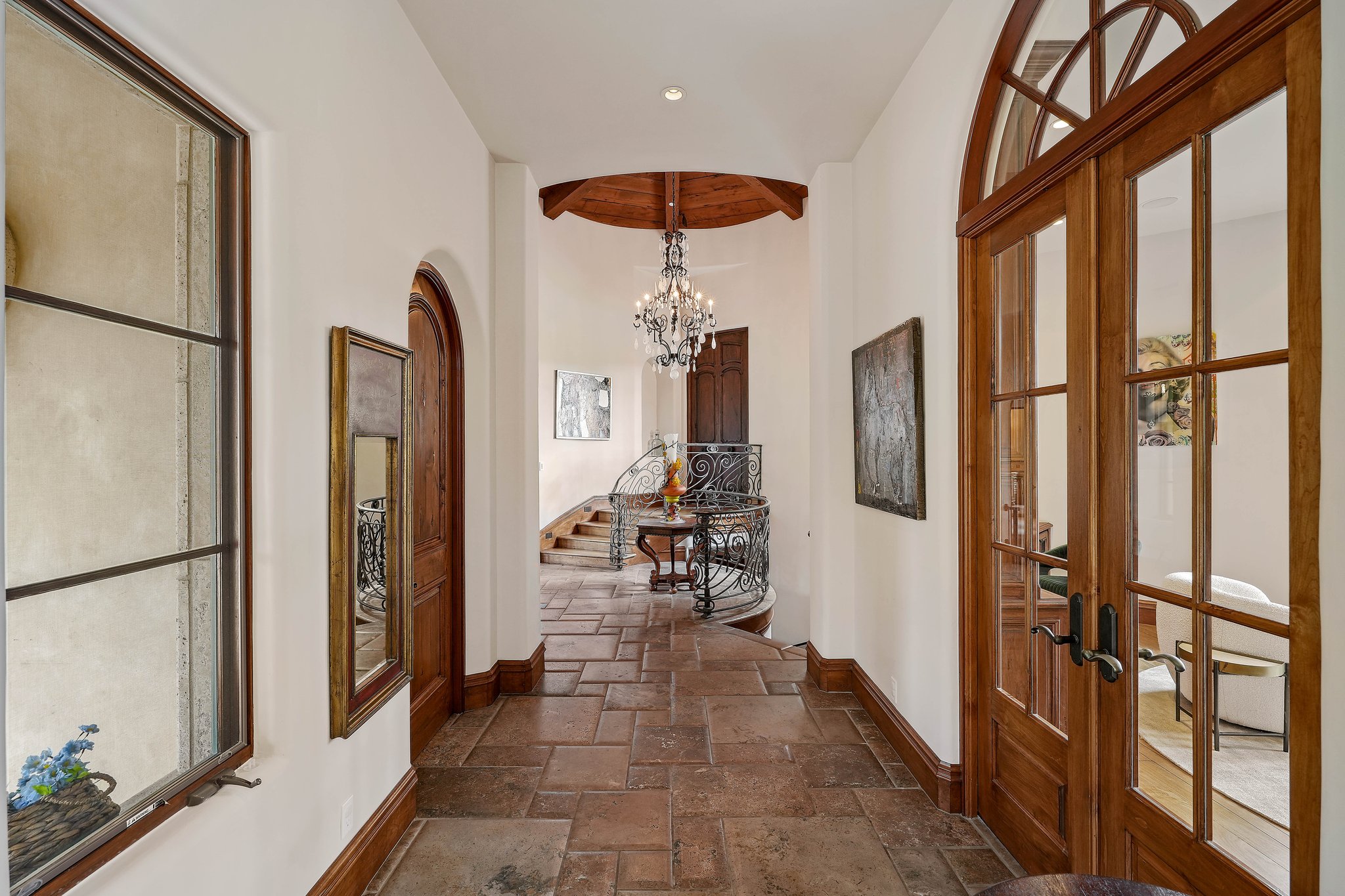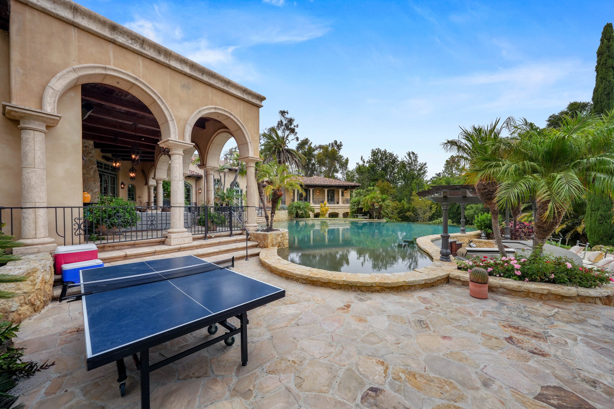 Upon entering the lavishly landscaped courtyard, an expanse of colorful rose gardens, cascading greenery and the sweet scent of citrus blossoms welcome you. The grandeur of the residence, with its spacious design, seamlessly intertwines a timeless, traditional floor plan with modern influences. Rooms effortlessly flow, converging indoor and outdoor living, inviting you to the sheltered loggias and the captivating zero-edge pool adorned with stone detailing, waterfalls, and a swim-up bar.