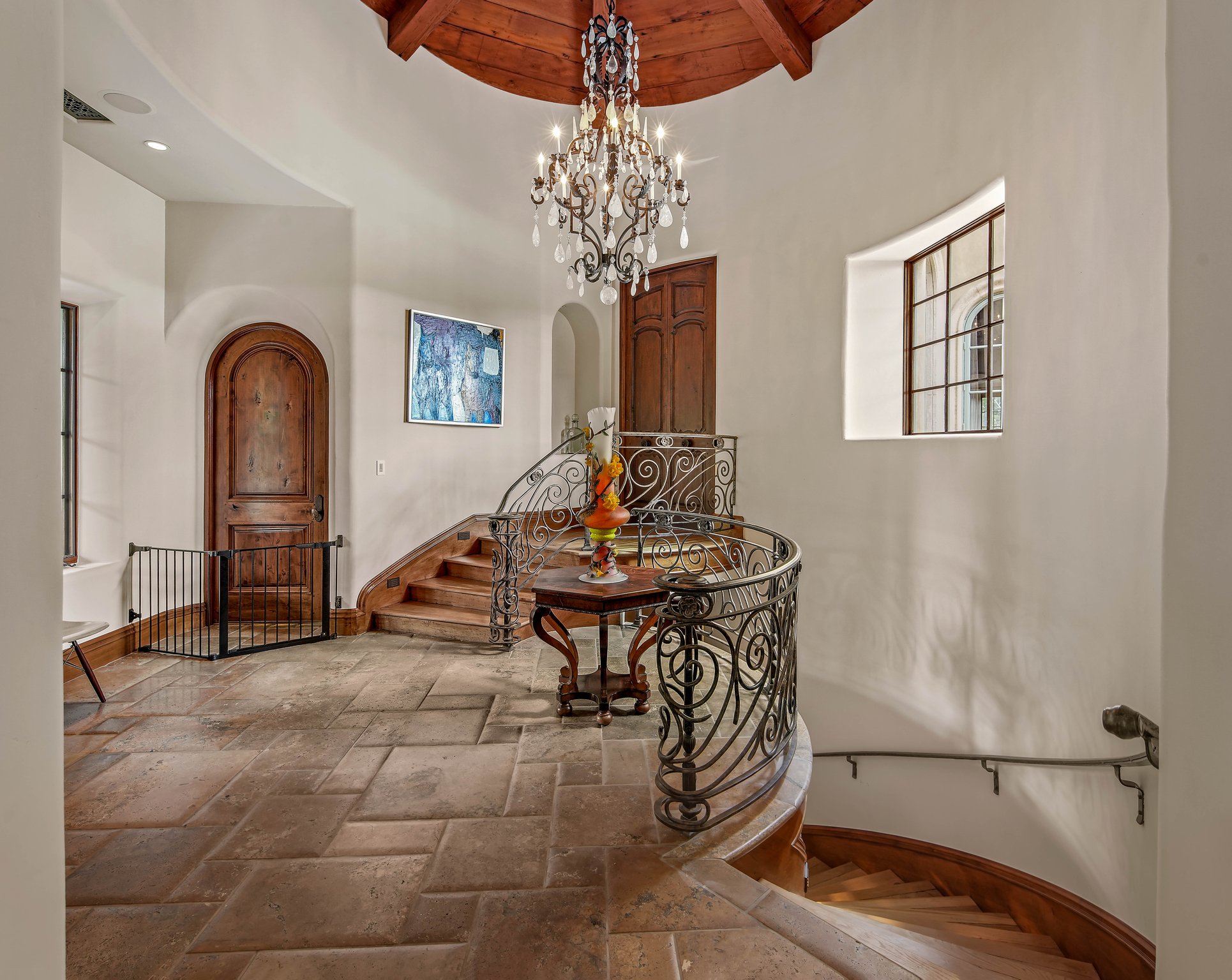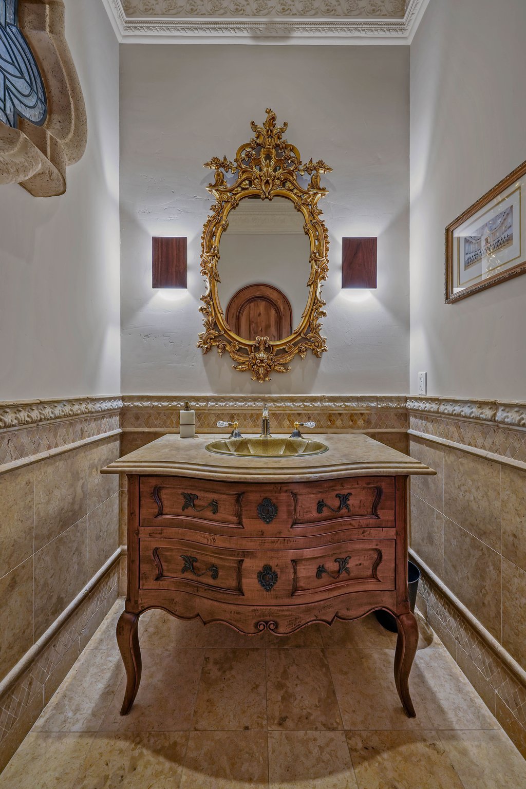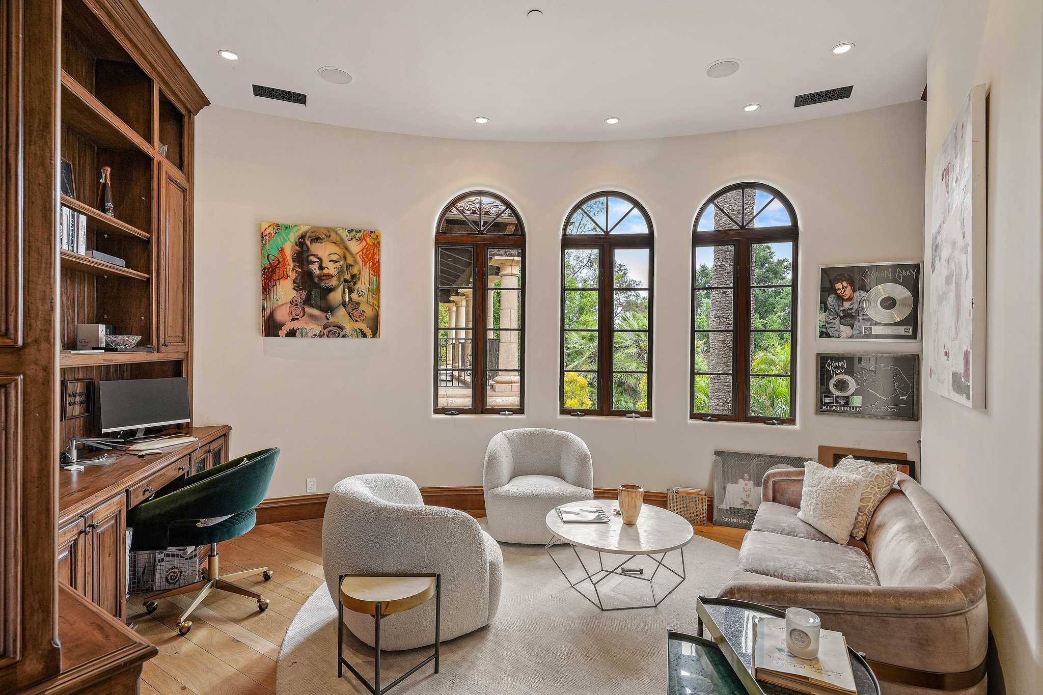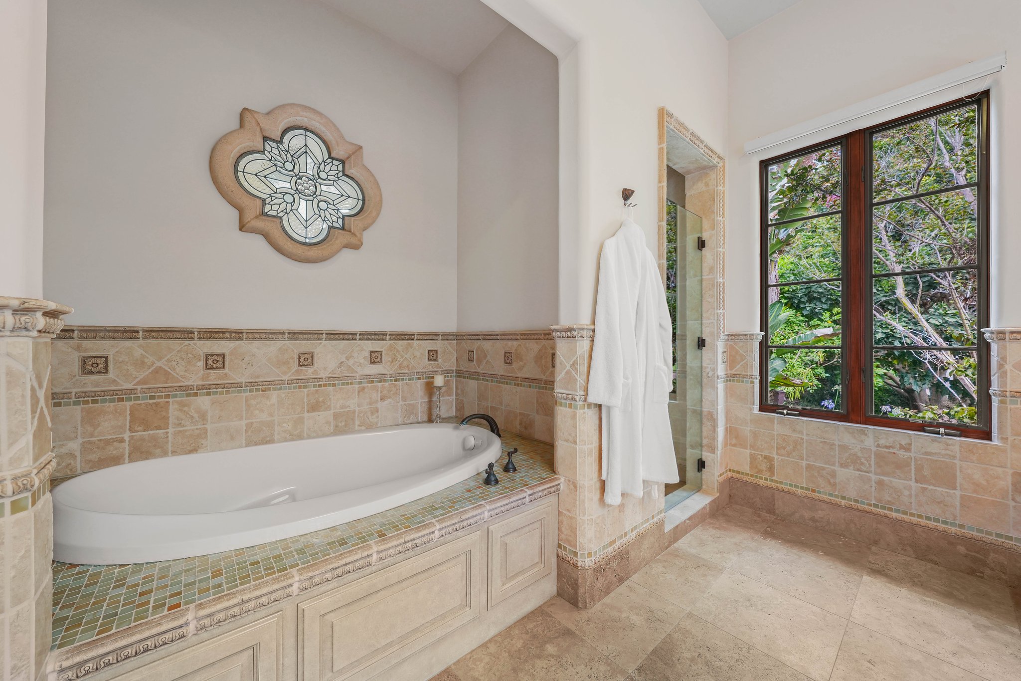 Upon entering the lavishly landscaped courtyard, an expanse of colorful rose gardens, cascading greenery and the sweet scent of citrus blossoms welcome you. The grandeur of the residence, with its spacious design, seamlessly intertwines a timeless, traditional floor plan with modern influences. Rooms effortlessly flow, converging indoor and outdoor living, inviting you to the sheltered loggias and the captivating zero-edge pool adorned with stone detailing, waterfalls, and a swim-up bar.