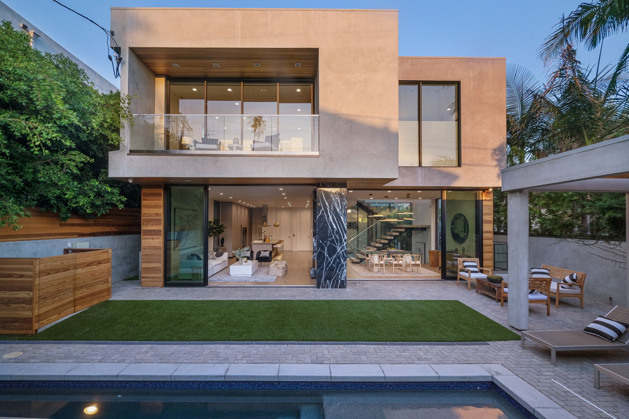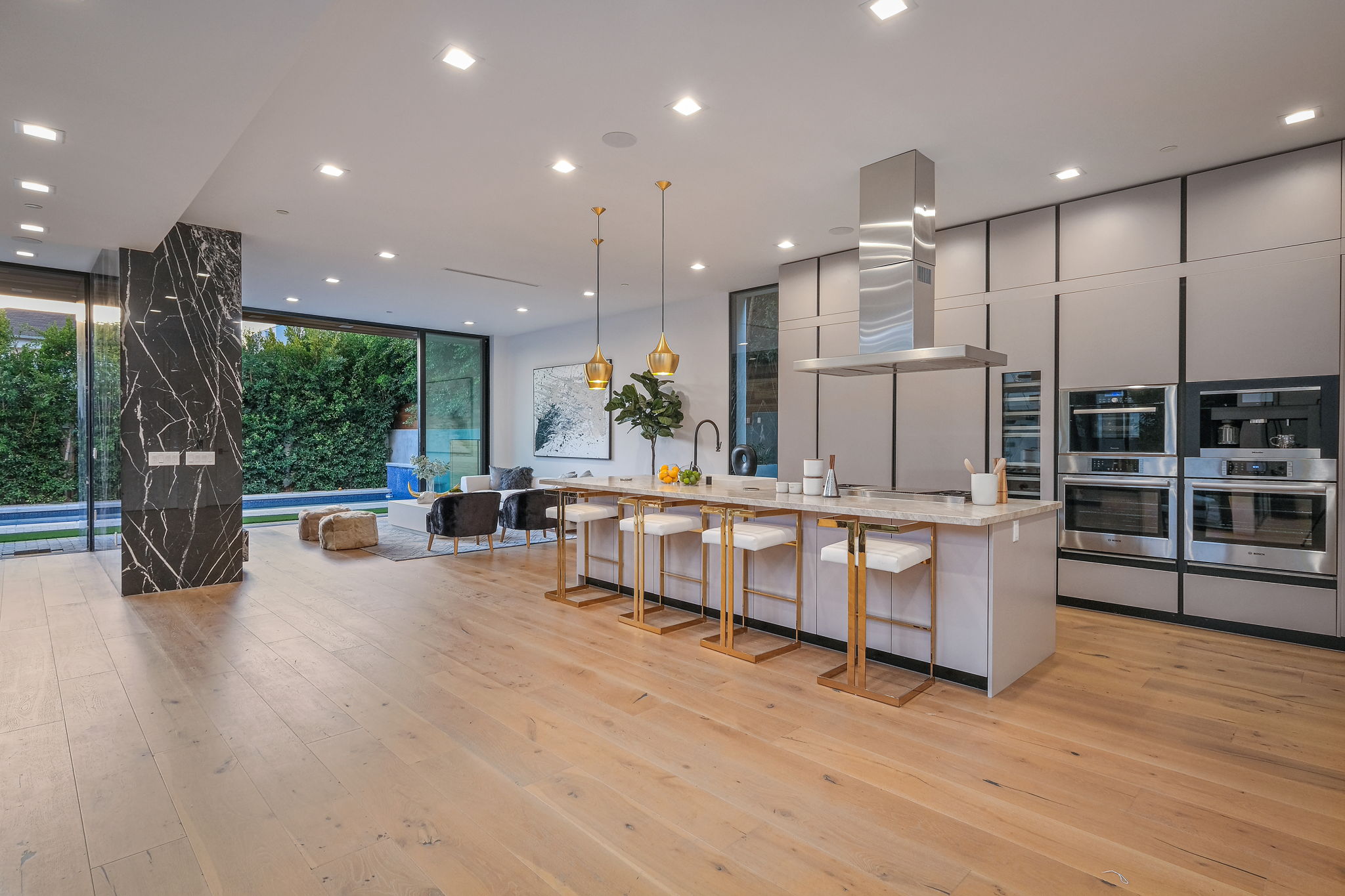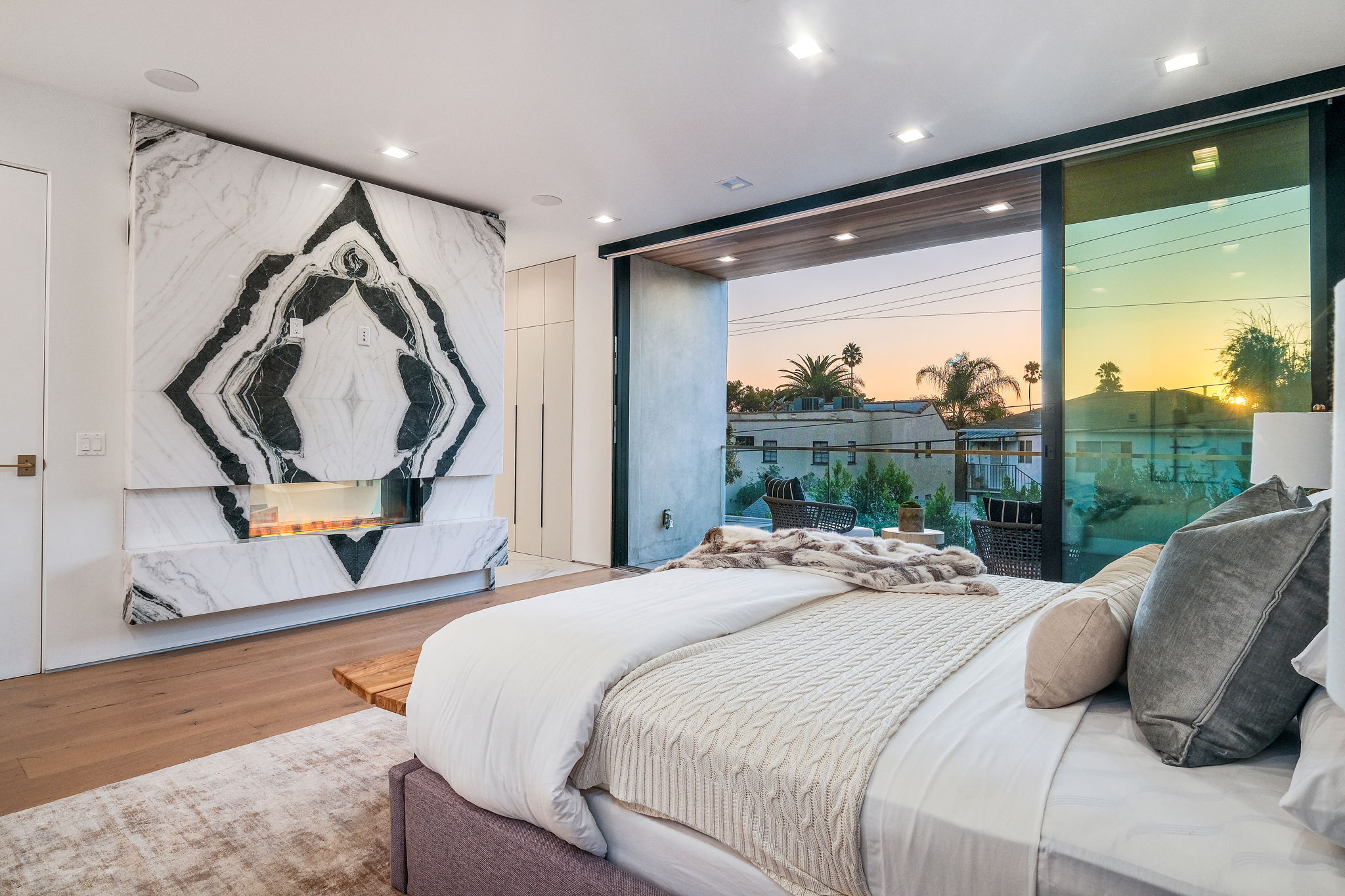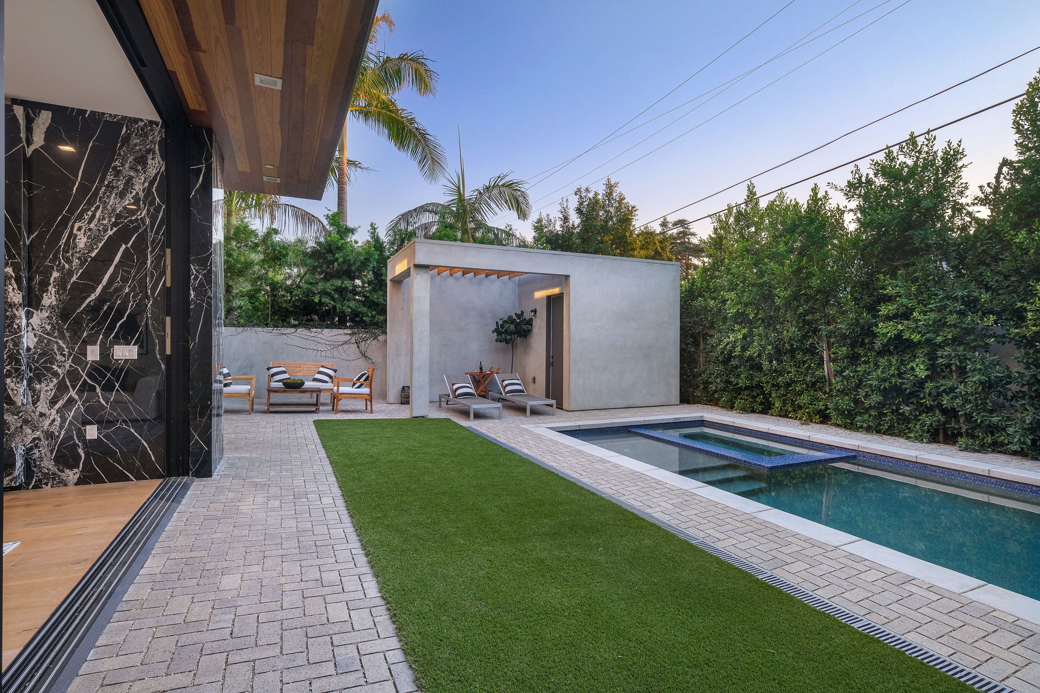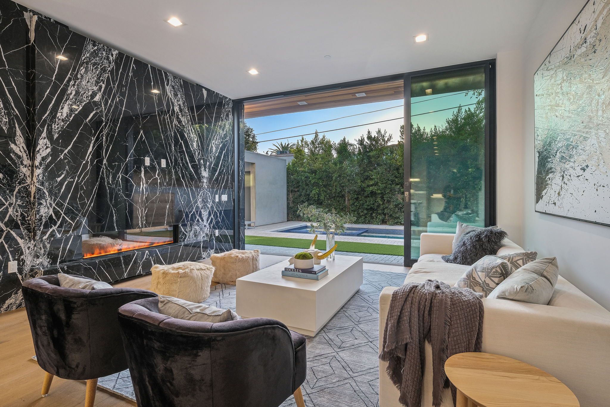 A newly-built and exquisitely designed contemporary, effortlessly combining elements of stone, wood, and marble within 5,681 sq. ft. of beautiful interior living space. Featuring a flexible open floor plan, the living and dining spaces are separated by a floor-to-ceiling marble fireplace, with massive glass Fleetwood sliding doors allowing an abundance of natural light. Quintessential indoor/outdoor living from the privately-hedged backyard with gorgeous saltwater pool/spa and cabana area. A massive entertainers rooftop deck boasting panoramic views of the city and mountains. Designer finishes, clean lines, and stylish accents at every turn. The oversized owner's suite is an absolute dream with a two-way stone fireplace separating the sultry spa-like bath, and custom walk-in closet with LED lighting. Entertainment level with walk-in wine cellar and movie theater. 2-car garage with gated driveway. A truly impressive property when considering its size, scale, sophistication, and quality.