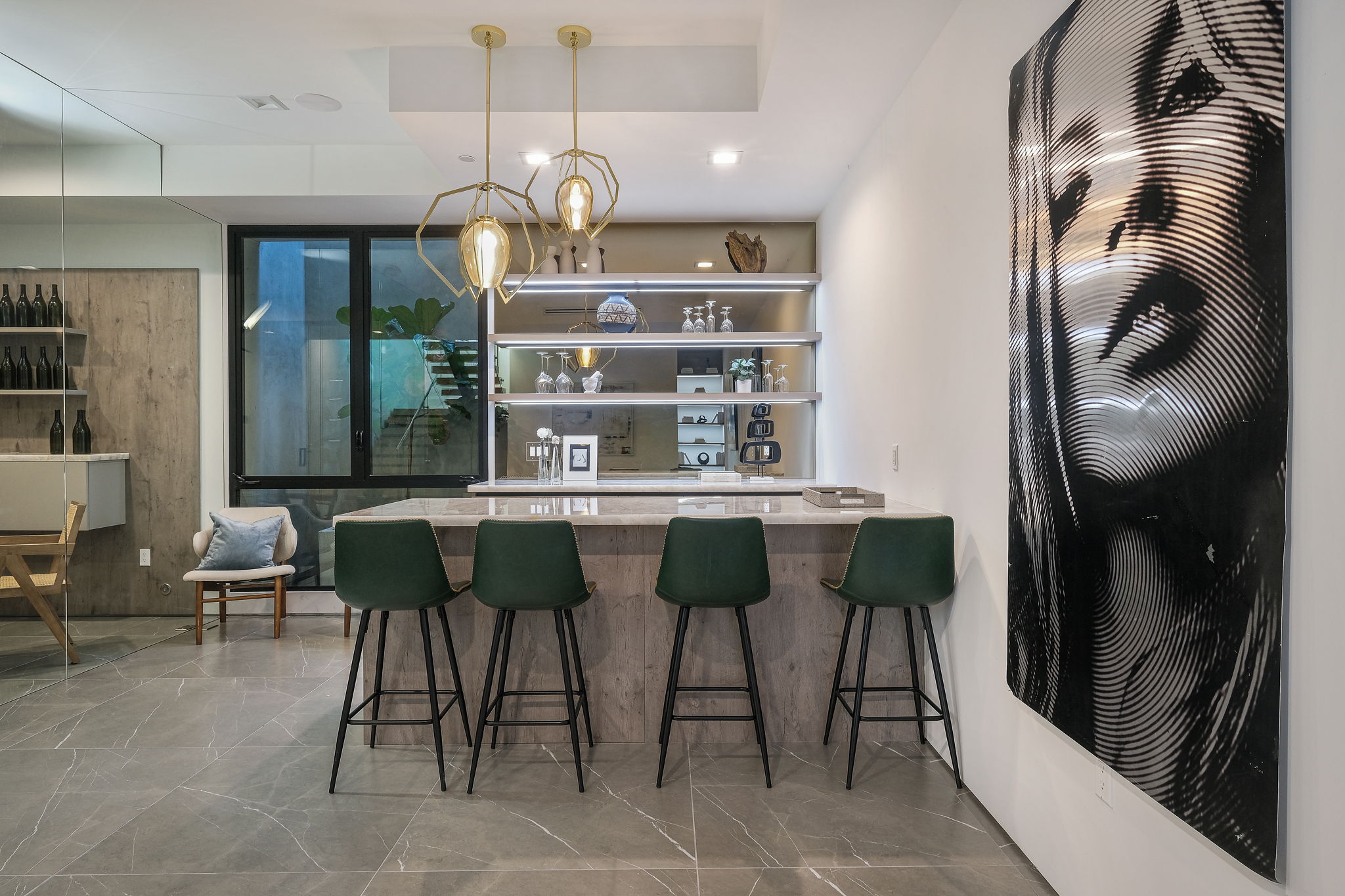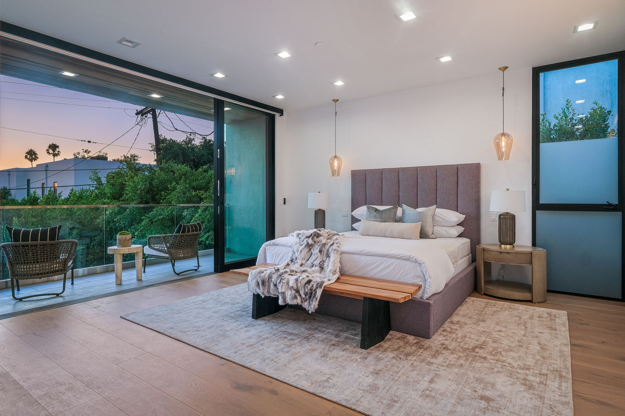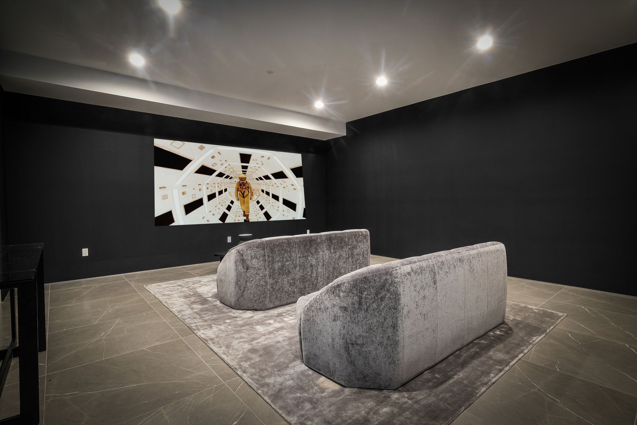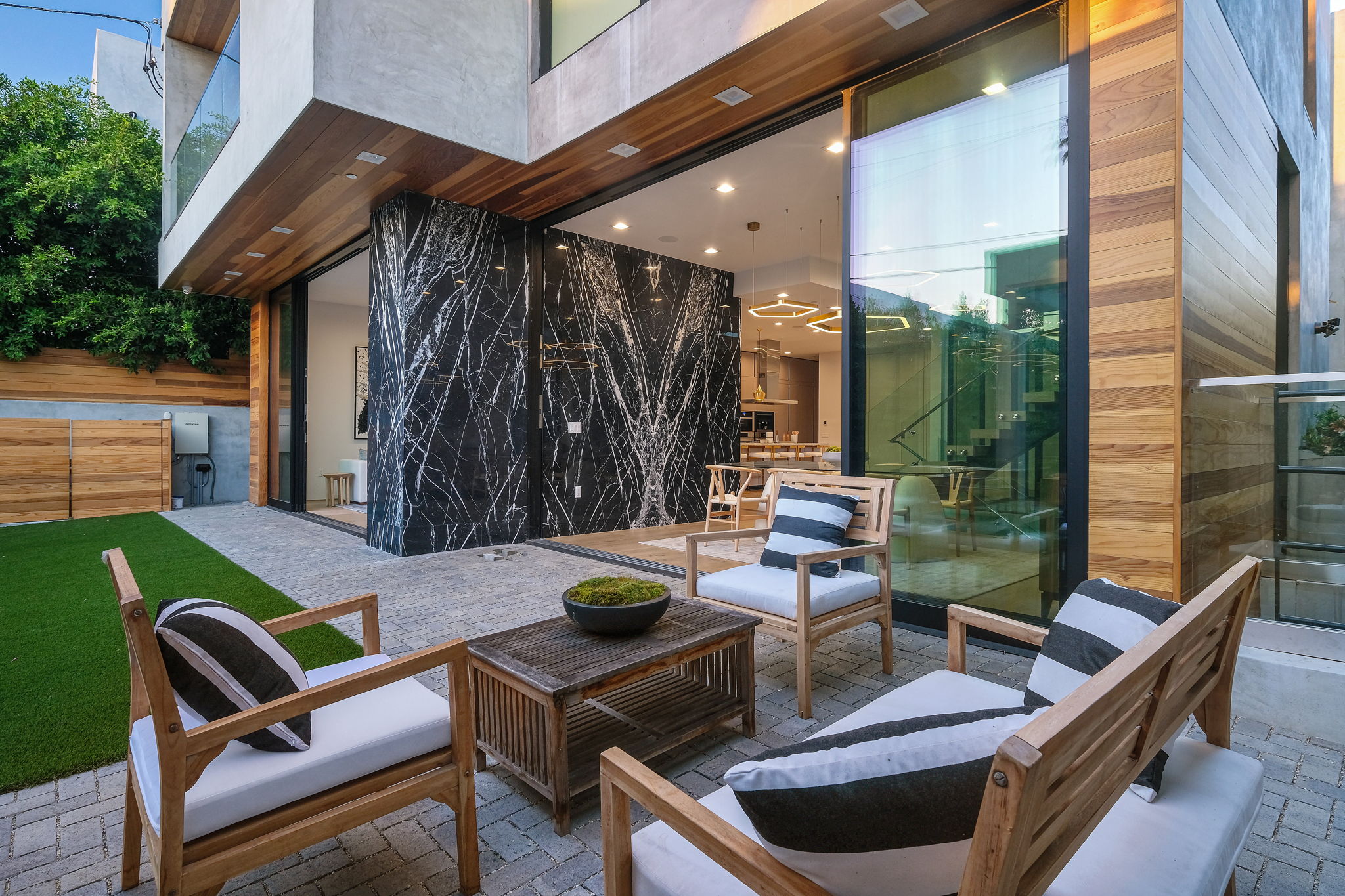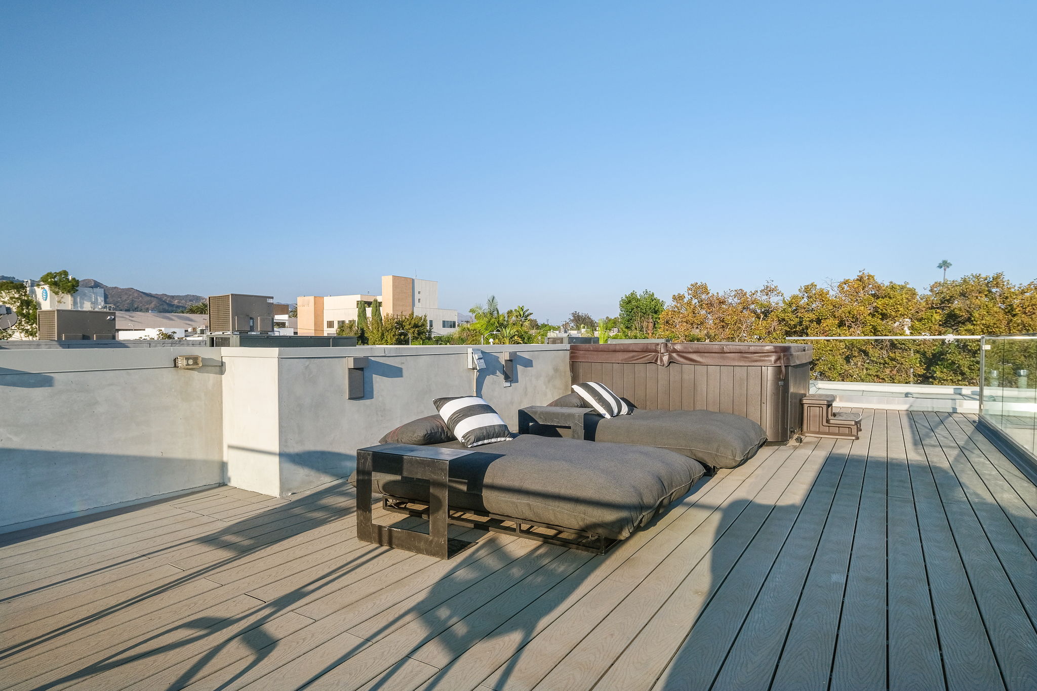 A newly-built and exquisitely designed contemporary, effortlessly combining elements of stone, wood, and marble within 5,681 sq. ft. of beautiful interior living space. Featuring a flexible open floor plan, the living and dining spaces are separated by a floor-to-ceiling marble fireplace, with massive glass Fleetwood sliding doors allowing an abundance of natural light. Quintessential indoor/outdoor living from the privately-hedged backyard with gorgeous saltwater pool/spa and cabana area. A massive entertainers rooftop deck boasting panoramic views of the city and mountains. Designer finishes, clean lines, and stylish accents at every turn. The oversized owner's suite is an absolute dream with a two-way stone fireplace separating the sultry spa-like bath, and custom walk-in closet with LED lighting. Entertainment level with walk-in wine cellar and movie theater. 2-car garage with gated driveway. A truly impressive property when considering its size, scale, sophistication, and quality.
