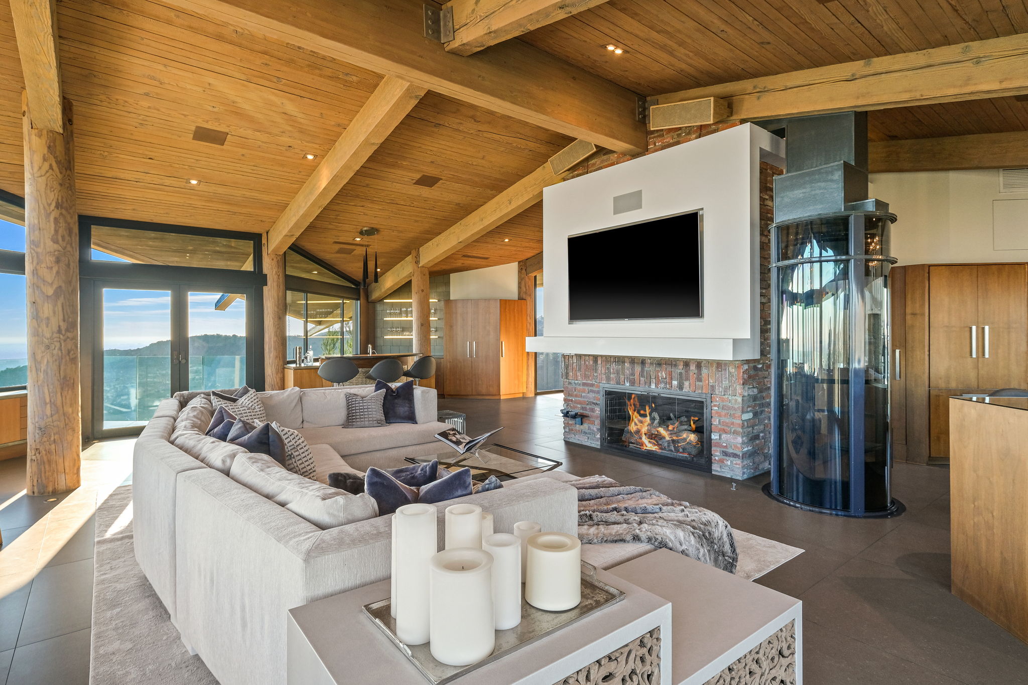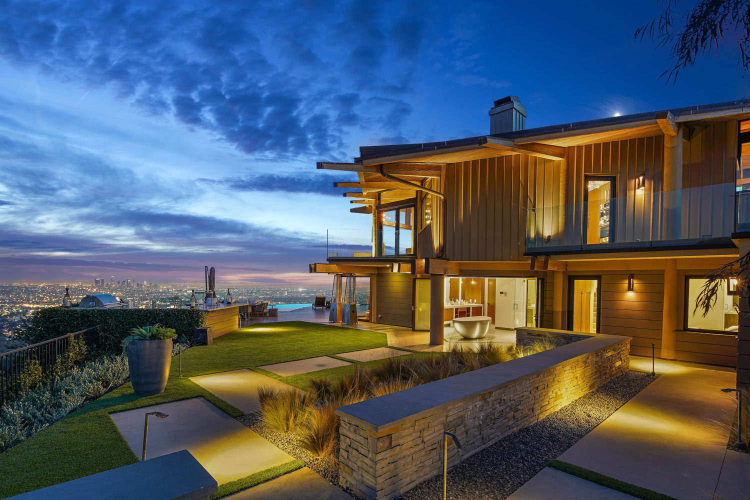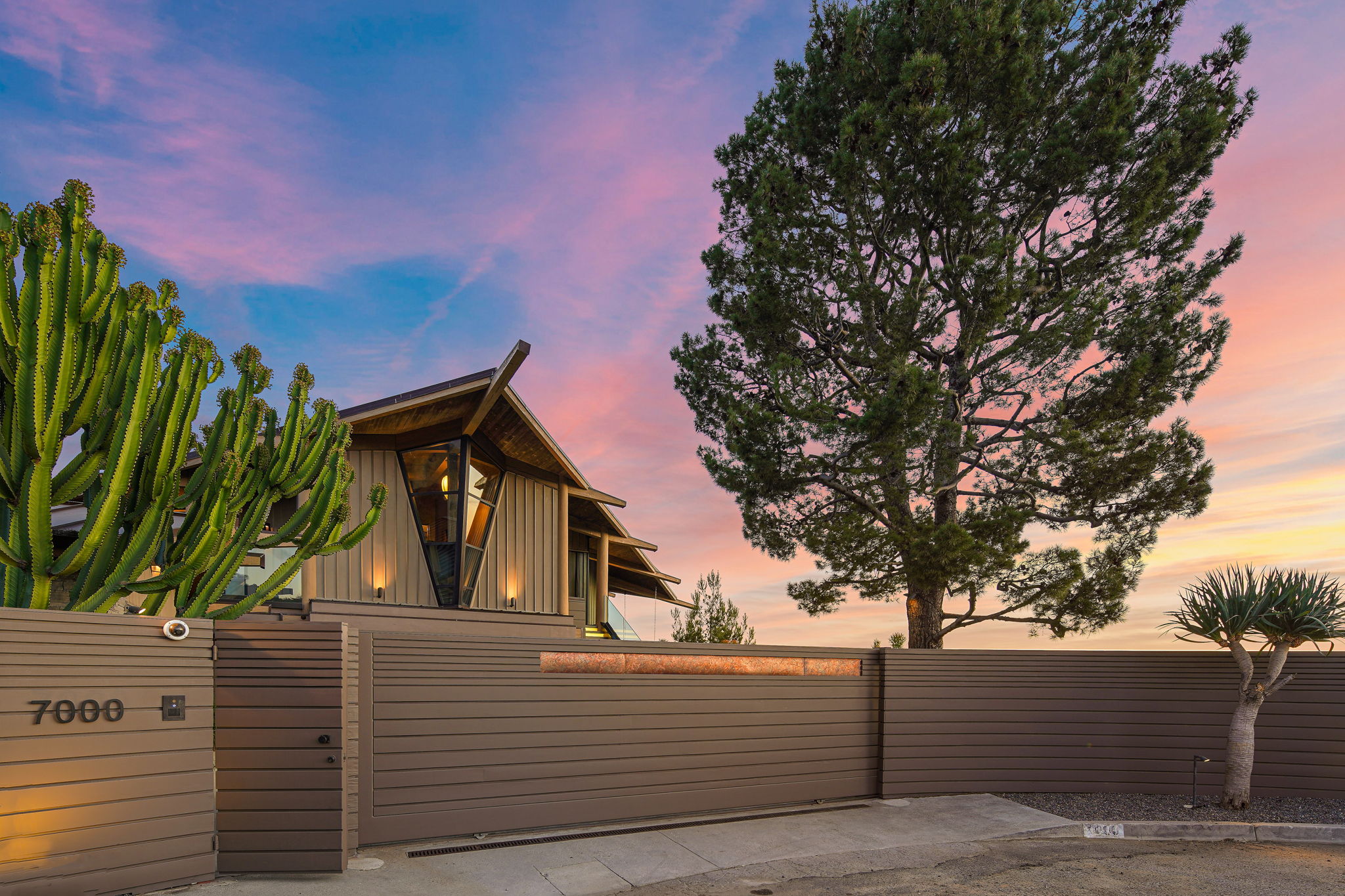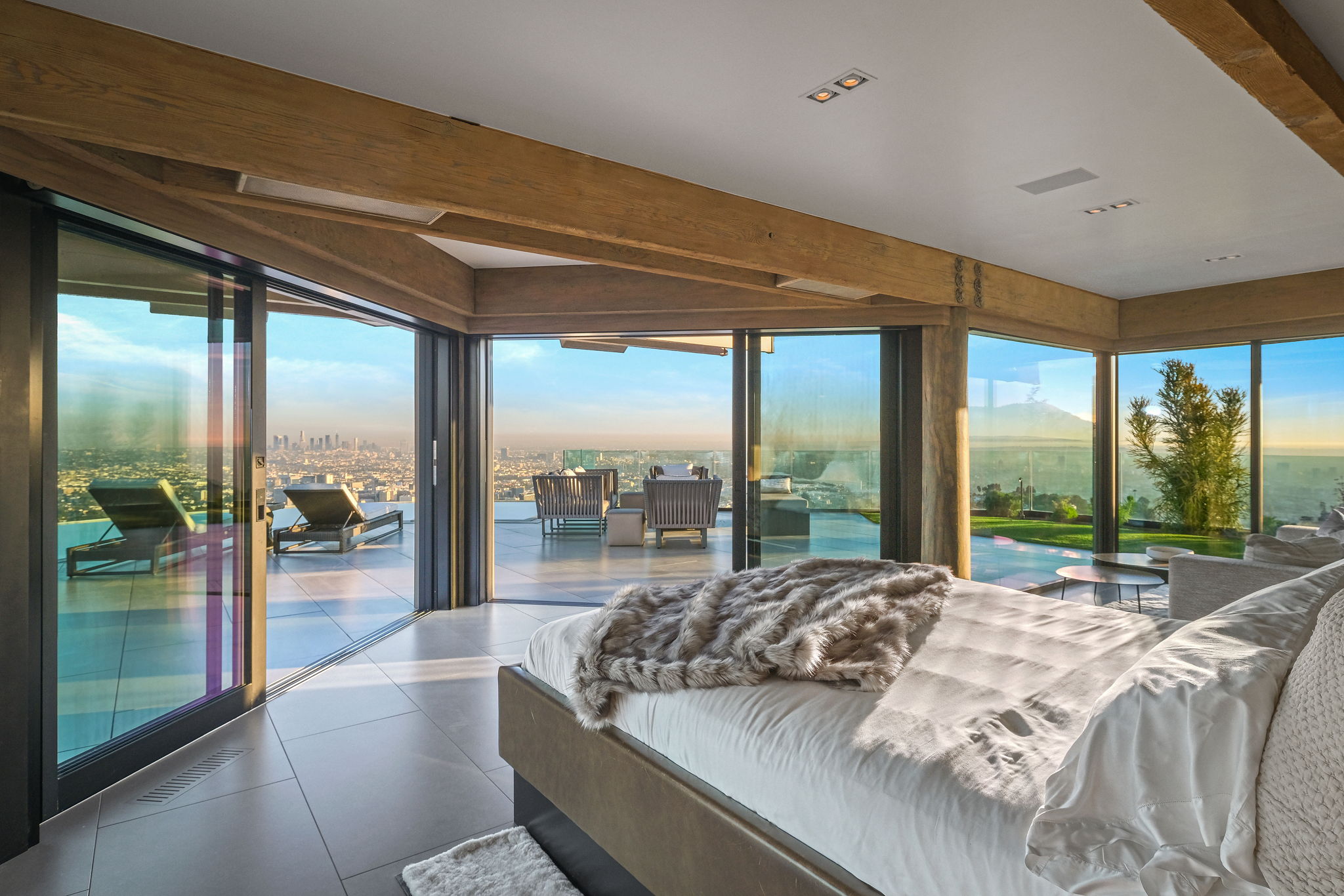 Simply unrivaled. This is the sexiest, most timeless, and architecturally impressive estate in the Hollywood Hills. Designed by the legendary Harry Gesner, and set on its own promontory behind private gates, this tour-de-force overlooks some of the most iconic views in all of Los Angeles and boasts extraordinary craftsmanship with a stylistic confluence of modernity and sophistication that redefines all expectations. An open floor plan, vaulted wood plank ceilings, and disappearing glass doors throughout the home provide a plethora of natural light and seamlessly integrate the indoor/outdoor spaces for entertainment and relaxation. The top-level offers a chef's kitchen with custom cabinetry and top-of-the-line appliances, a spacious living and dining area with a custom-built bar, and a separate office. Down the elevator, the owner's suite and bathroom have unparalleled views of the Hollywood sign and the city skyline behind the infinity pool. The recording studio, located separately from the main house, has been fitted with the best equipment the industry has to offer. 2-car garage and plenty of space for additional parking on the courtyard. This reimagined house celebrates the site and our 21st-century lifestyle and will be an architectural beacon for generations to come.
