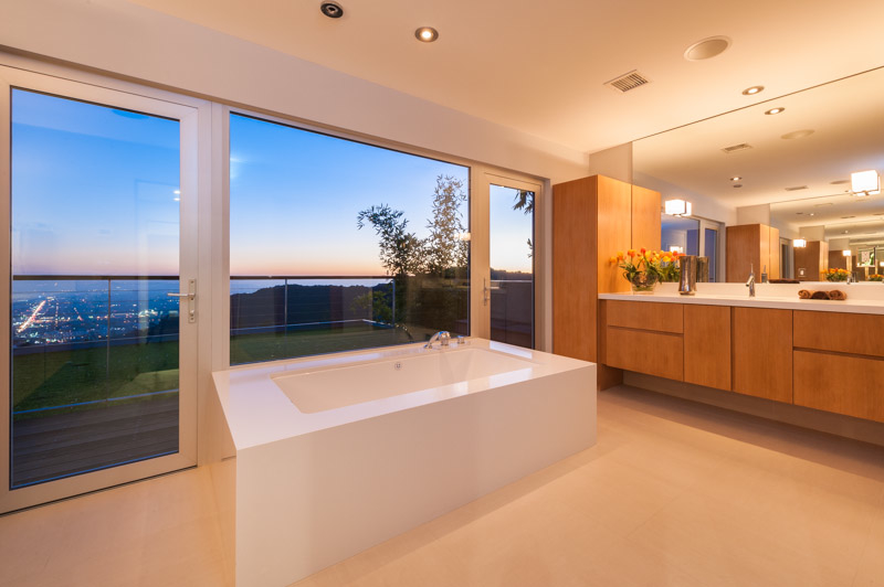 Boasting views from the Hollywood sign to the Ocean, this perfectly crafted contemporary offers the pinnacle of aesthetic refinement. A private oasis, this five bedroom estate has every accoutrement and luxurious master suite tames even the most discerning buyer as city views pierce through glass walls, and a tremendous private deck, indoor/outdoor bathroom, bountiful closet space, and a push-button fireplace exude style and sophistication.
