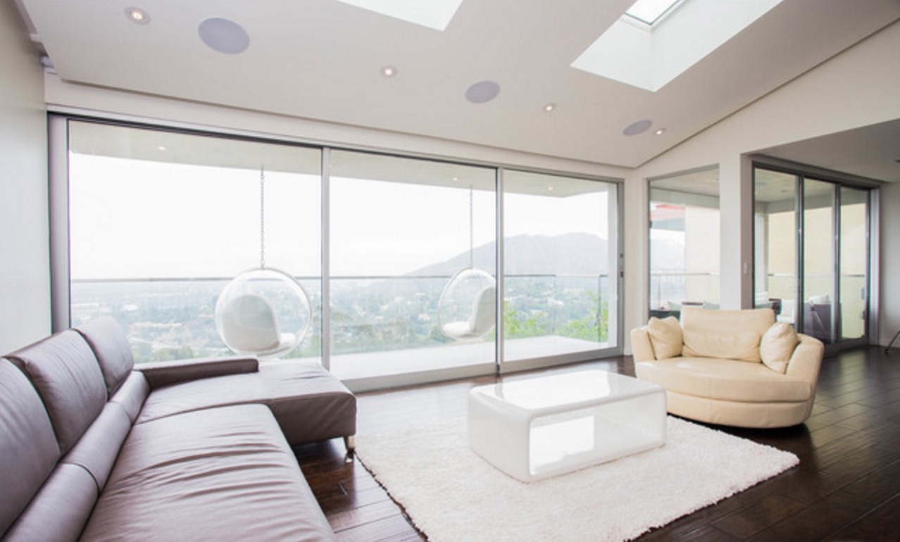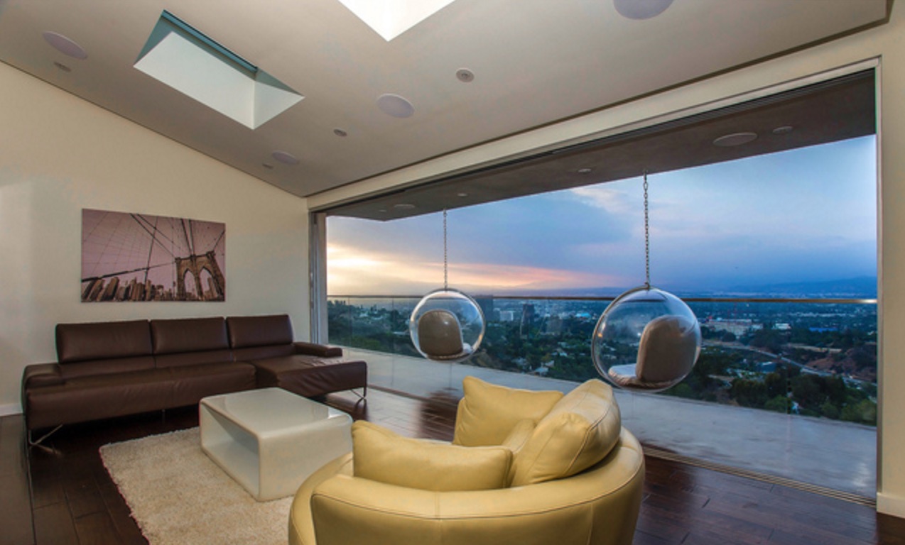 Stunning smart house in the Hollywood Hills with views from every room, recently remodeled with countless upgrades including all systems, floors, appliances, windows, and decks. Open living room with fireplace features pocket sliding glass doors that blend the views into the living space. Three large skylights with retractable blinds allow optimal infusion of sunlight into the upper level and the sunsets are spectacular. Control every system from your phone including blinds, climate, security, and lights. Efficiency features include light concrete with built in sectional coil heating below hardwood floors, hand free proximity faucets, nest climate control, tank less water heater. One bedroom guest house with separate entrance offers huge private deck with amazing views.