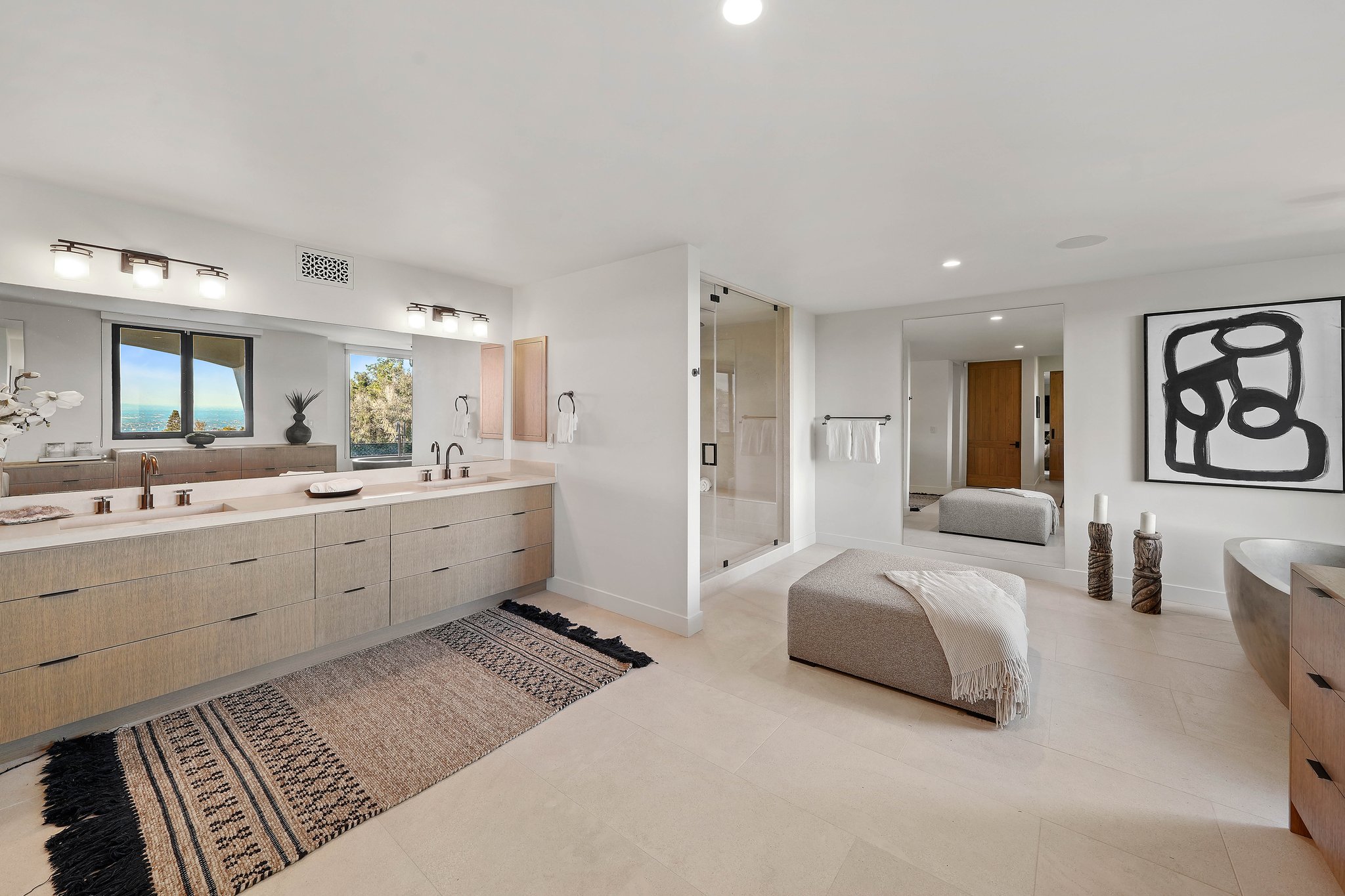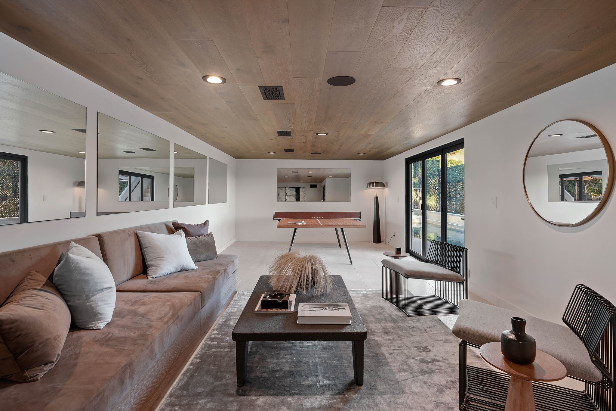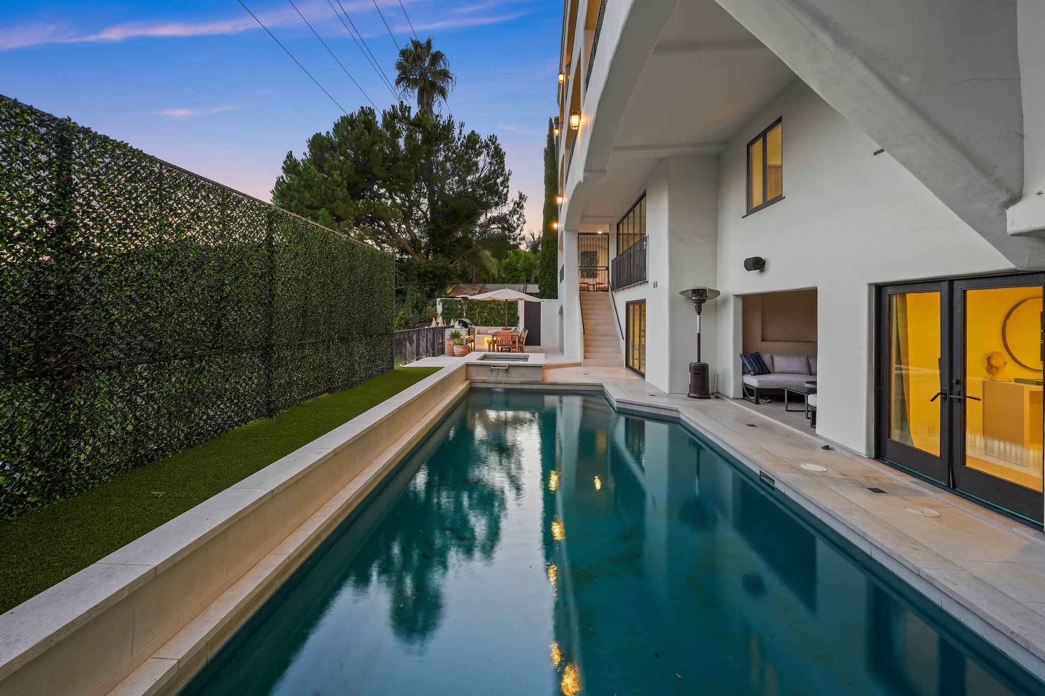 Perched in the Hollywood Hills behind private gates, discover unparalleled luxury in this beautifully renovated Contemporary Mediterranean estate offering breathtaking jetliner views of the Los Angeles skyline. This exceptional home combines elegance with a warm and organic flair, creating a serene and sophisticated retreat. Enter past the manicured lawn with gorgeous olive trees, to an expansive open floor plan where the living and dining areas effortlessly flow into a gourmet chef’s kitchen replete with bespoke neutral-toned cabinetry. A towering wall of sliding glass doors reveals the spectacular city and canyon views, leading to a sprawling balcony perfect for al fresco dining and relaxation. The nearly 2,000 sq. ft. primary suite includes a wet bar, balcony, cozy fireplace with private living area, and a luxurious ensuite bathroom that is complemented by a vast walk-in closet. Descend via the private elevator to a realm of opulent amenities, including a state-of-the-art home theater, an indoor/outdoor entertainment level, and a wellness center complete with a massage area, sauna, and gym. The backyard is an entertainer’s dream, featuring an elegantly lit outdoor space with a bar, fire-pit, BBQ area, and a stunning pool and spa. The gated parking area can accommodate up to 4 vehicles, in addition to a substantial 3-car attached garage. Modern conveniences include advanced smart home automation and surveillance systems, ensuring both comfort and security. Conveniently located near Runyon Canyon and just a short drive from Hollywood and Studio City.