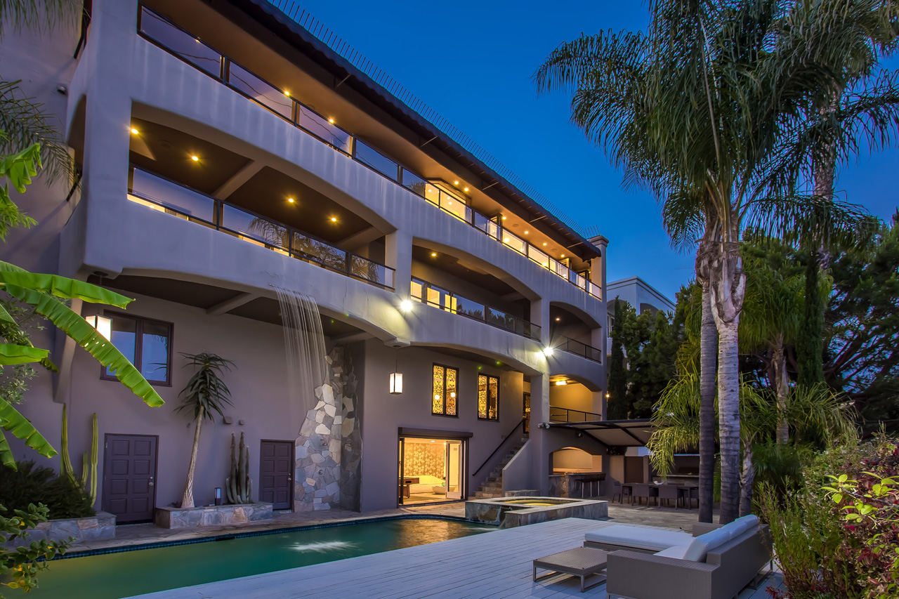 Behind private gates, this spectacular estate boasts breathtaking city views and a thoughtful floor plan allowing for plentiful natural light. Luxuriantly appointed kitchen boasts top of the line appliances, and an enormous master bedroom offers a fireplace (one of four in the house) and double vanity bathroom with bathtub and a large walk-in closet. Four additional en-suite bedrooms are equipped with walk-in closets, bathtubs, and amazing views, and a well-equipped sixth bedroom has a private entrance. A fabulous mid-level entertaining area includes a media room, full bar and kitchen and a salt water pool and spa has a dramatic waterfall feature cascading from the house and is adjacent to a fully equipped outdoor kitchen and bar. Elevator, wellness center with gym, sauna and steam shower equipped with guest lockers, a robust home security and video system, and 6-car parking completes this spectacular estate. Owner purchased the house in 2005 for $3,800,000 and has since upgraded it.