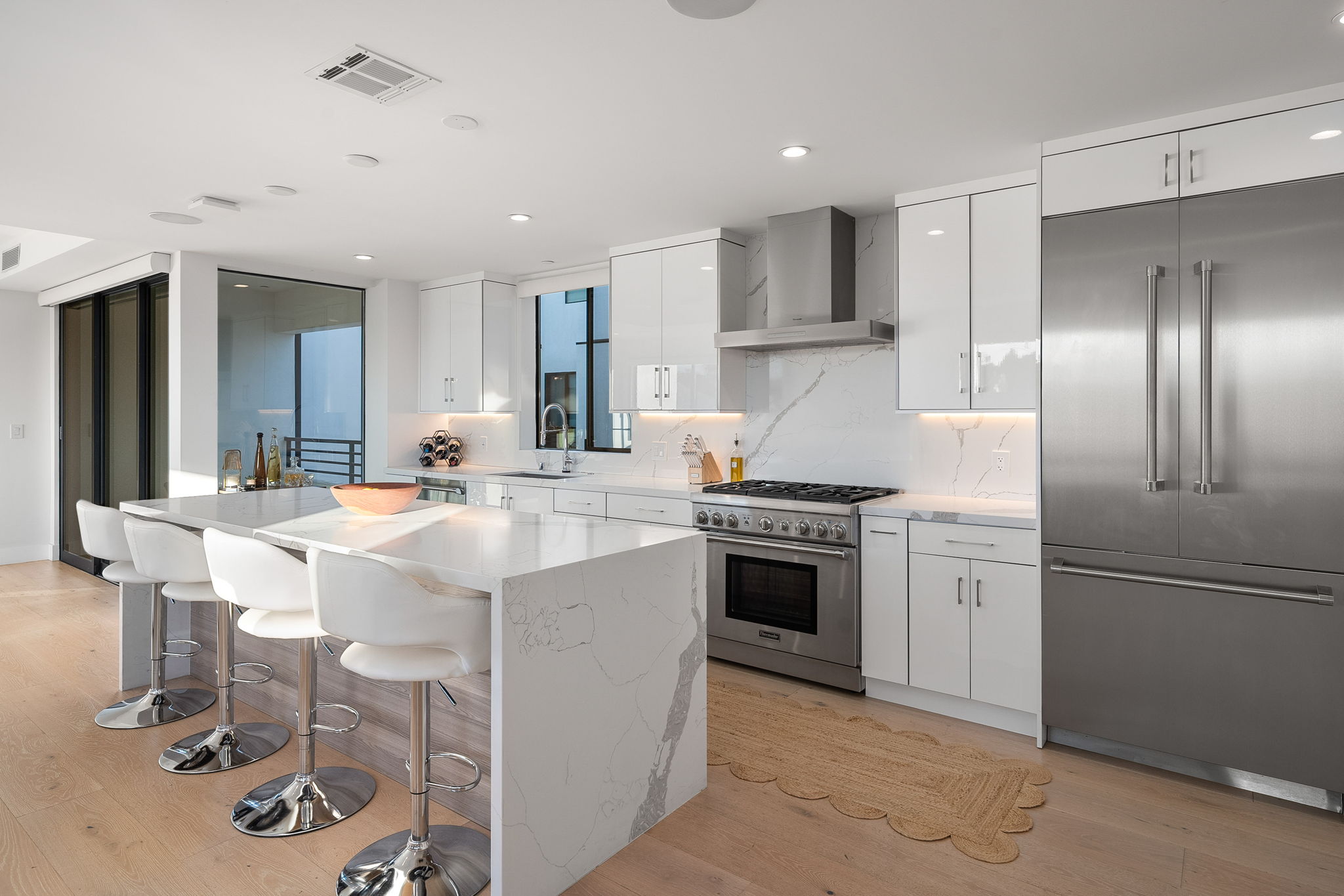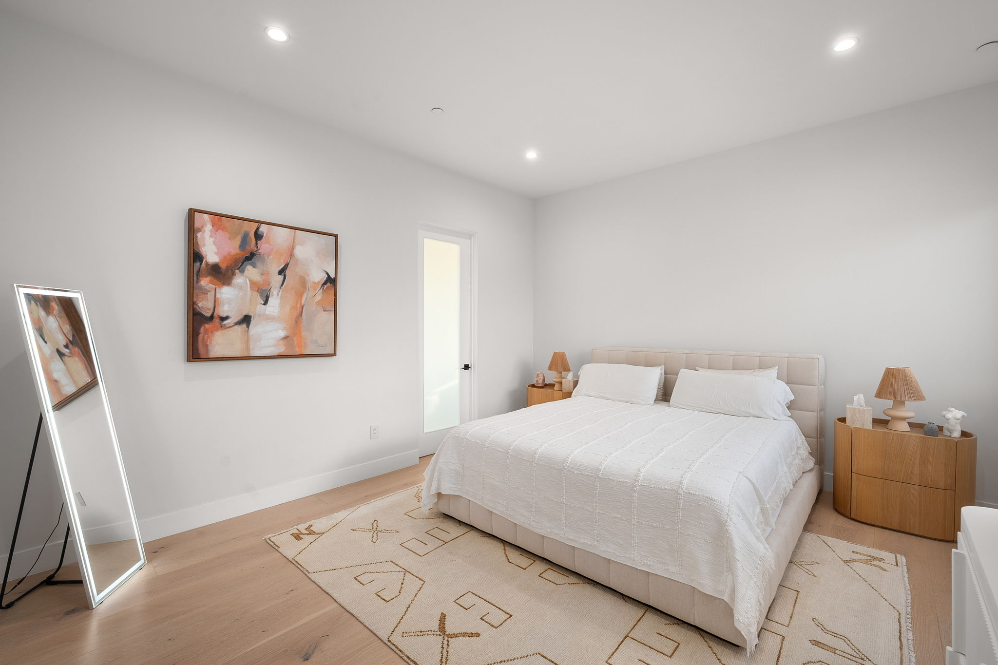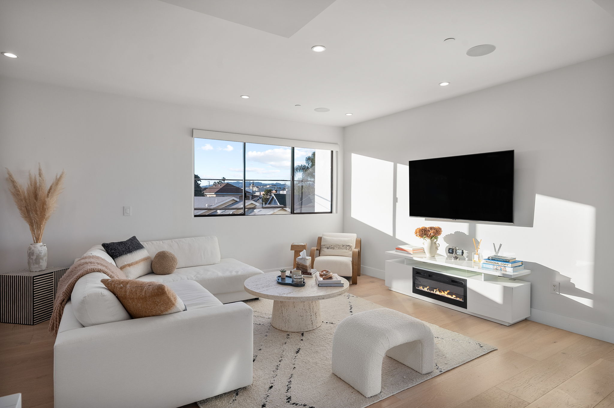 A stunning contemporary residence with an 800+ sq. ft. rooftop patio offering gorgeous Downtown views, located just moments from both Hollywood and Larchmont. Featuring an 8’ mahogany entry door, an open floor plan, soaring ceilings, and expansive Fleetwood sliding doors, this property seamlessly blends luxury and modern comfort. The home is replete with 4 bedrooms, 3 baths, and a gourmet chef’s kitchen with quartz countertops and a waterfall island with built-in breakfast bar. The spacious master suite boasts walk-in closets and a spa-like bath with dual sinks, premium fixtures, and LED mirrors. Designer amenities include wide-plank oak flooring, custom blinds throughout, in-ceiling speakers, and Control4 smart home automation. The expansive rooftop patio has built-in speakers, a pre-wired TV setup, and outdoor kitchen perfect for relaxing or entertaining under the stars with breathtaking views. Attached 2-car garage. Located just moments from the city’s finest dining and entertainment, this residence perfectly blends upscale living with unmatched convenience.