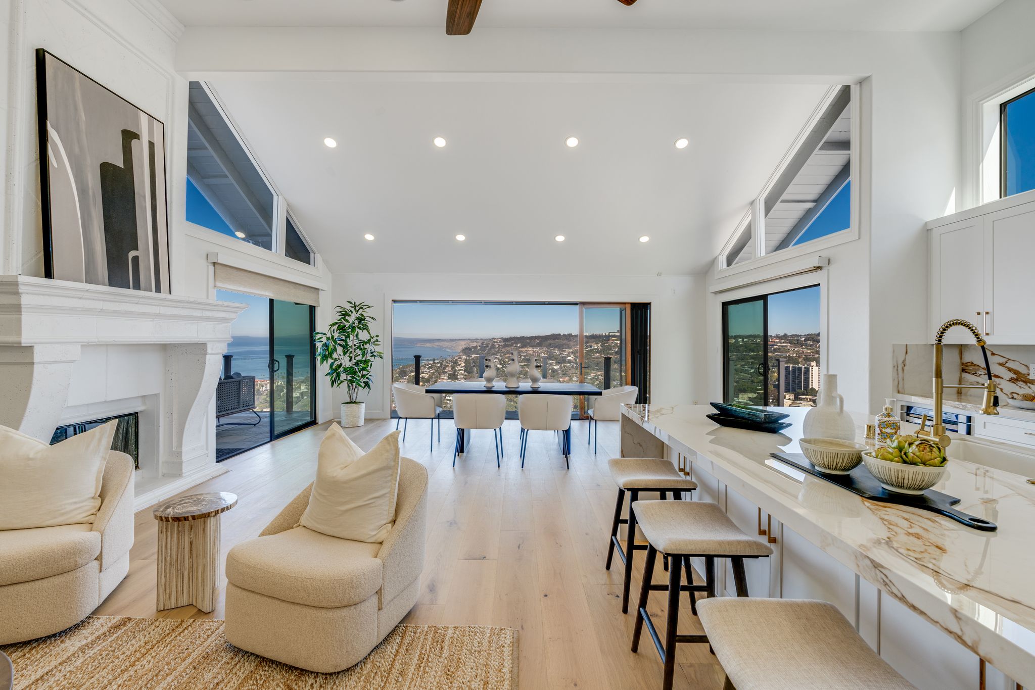 Welcome to 7655 Caminito Avola—a rare single-level-style coastal retreat with PANORAMIC OCEAN VIEWS in one of La Jolla’s most exclusive neighborhoods. Tucked at the end of a quiet cul-de-sac in Colony Hill, this home is one of just 40 in La Jolla’s first private community. Completely updated and move-in ready, this 4-bedroom, 2.5-bathroom home offers 2,332 sq. ft. of beautifully designed living space. As you enter through a fully enclosed private courtyard, you're immediately drawn into the expansive great room—featuring floor-to-ceiling windows that frame sweeping 180-degree ocean views. The open-concept layout connects a chef-inspired kitchen with a large center island, a stylish dining area, and a sunlit living space designed for effortless entertaining and relaxation. Colony Hill residents enjoy low HOA fees and premium amenities including a pool, jacuzzi, and sauna—ideal for unwinding while soaking in the La Jolla lifestyle. Located just moments from world-class beaches, dining, shopping, and the vibrant, walkable Village, this turn-key coastal retreat is your chance to own a rare piece of paradise.Don’t miss this extraordinary opportunity to experience elevated coastal living in one of Southern California’s most prestigious zip codes.