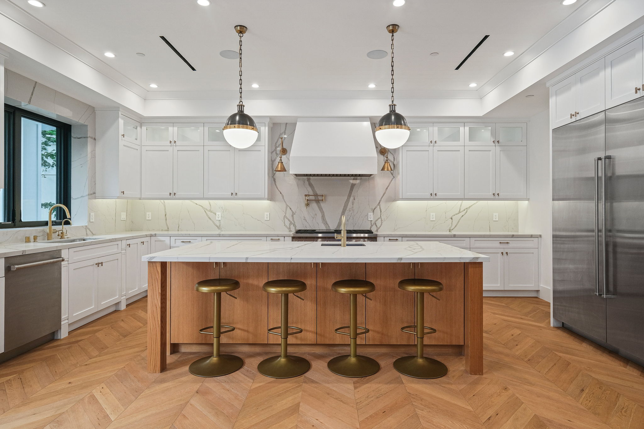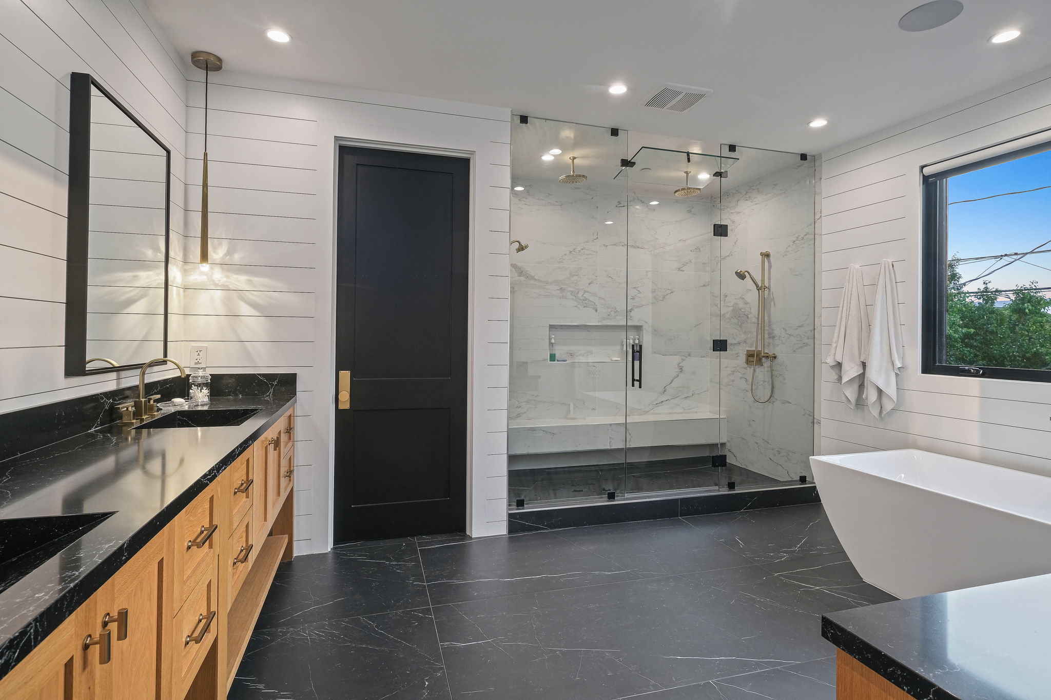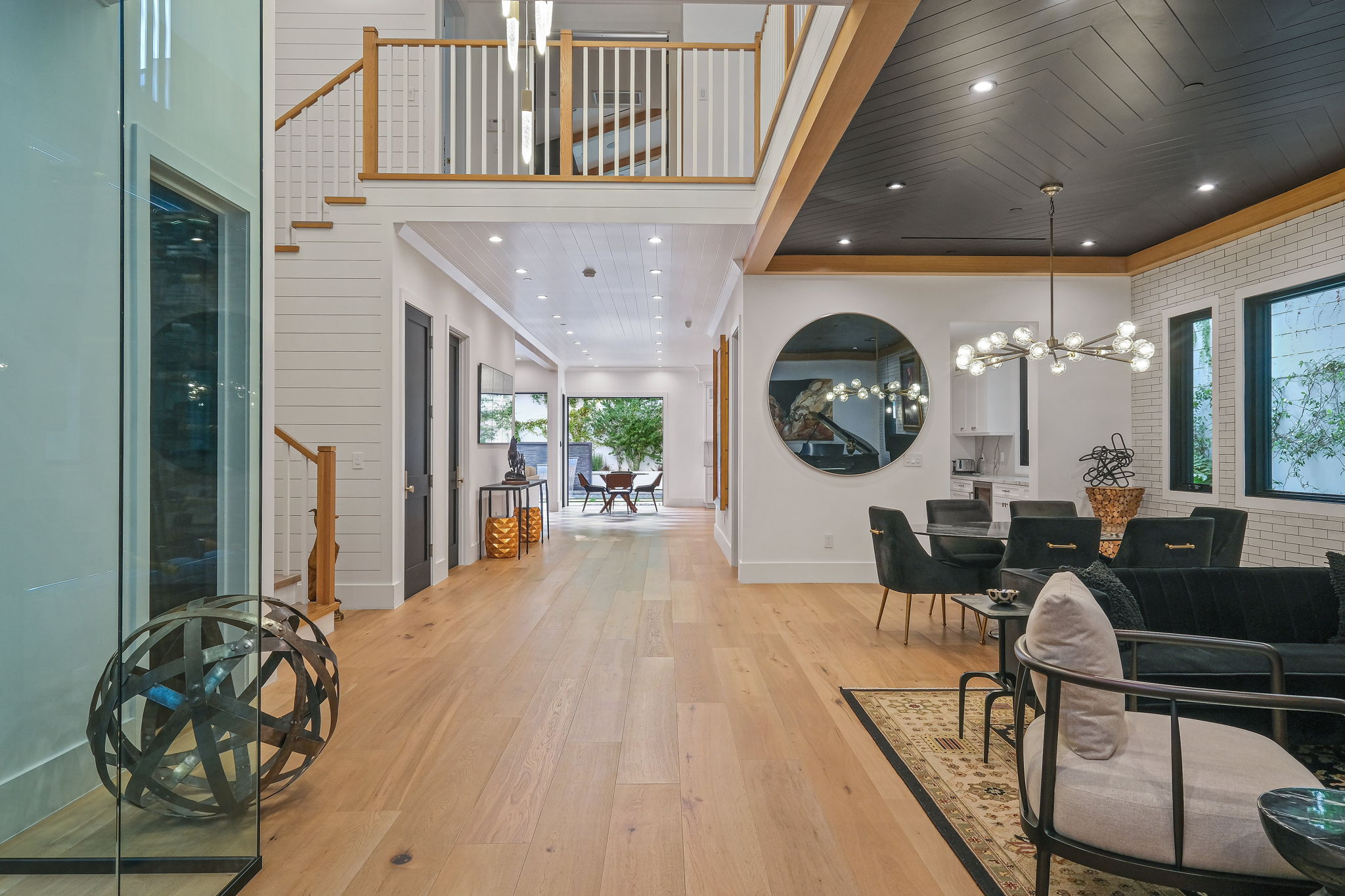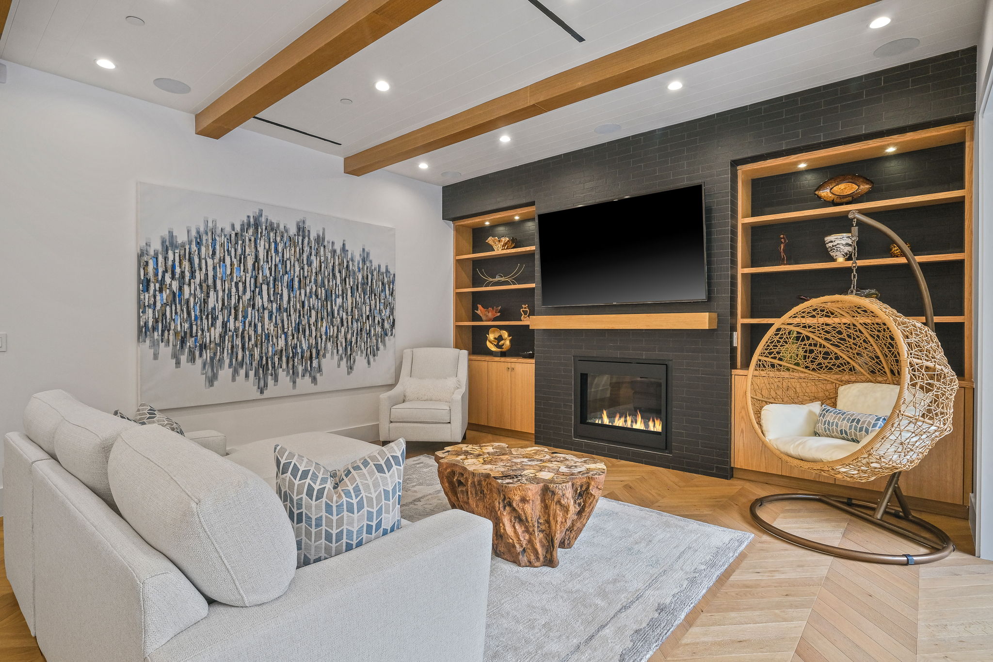 Privately gated, this new Contemporary Farmhouse offers a stunning retreat in the heart of the iconic Beverly Grove. With over 5,000 sq. ft. of exquisite craftmanship and designer aesthetic, this 5 bed, 6 bath home offers an open floor plan with Chef's kitchen complete with Sub-Zero and Wolf appliances, a theater and wine room, and a spacious office/gym. The main level opens up to a private garden with a pool and spa accentuated by a waterfall and cozy fireplace. The expansive owner's suite comes replete with a luxurious bath, walk-in closet, and private balcony. An entertainer's roof-top deck offers an outdoor kitchen with city and mountain views, including a full view of the Hollywood sign. This smart home features Control4 home automation, Tri-zone climate control, and a 2-car garage.