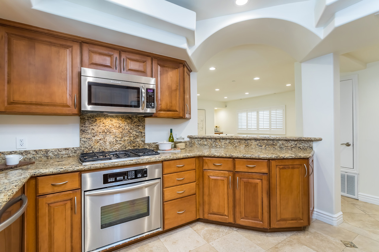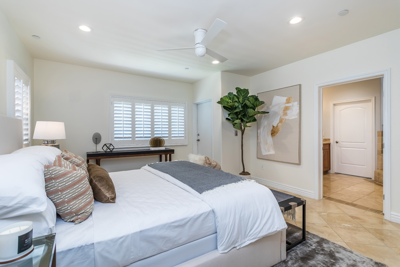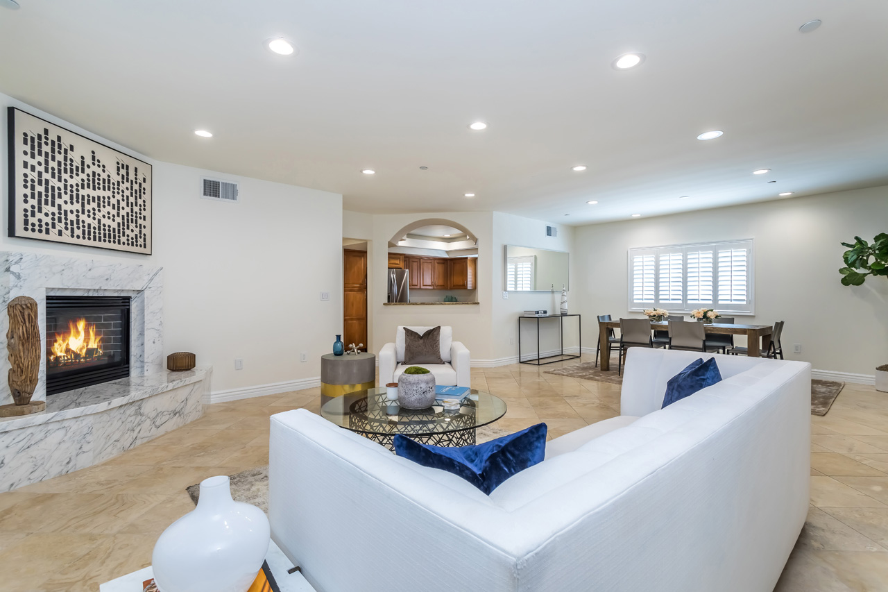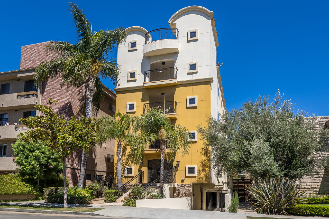 Welcome to the Bedford Villas! Adjacent to Beverly Hills, this direct entry, luxury condo in a boutique, quiet four-unit building has been upgraded with designer finishes. The spacious unit spans the entire first level, with 3 bedrooms and a 4th bedroom/den/office with custom built-in workstations. Living and dining areas have an open floor plan with fireplace; there are travertine floors and plantation shutters throughout. Gourmet kitchen with granite countertops, stainless steel appliances. Large owner’s suite features an over-sized walk-in closet, luxurious bathroom with dual sinks, shower and separate jetted spa tub. Side by side laundry in the unit. Convenient access to the backyard, perfect for outdoor entertaining. Controlled access, with gated tandem parking in a secure garage.
