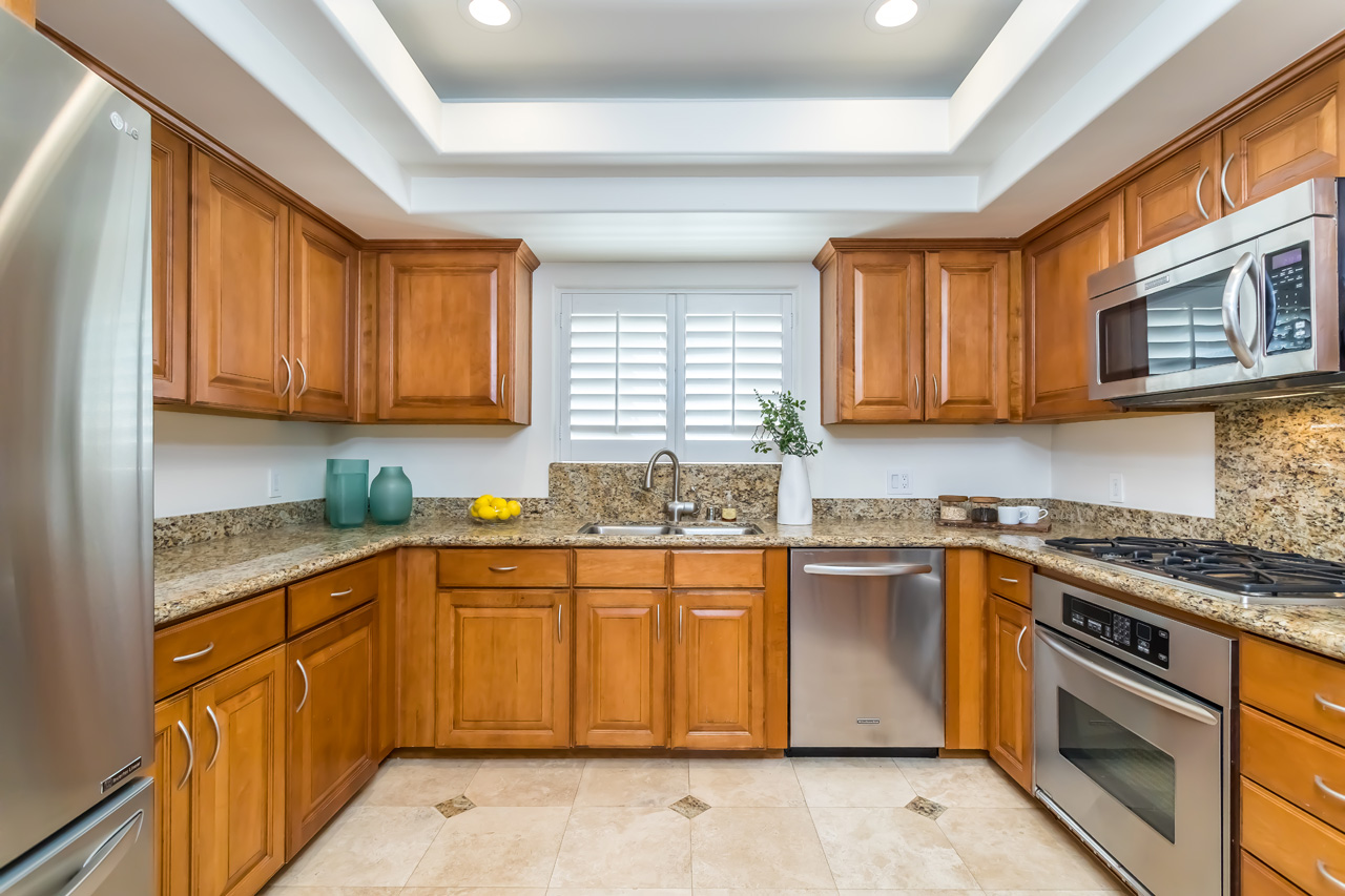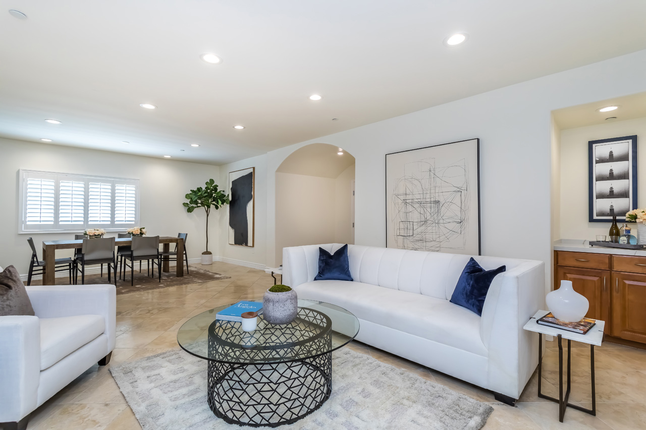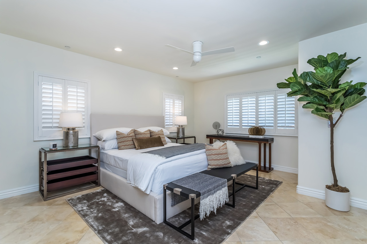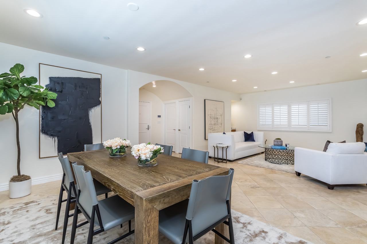 Welcome to the Bedford Villas! Adjacent to Beverly Hills, this direct entry, luxury condo in a boutique, quiet four-unit building has been upgraded with designer finishes. The spacious unit spans the entire first level, with 3 bedrooms and a 4th bedroom/den/office with custom built-in workstations. Living and dining areas have an open floor plan with fireplace; there are travertine floors and plantation shutters throughout. Gourmet kitchen with granite countertops, stainless steel appliances. Large owner’s suite features an over-sized walk-in closet, luxurious bathroom with dual sinks, shower and separate jetted spa tub. Side by side laundry in the unit. Convenient access to the backyard, perfect for outdoor entertaining. Controlled access, with gated tandem parking in a secure garage.