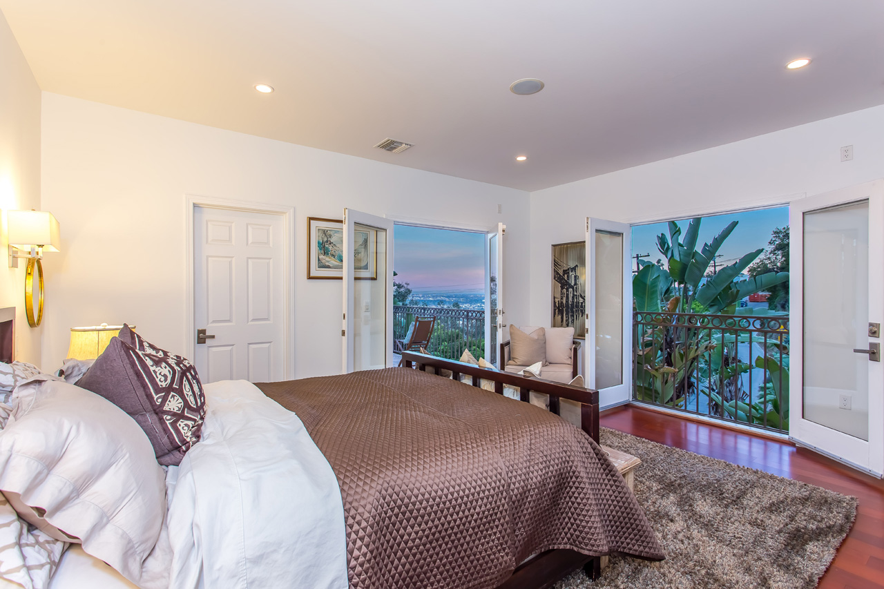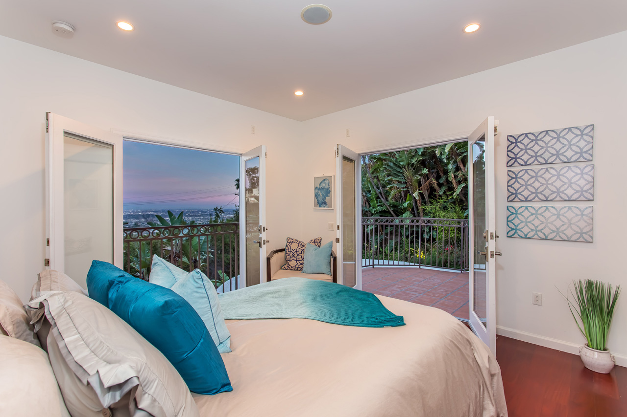 This beautiful contemporary home features a landscaped outdoor space framing expansive city views, from the hills and beyond. French doors and large windows, provide the luxurious California indoor/outdoor living space. The main level offers an open floor plan, with an updated kitchen, dining area and family room. Upstairs, dual master suites with walk-in closets and private balconies, provide the perfect retreat. Other features include high ceilings throughout, a huge patio that is optimal for entertaining or relaxing, and a 2-car garage.