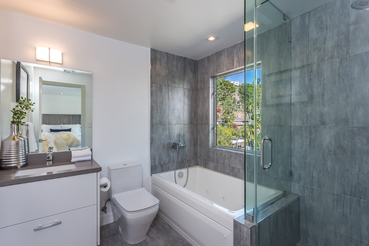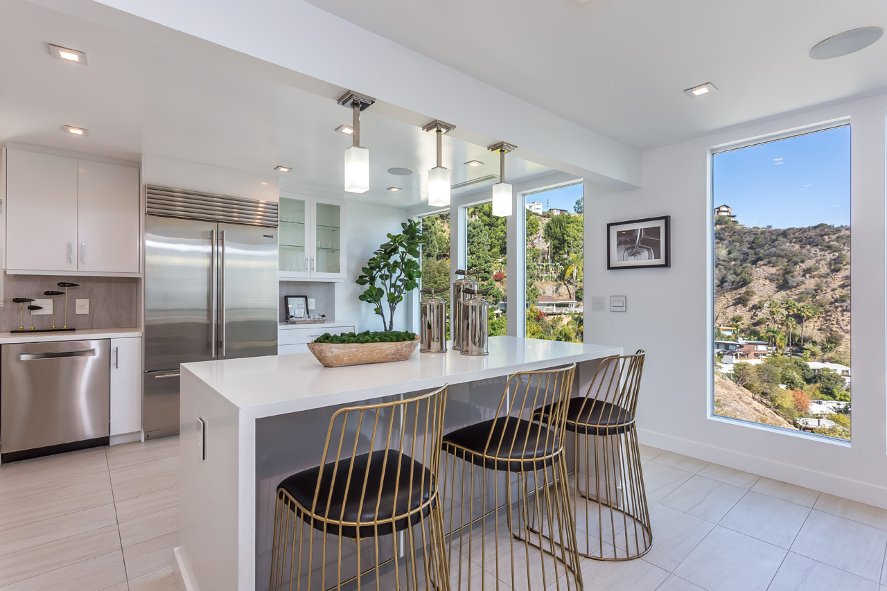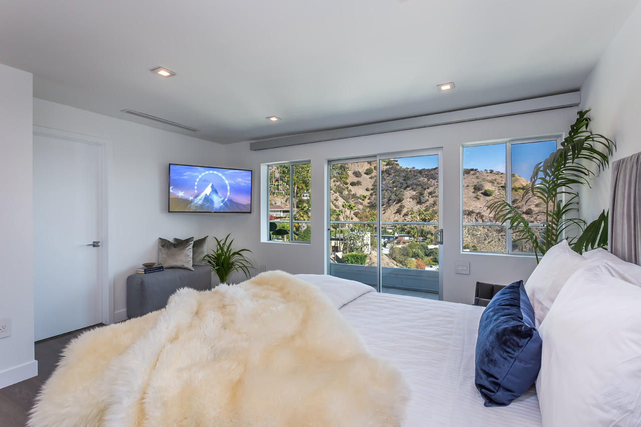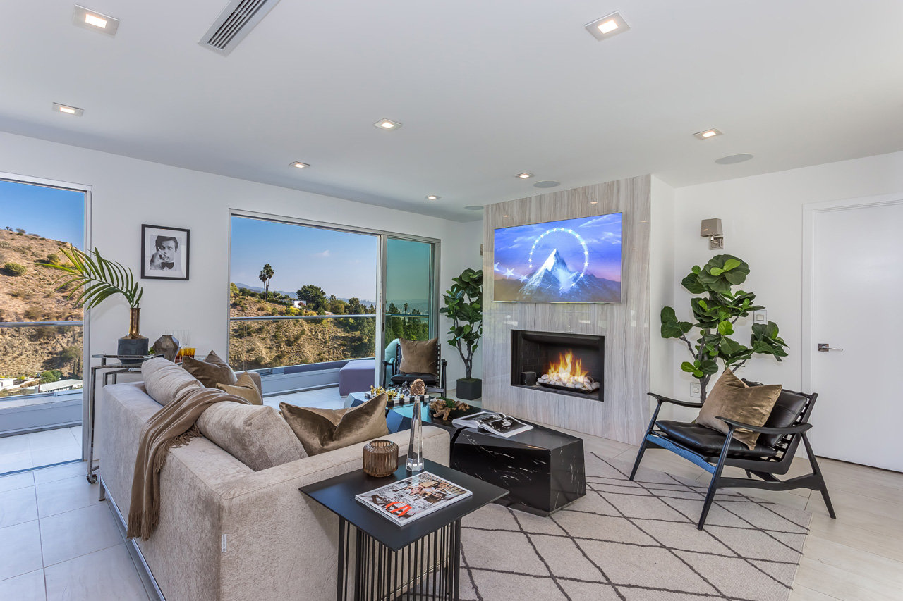 Perched above the Sunset Strip, this sophisticated and newly remodeled contemporary boasts city views from every room. The gracious open floor plan basks in natural light, with ample indoor/outdoor living from decks on every level. Featuring 2 owner’s suites, a guest bedroom, and an additional separate guest quarters off the spacious entertaining deck with a spa, and a chef’s kitchen appointed with Wolf appliances and a Sub-Zero refrigerator. Wired for sound with speakers throughout, the home is loaded with high-end technology for security, lighting, and temperature control. A low maintenance jewel box that checks all of the boxes for high-end living in the Hollywood Hills.
